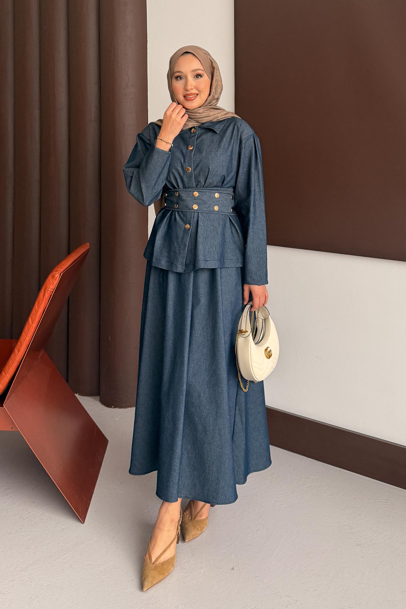 Tunik Metal düğmelidir, ortalama 60 cm, Kemer Takımın Yanında Hediye olarak pakete ekleniyor, Etek Kloş formdadır.
