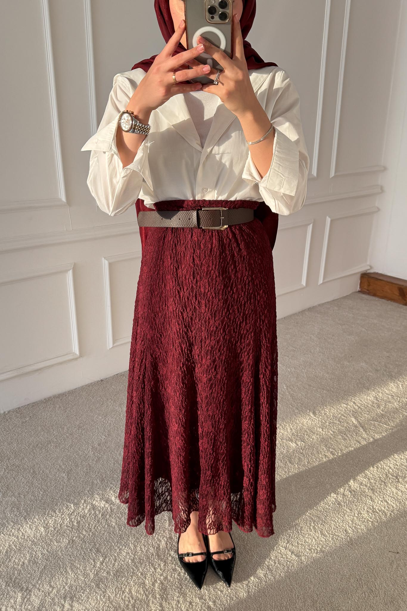 Dantel Etek Bordo
