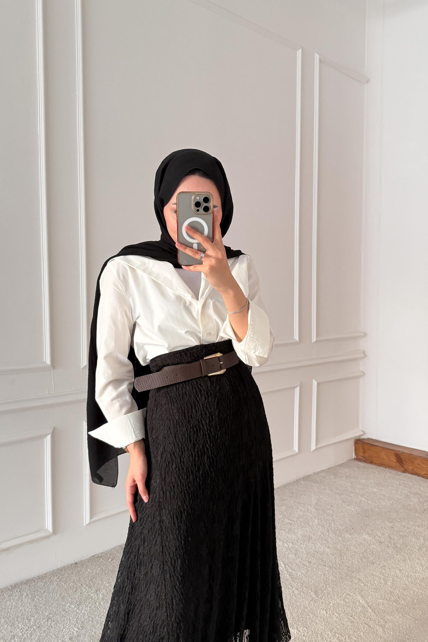 Manken ortalama Boy 172 cm - Kilo 54 kg dır, 1 beden giyinmiştir.