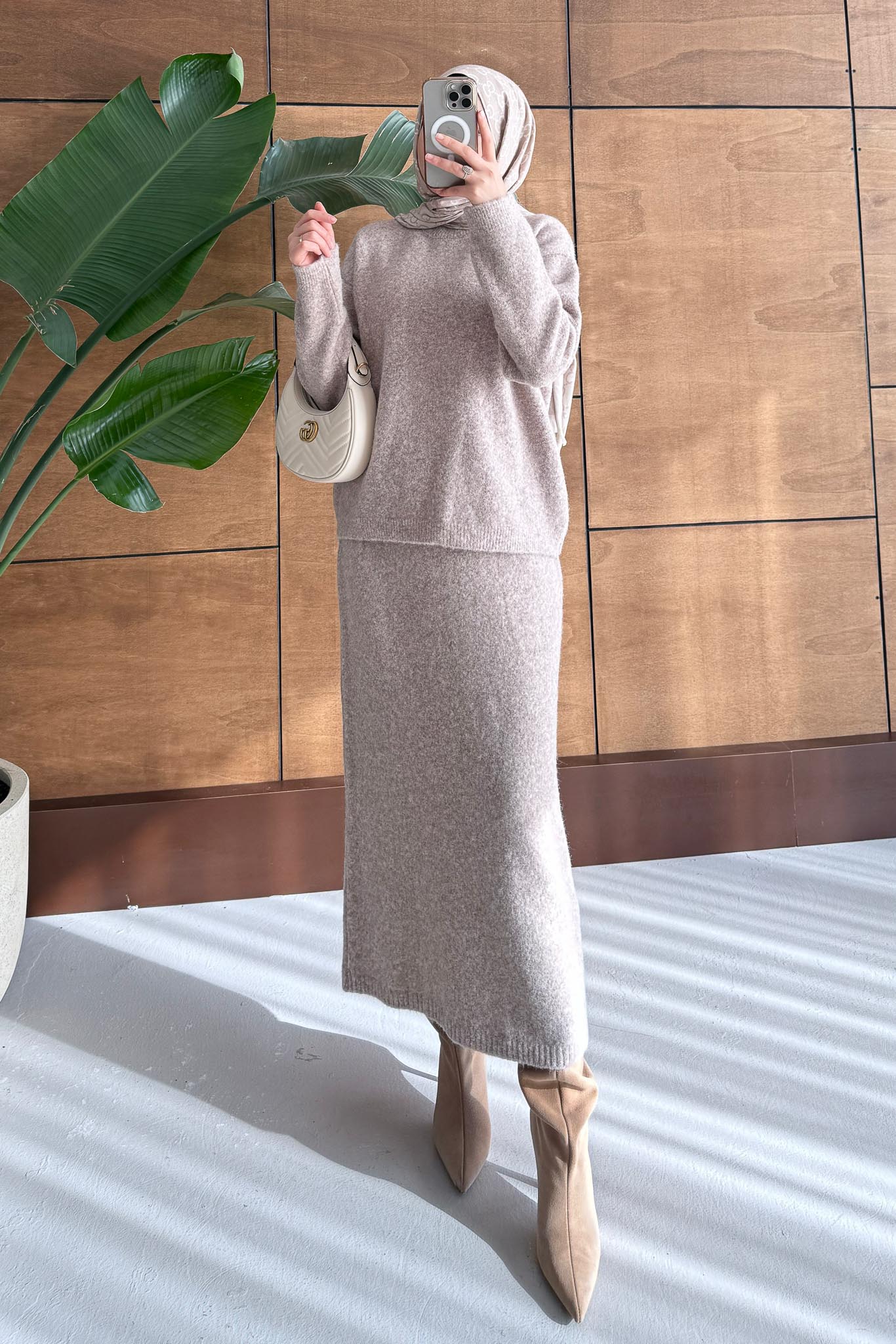 Etek; Boy 97 cm Kalem Formdadır, beli Lastiklidir.