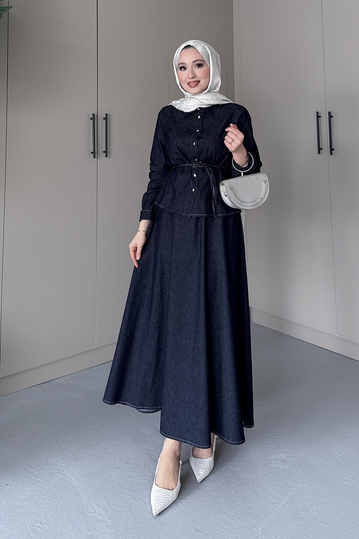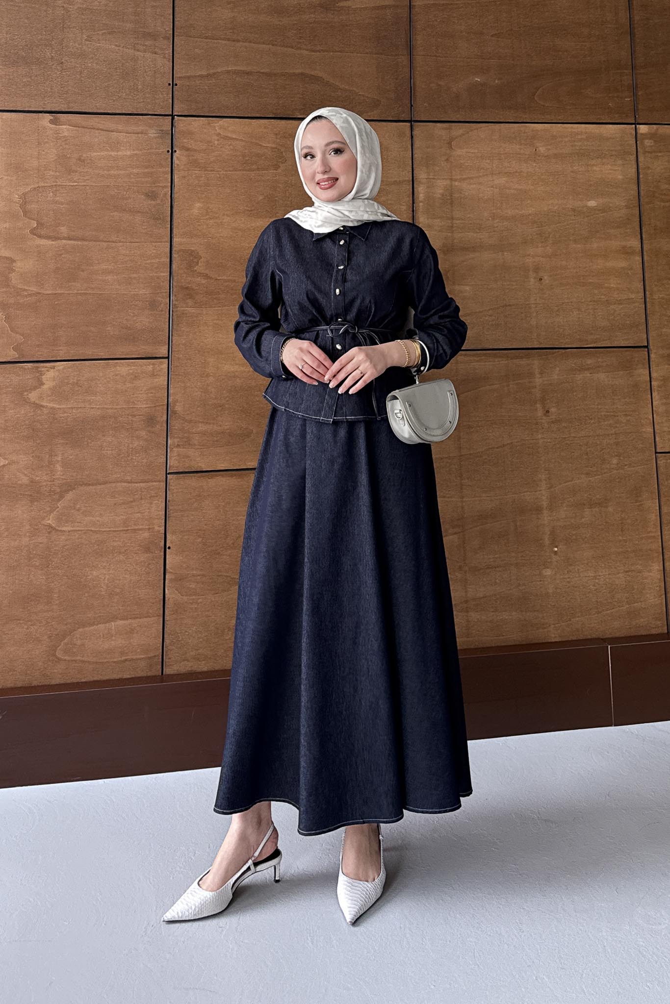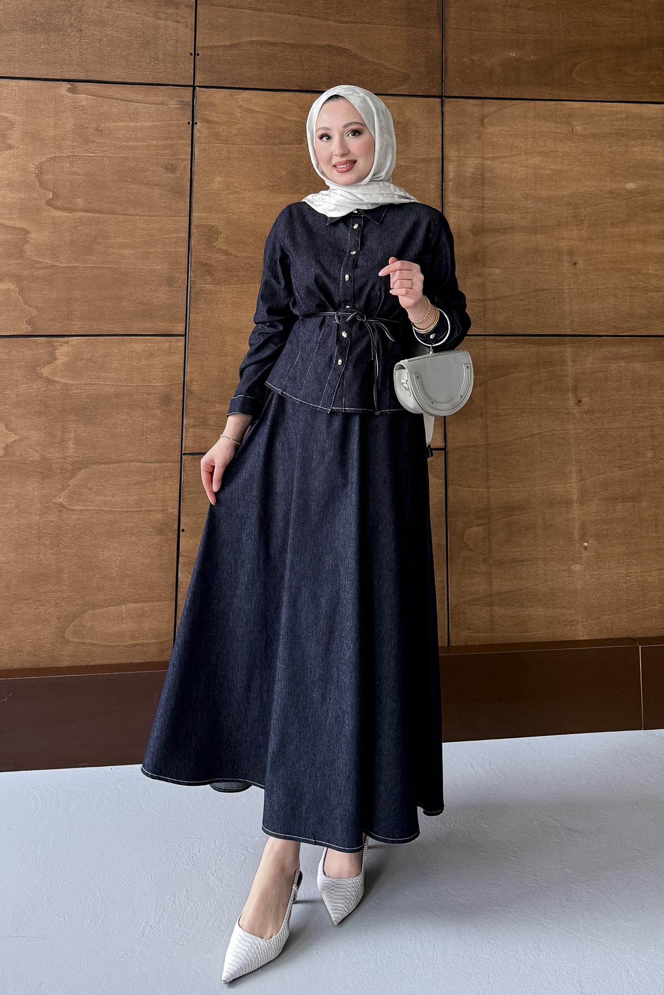 Tunik Düğmelidir, kuşaklıdır, şık duruşludur, Etek Kloş formdadır oldukça rahattır, Beli lastiklidir.