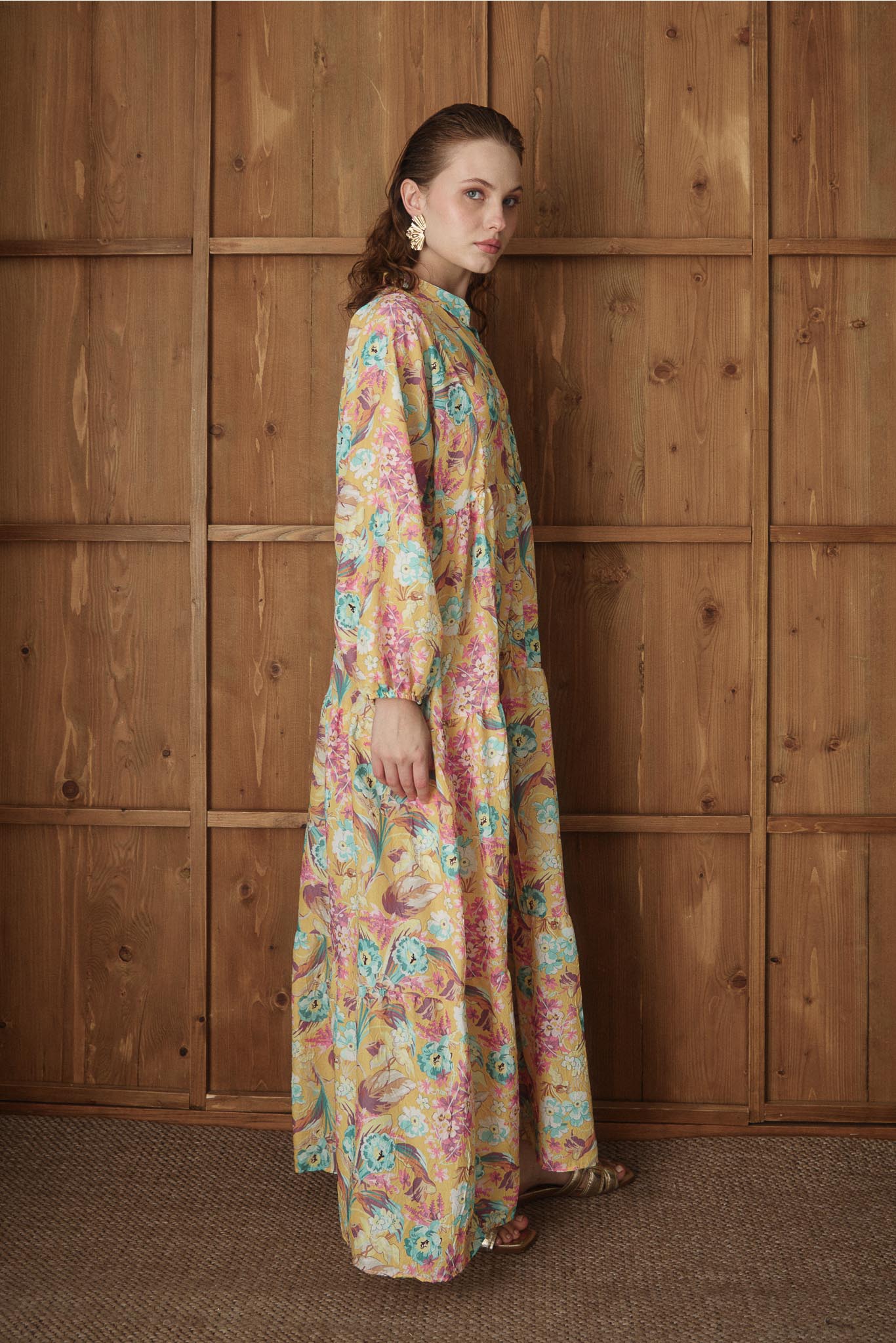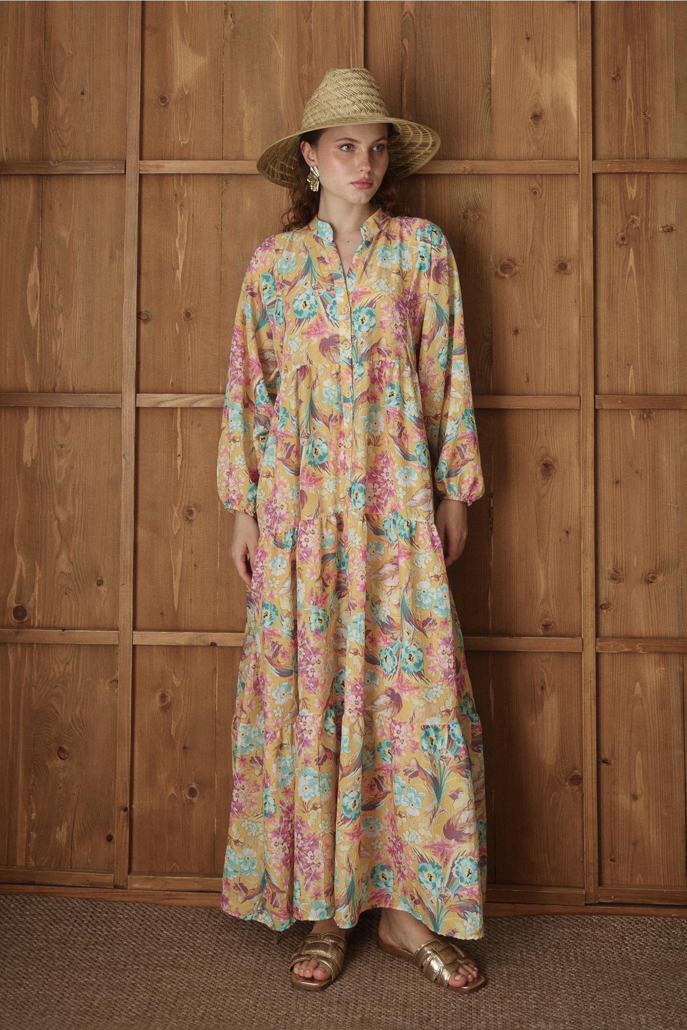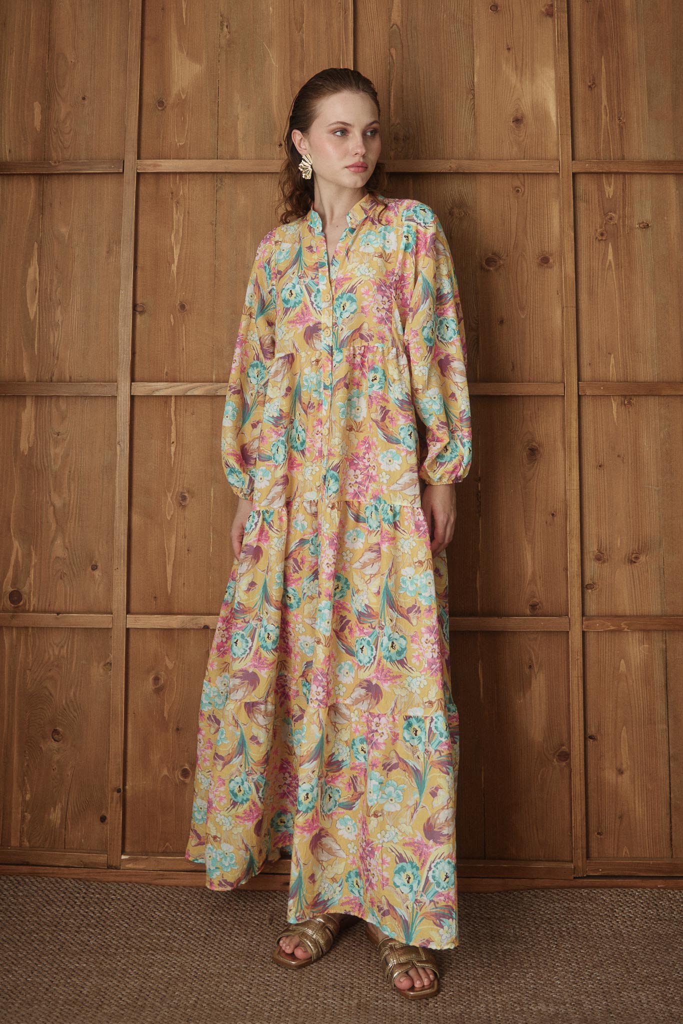 Carva Desenli Elbise Sarı