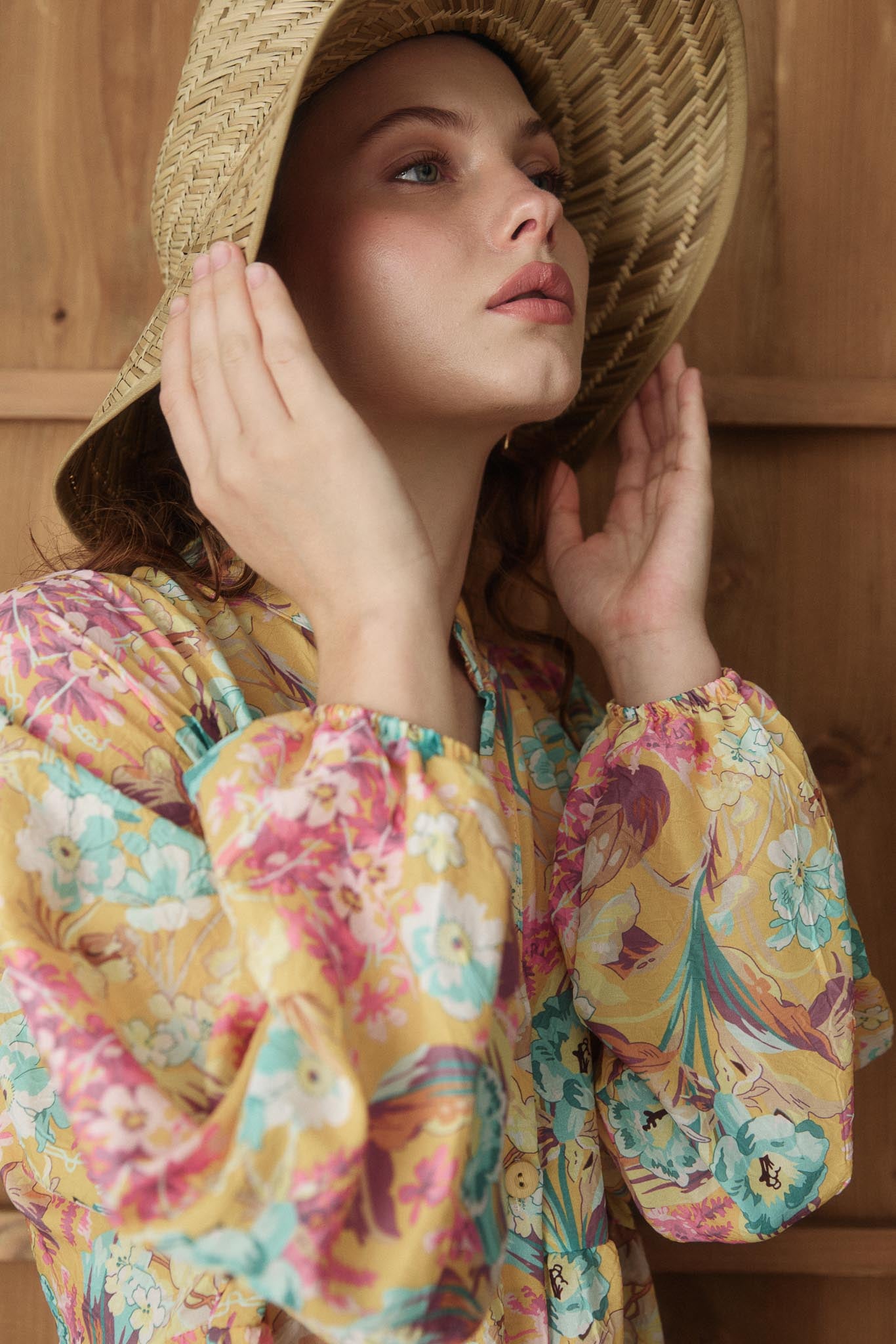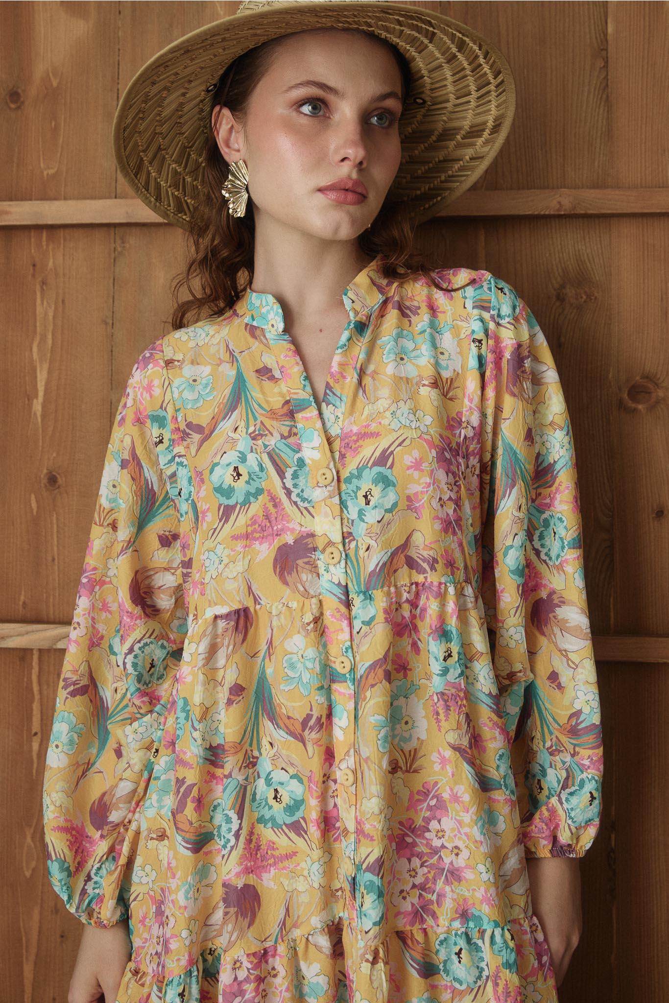 Ön kısımda yarım düğmelidir, oldukça rahat kalıptadır, efil efil kumaşlıdır, balon kolludur. terletmez ve ütü gerektirmez.