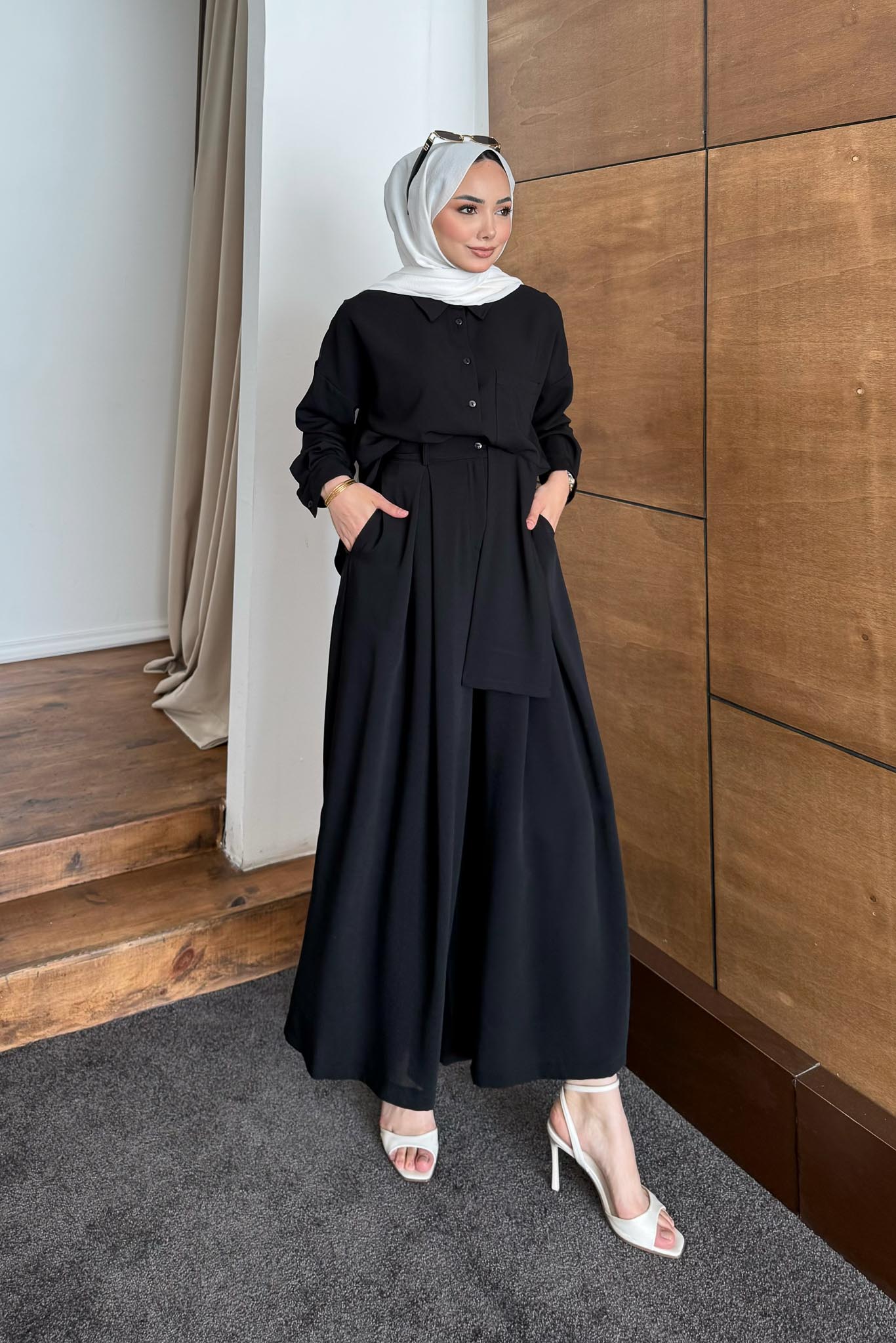 Şık duruşludur, Gömlek ortalama 75 cm dir, Pantolon Rahat formdadır, Beli Kemerlidir,
