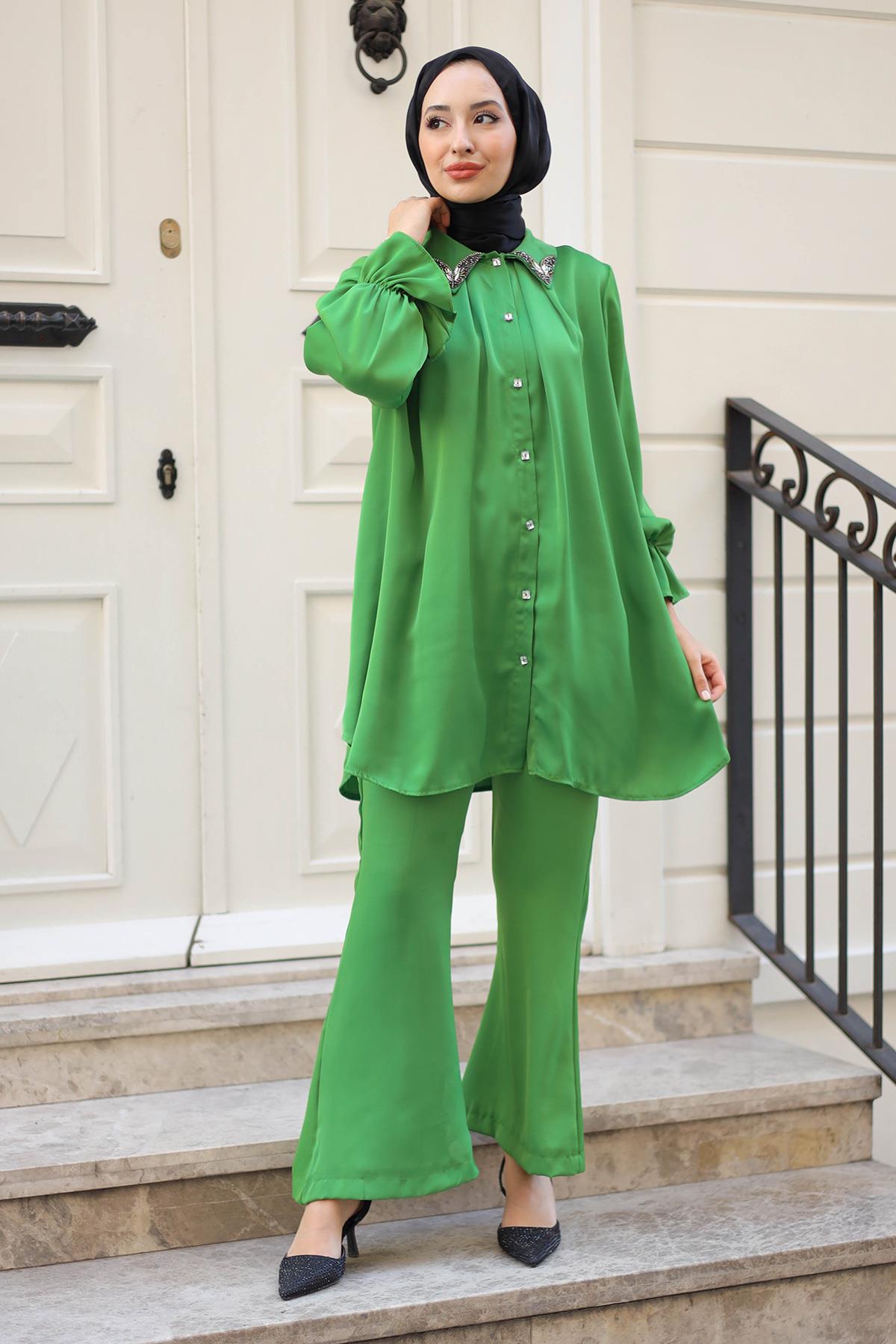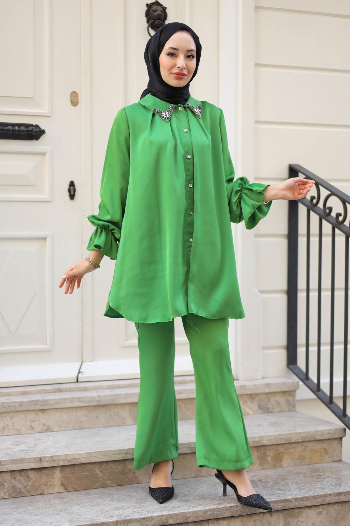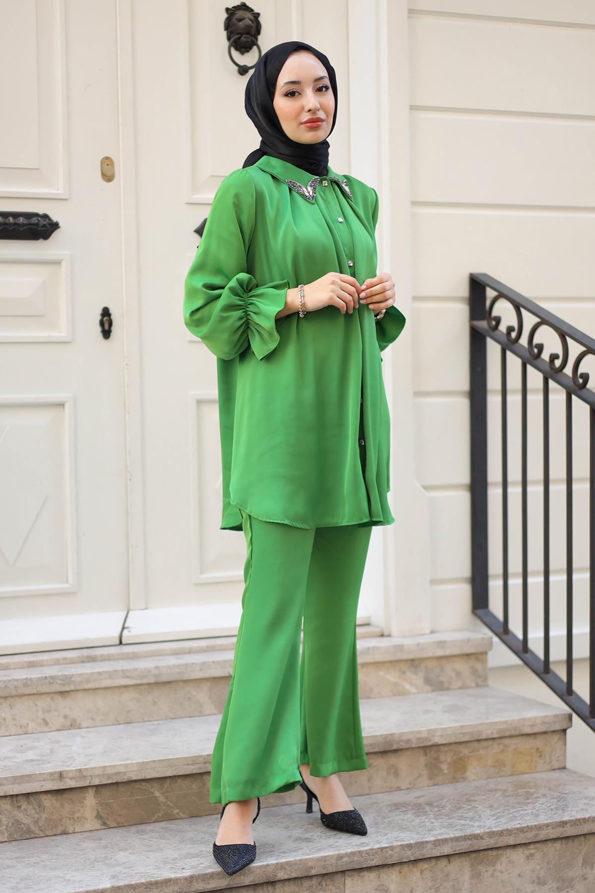 | Orjinal İthal Tiril Krep Kumaşlar Kore menjeildir. Tunik Boy; ortalama 80 cm, Gömlek Formdadır, Kol lastiklidir hafif balon kesimdir, yakada sıralı Tasarım taş vardır ve Dökülme olmamaktadır. Pantolon Boy 100 cm, Lastiklidir ve paçası İspanyoldur. Model Ölçüleri Çekimlerde, ürün boy uzunlukları mankene göre uyarlandığından dolayı, ürün bilgilerinde yazan uzunluk dikkate alınmalıdır. Manken ortalama Boy 165 cm - Kilo 53 kg dır, çekimde 36 beden giyinmiştir. Yıkama Talimatı Makinede En Düşük Ayarda Yıkanmalıdır fakat Kumaşa zarar veren ürünler ile yıkanması durumunda Kuru Temizleme yapılmadılır, |