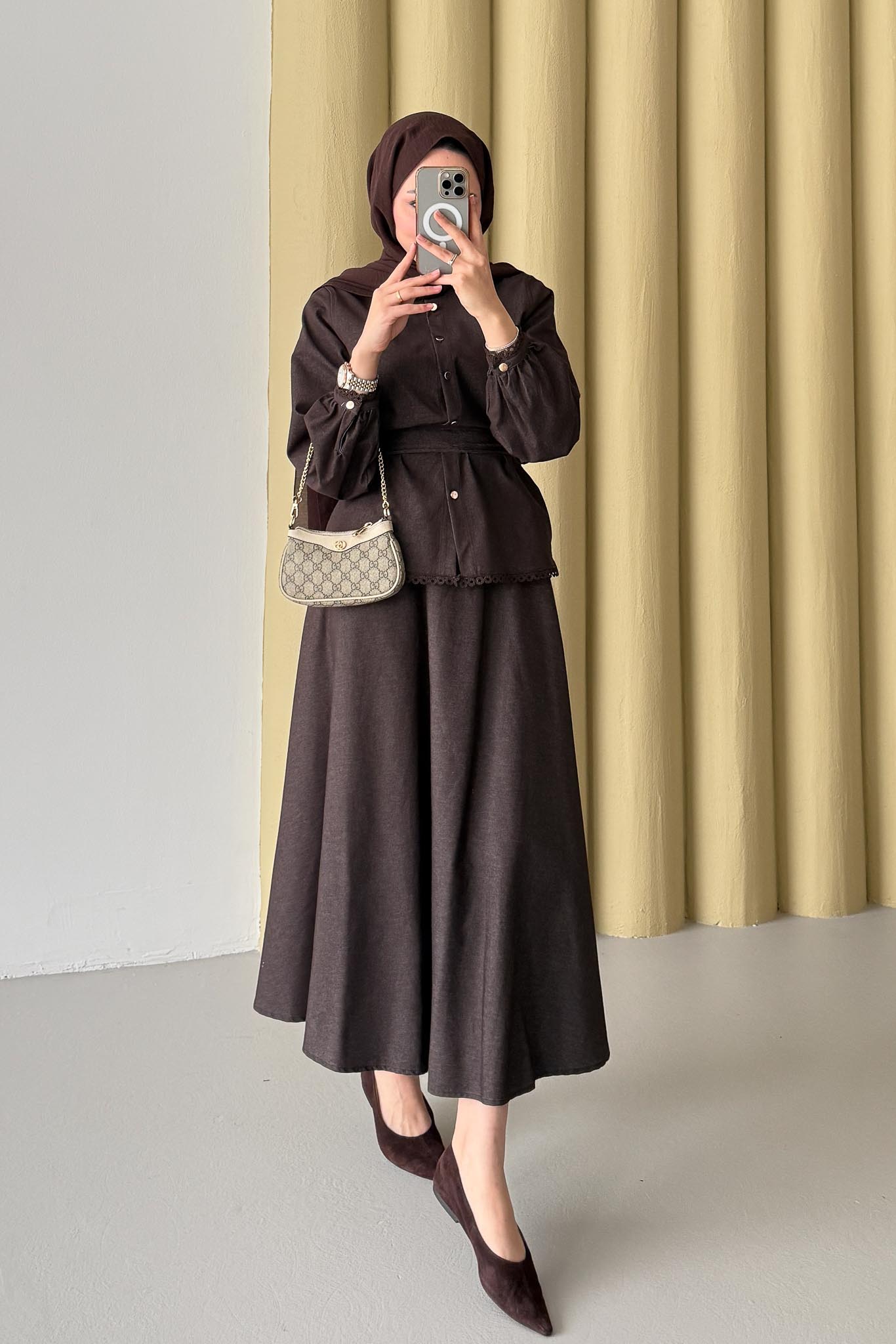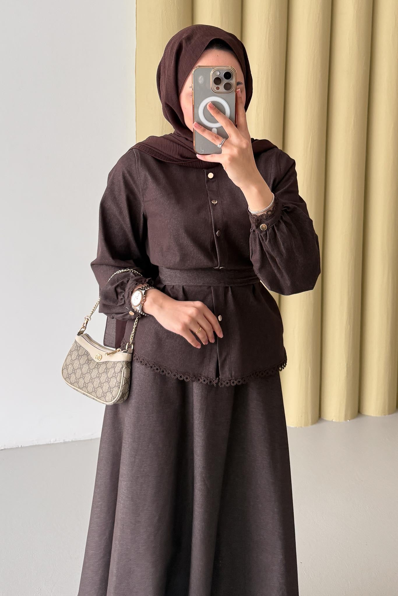 Güpür Detaylı Kot Takım Kahverengi