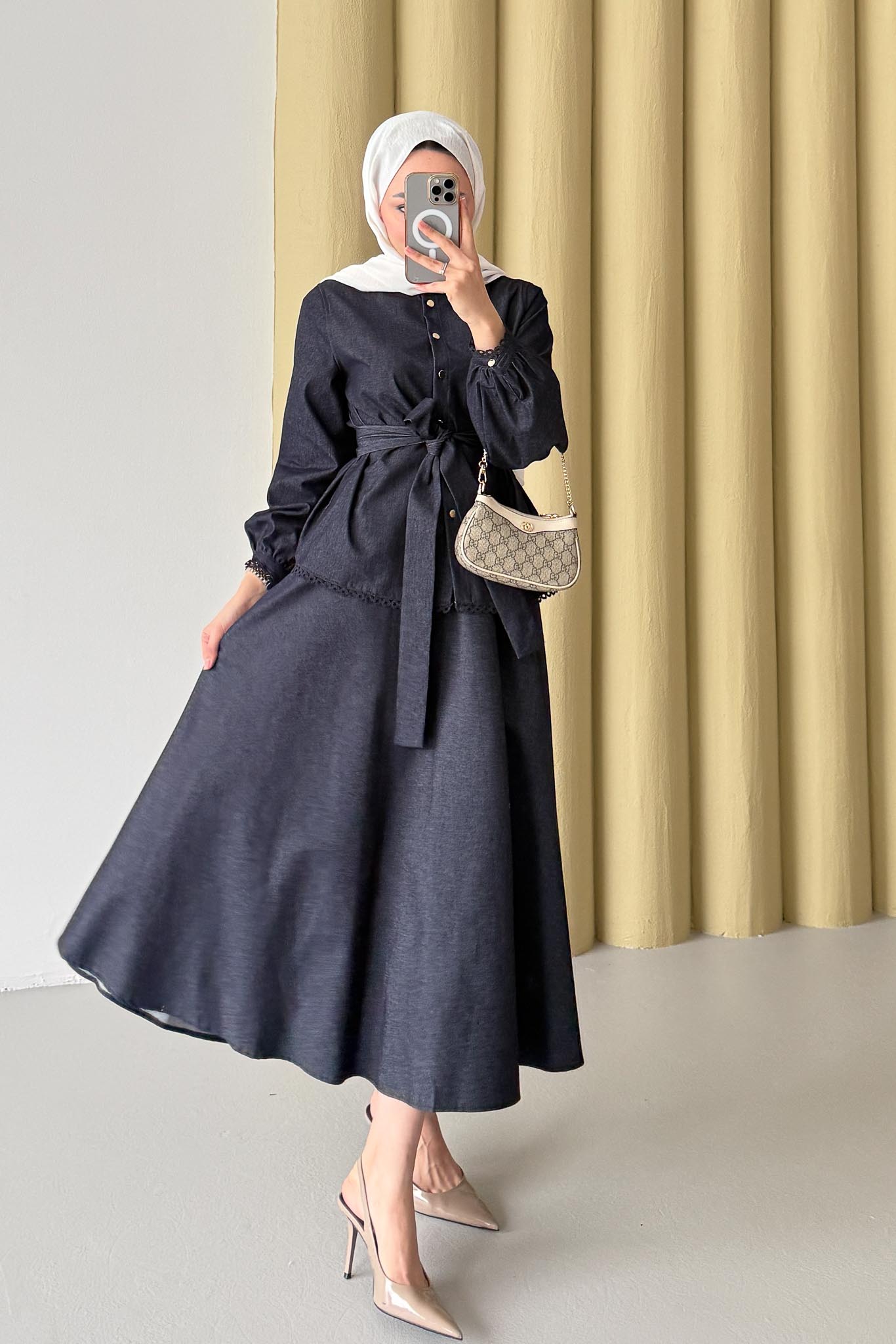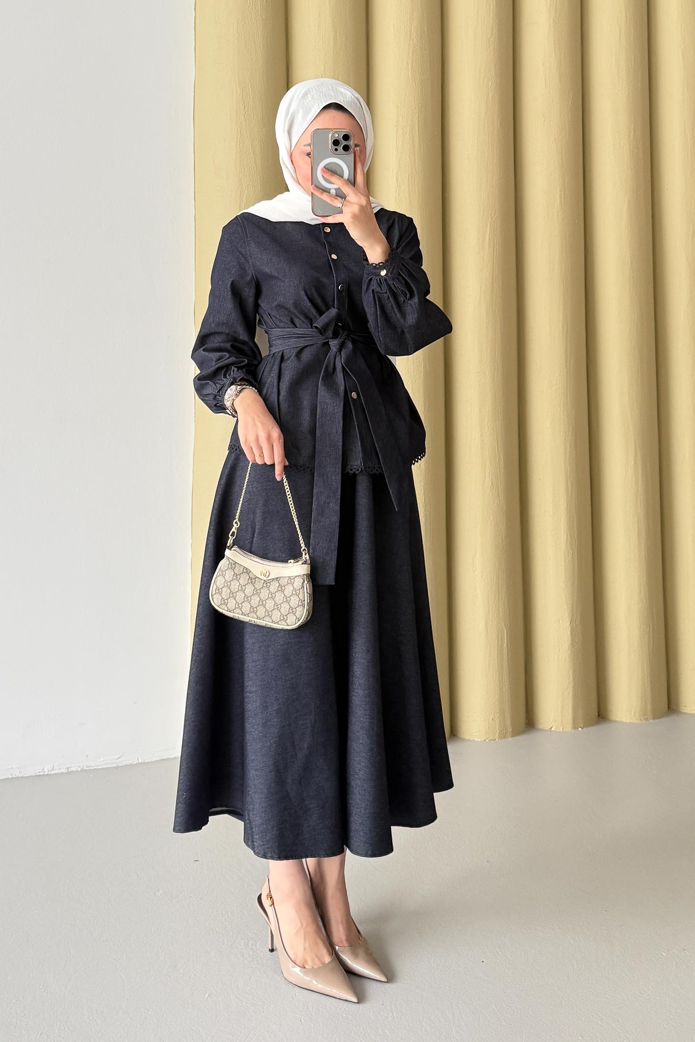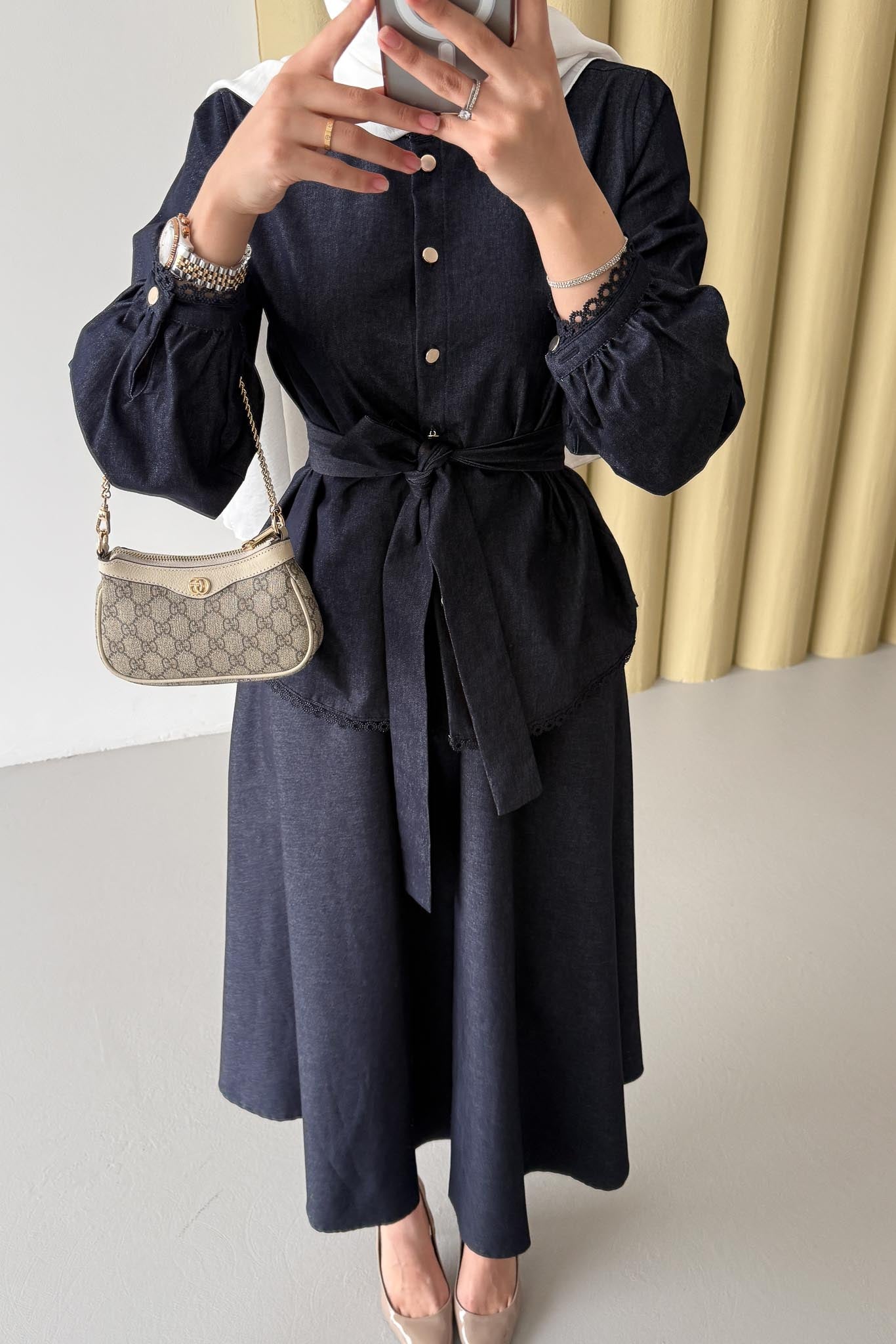 Güpür Detaylı Kot Takım Lacivert