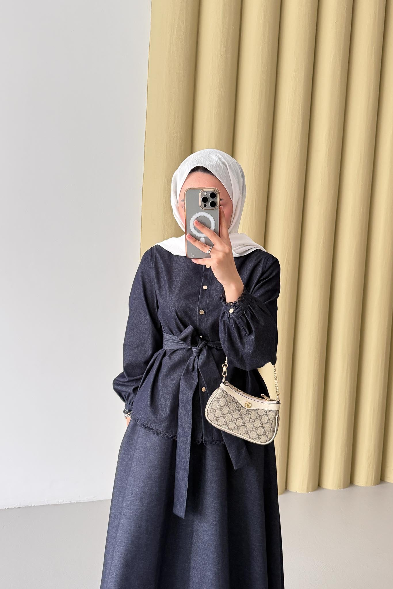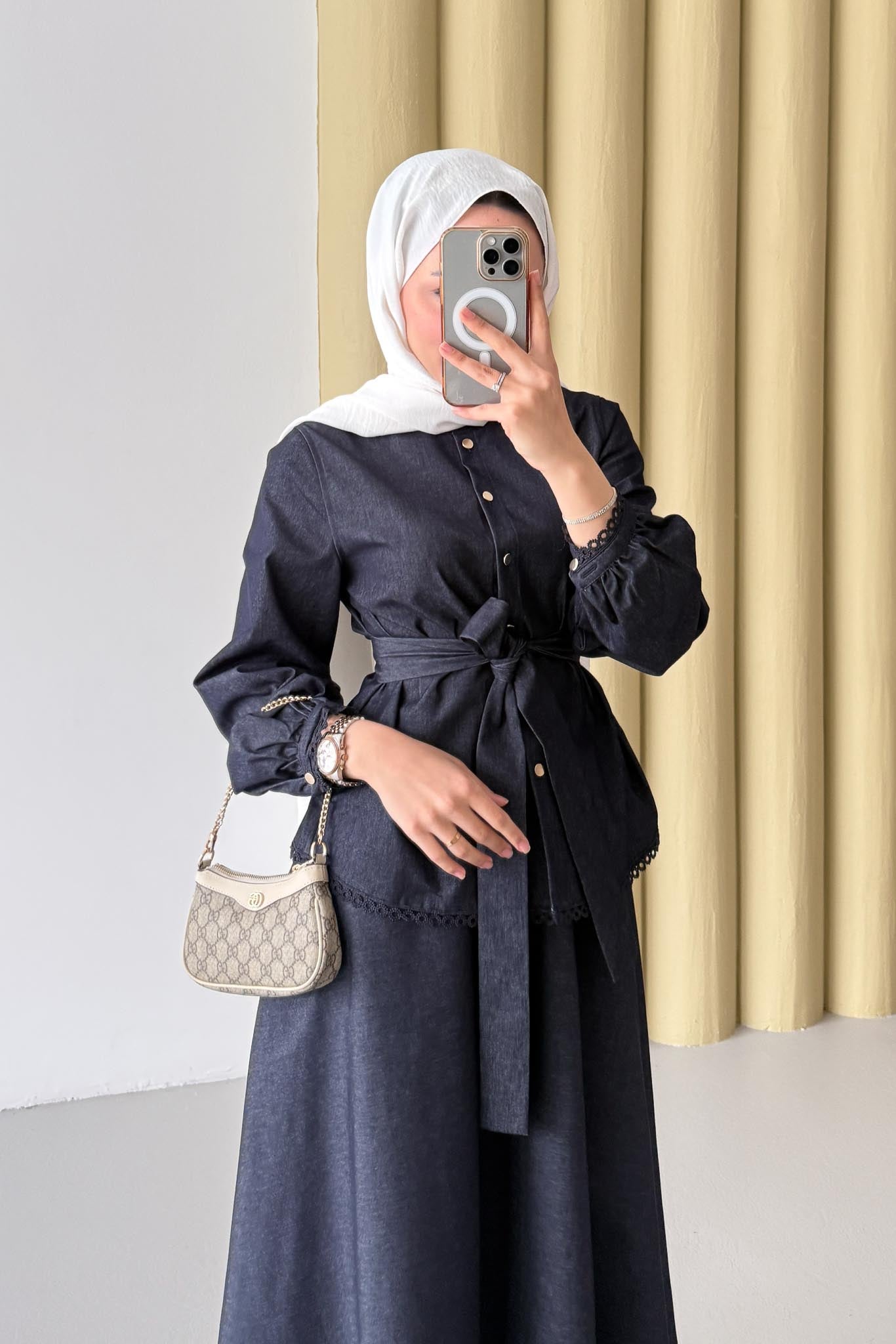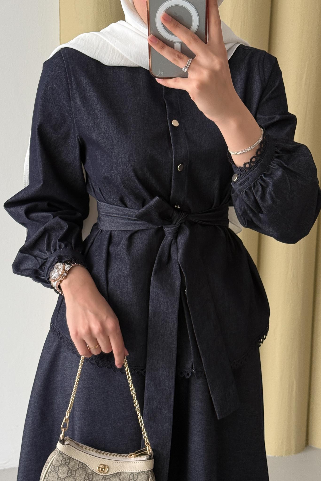 Güpür Detaylı Kot Takım Lacivert