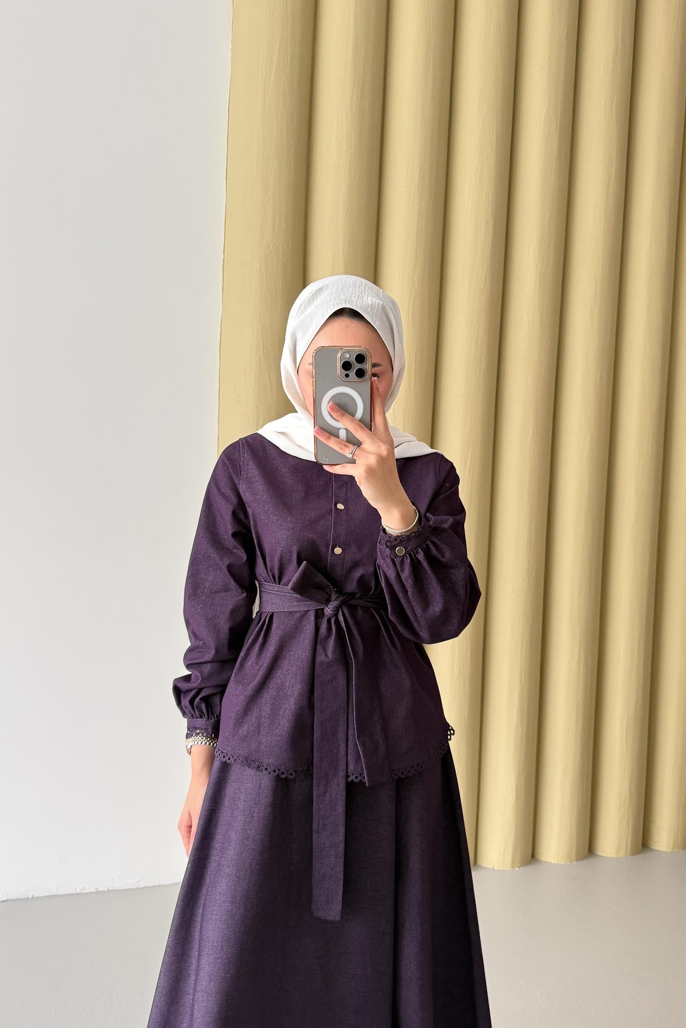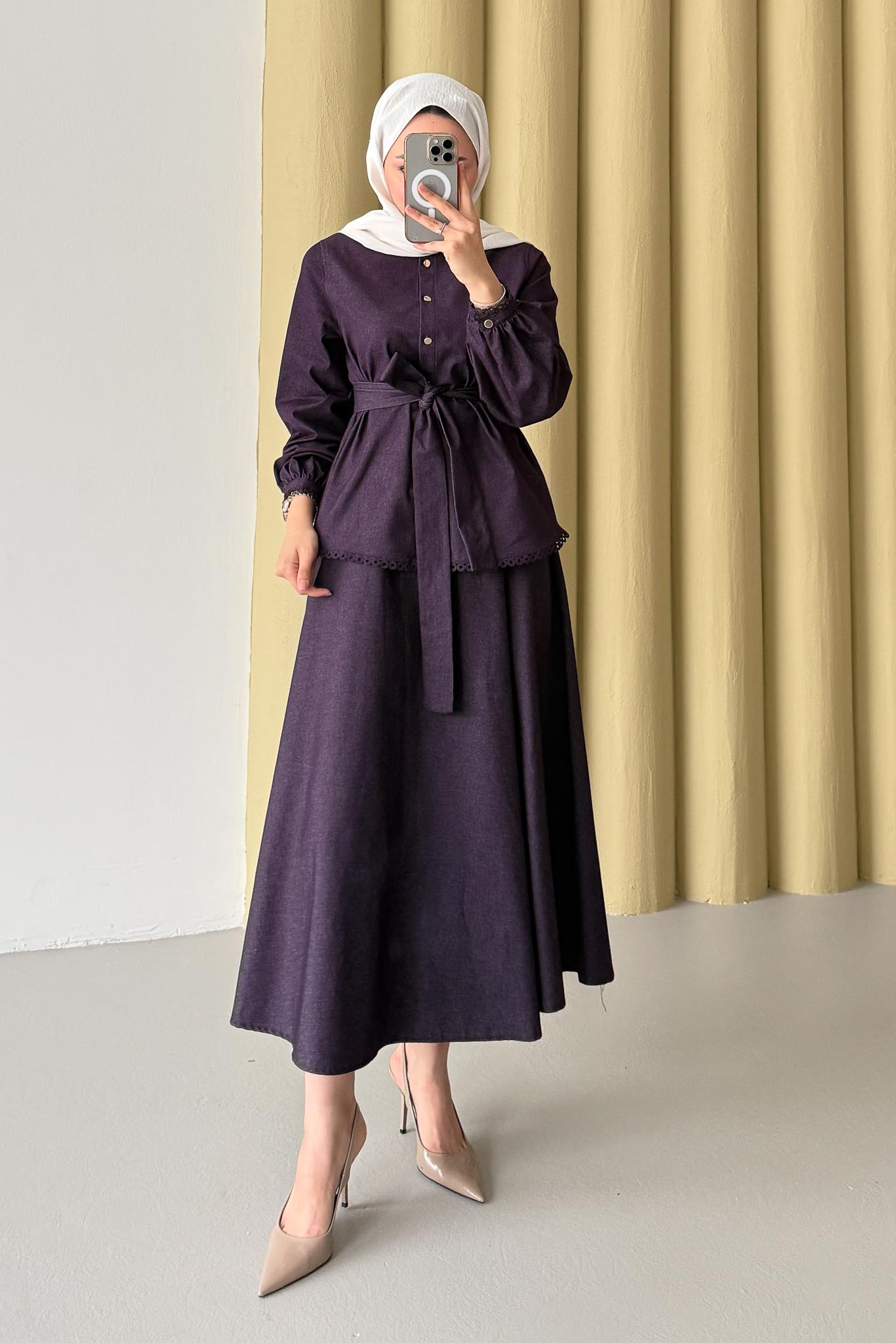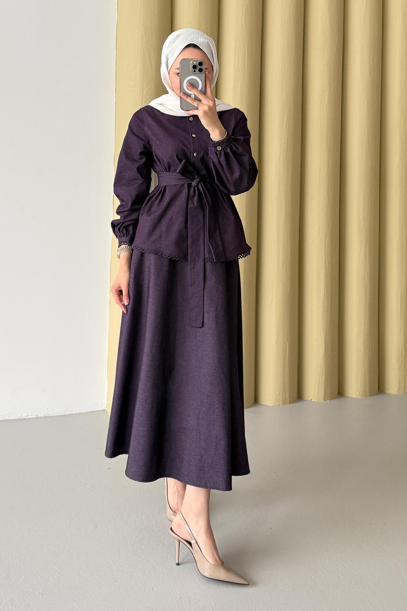 Güpür Detaylı Kot Takım Mor