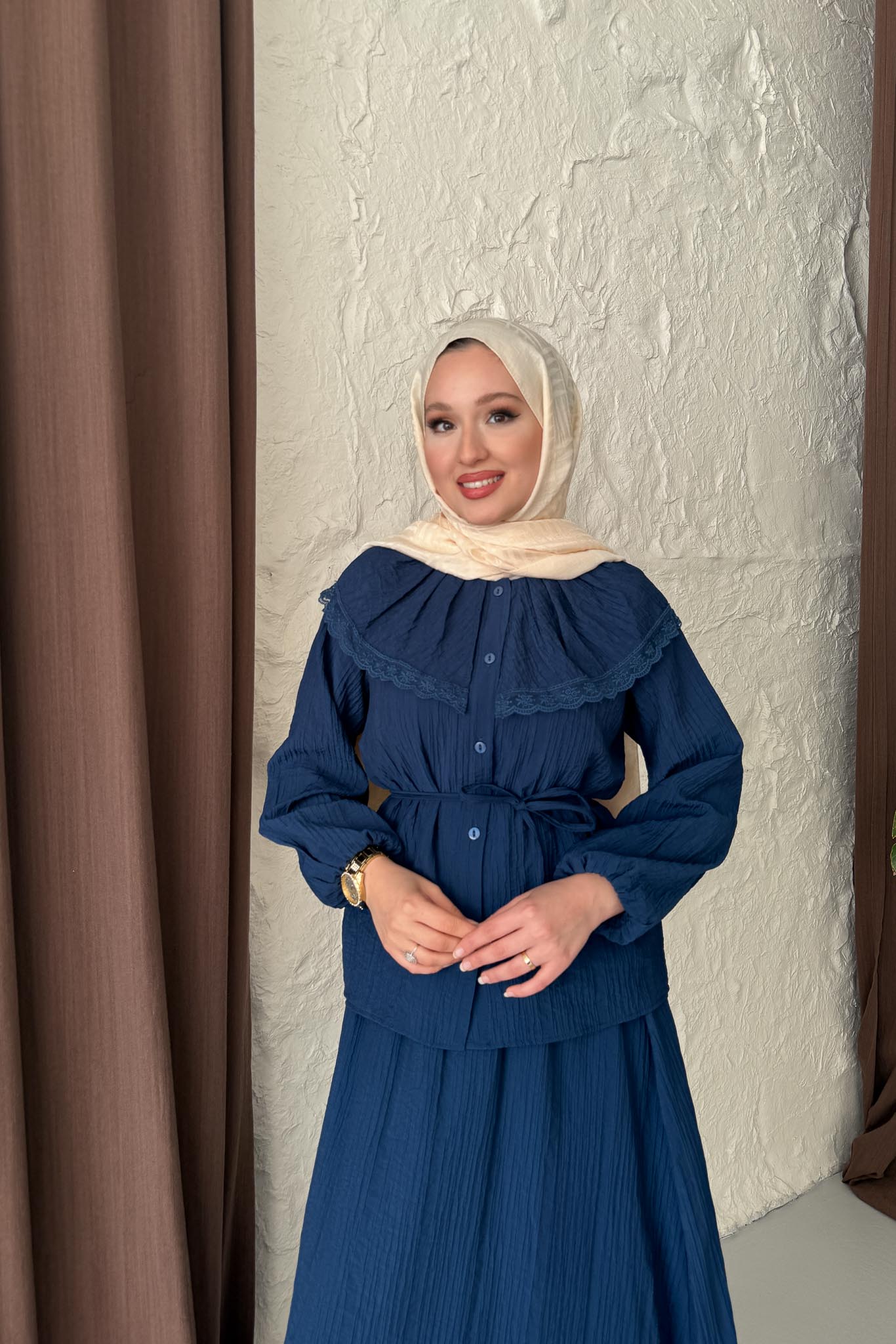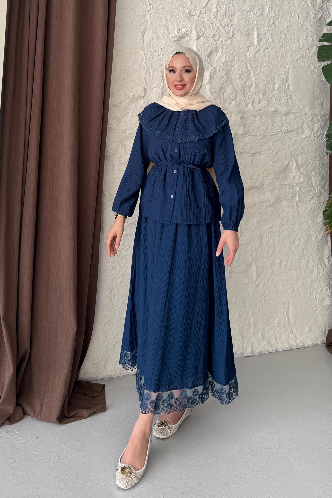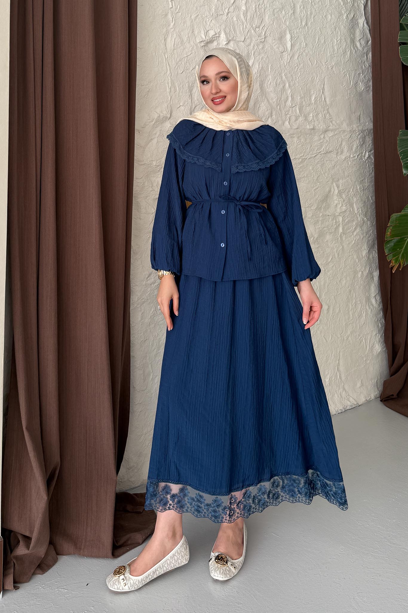 Güpürlü Etek Takım Lacivert