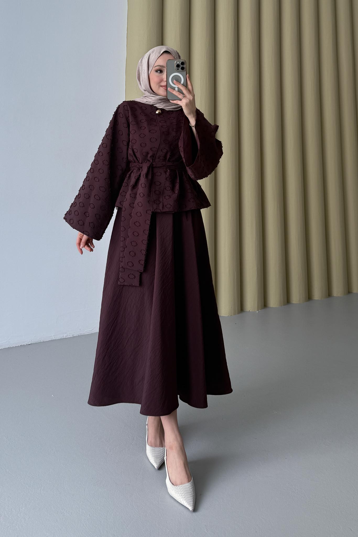Harika duruşu vardır, Ceket ortalama 45 cm dir, Kuşaklıdır, Etek Kloş formdadır rahattır.