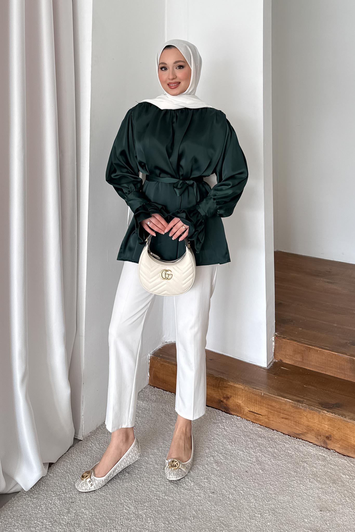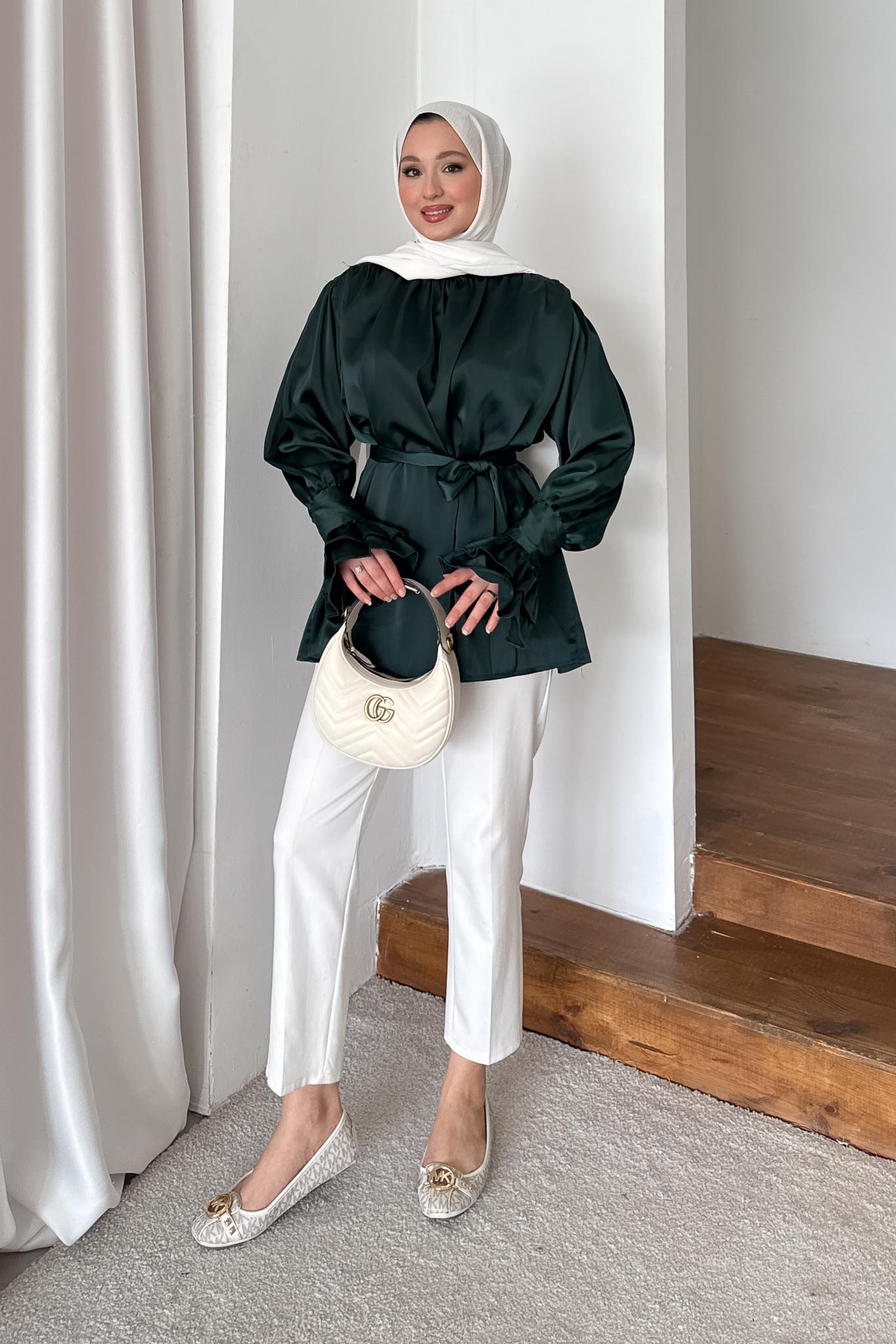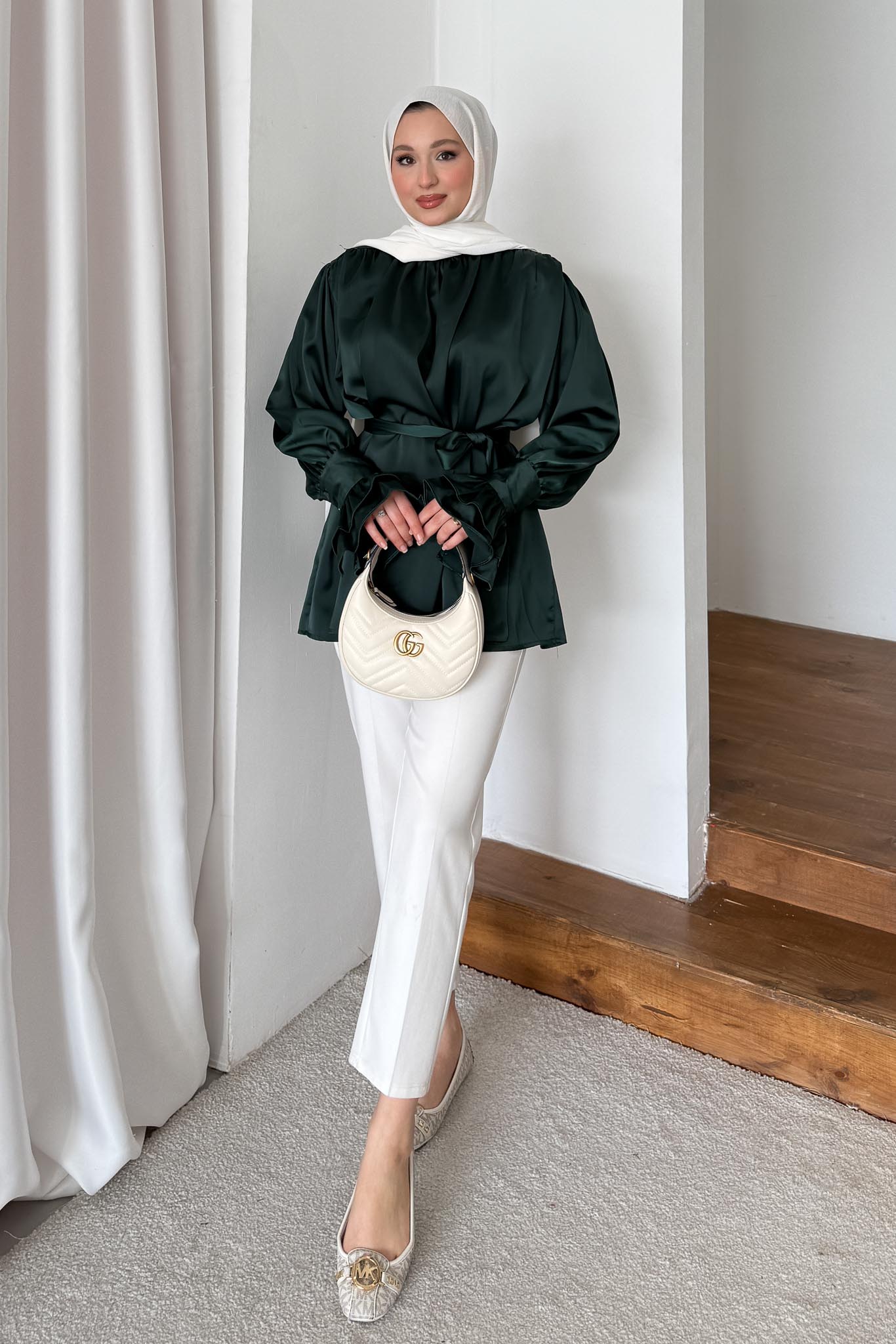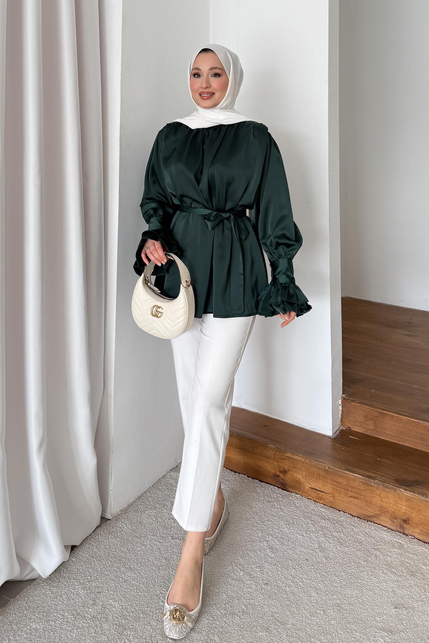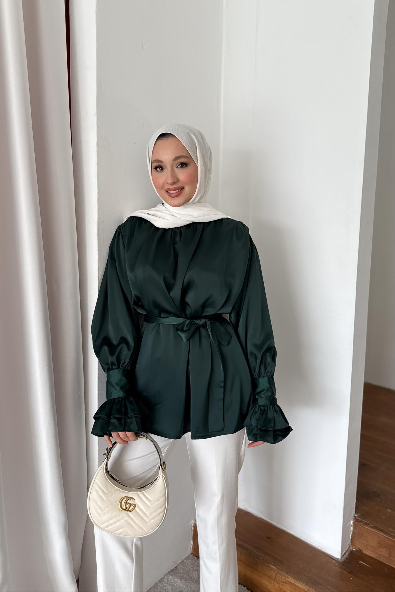 İpek Kol Detaylı Gömlek Zümrüt