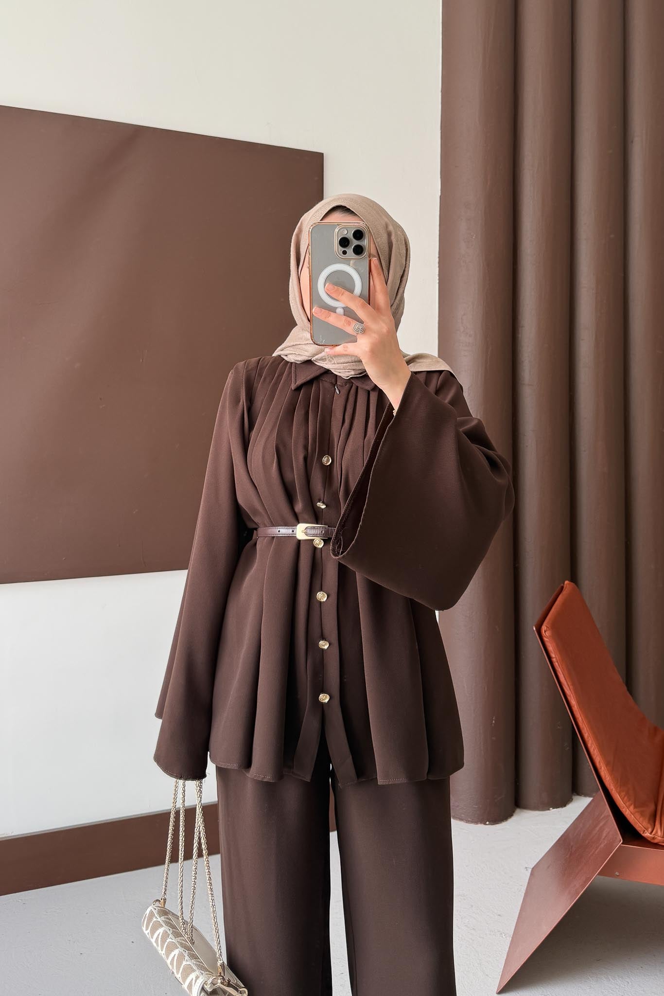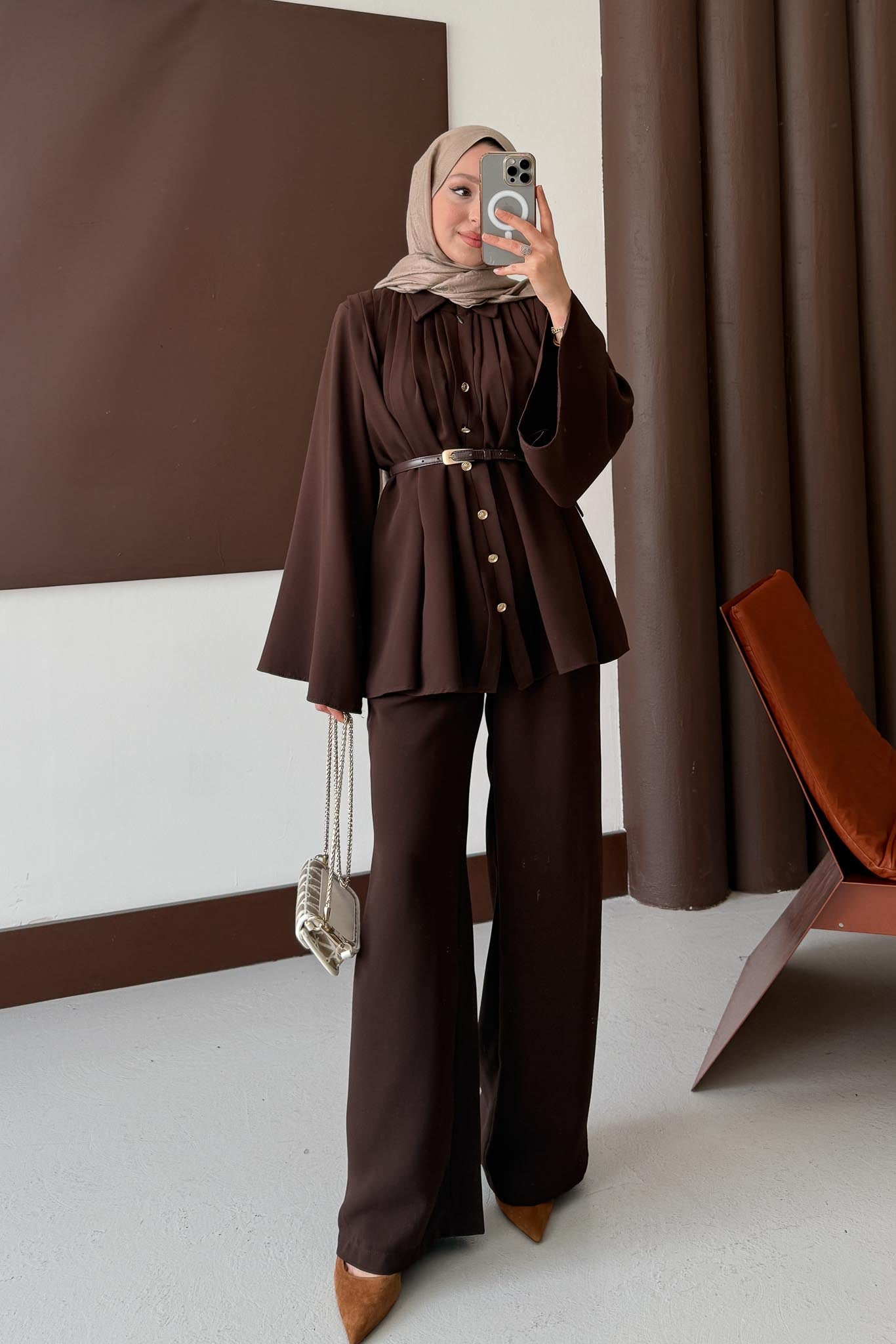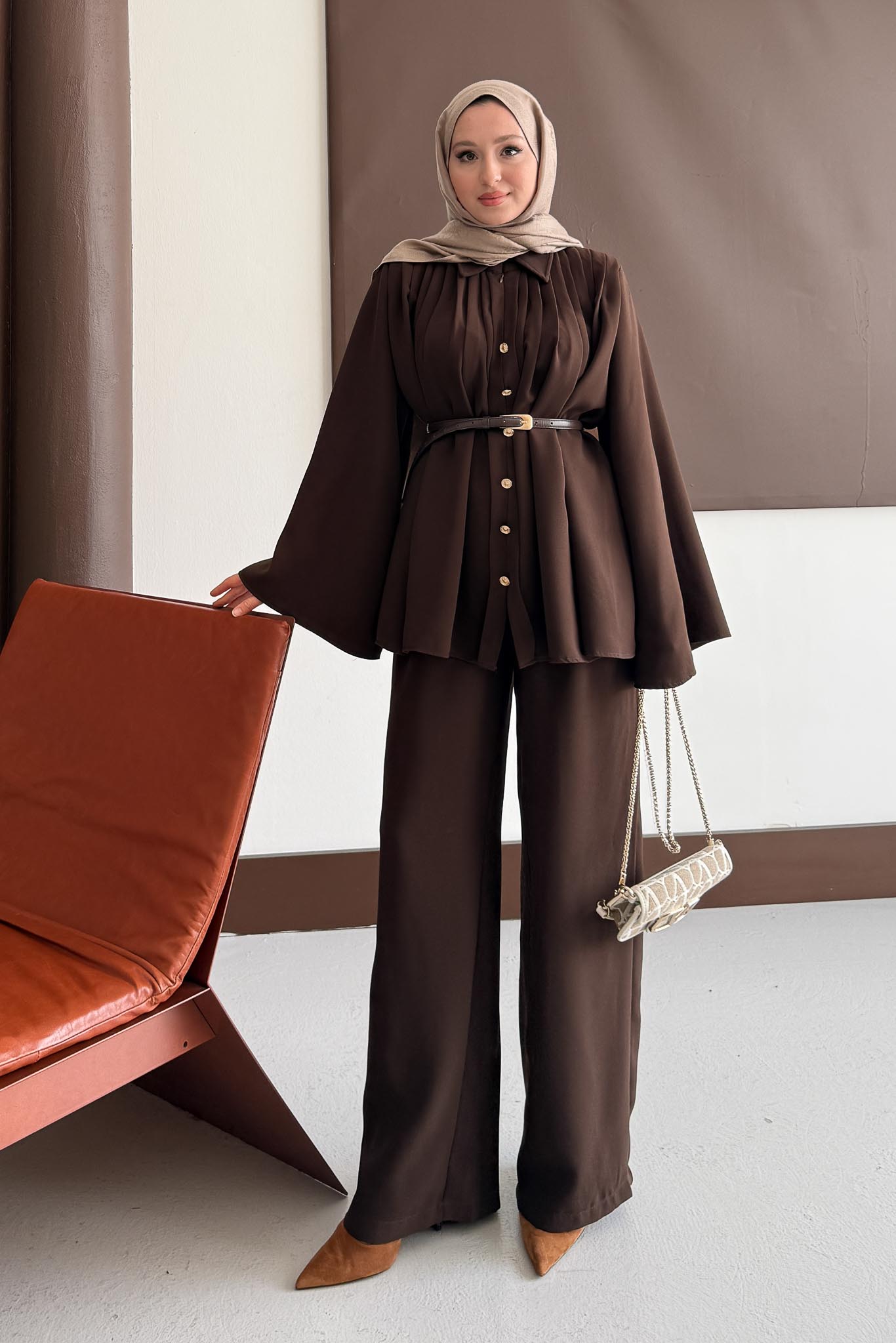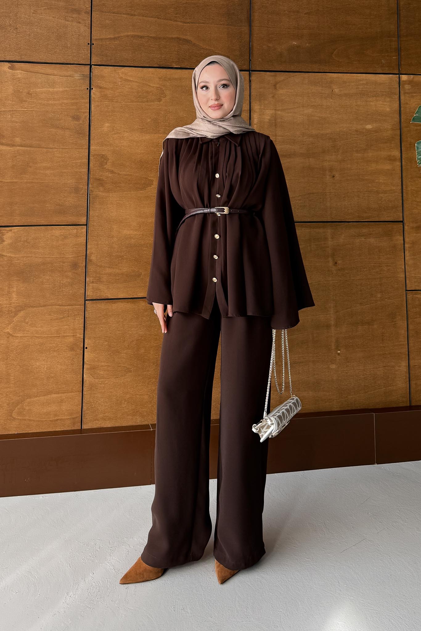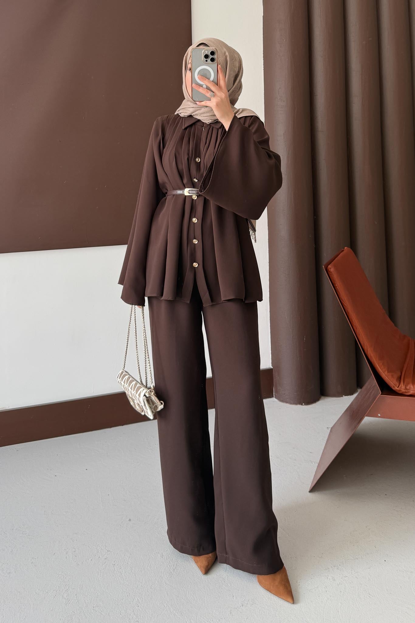 Jimen Pileli Takım Kahverengi