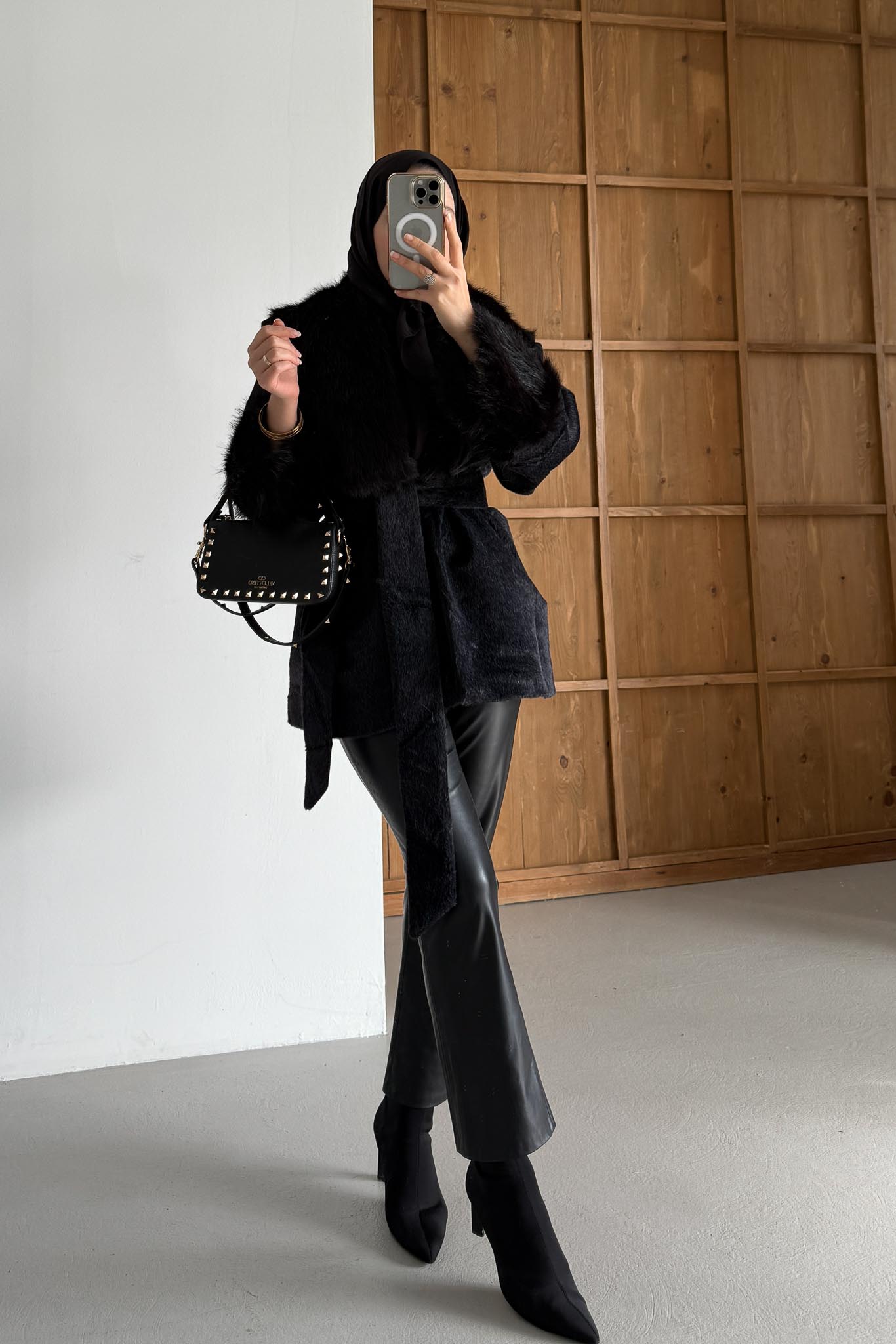 Boy ortalama 80 cm, Beli seyyar kuşaklıdır, yaka ve kol ucu kürklü peluştur.
