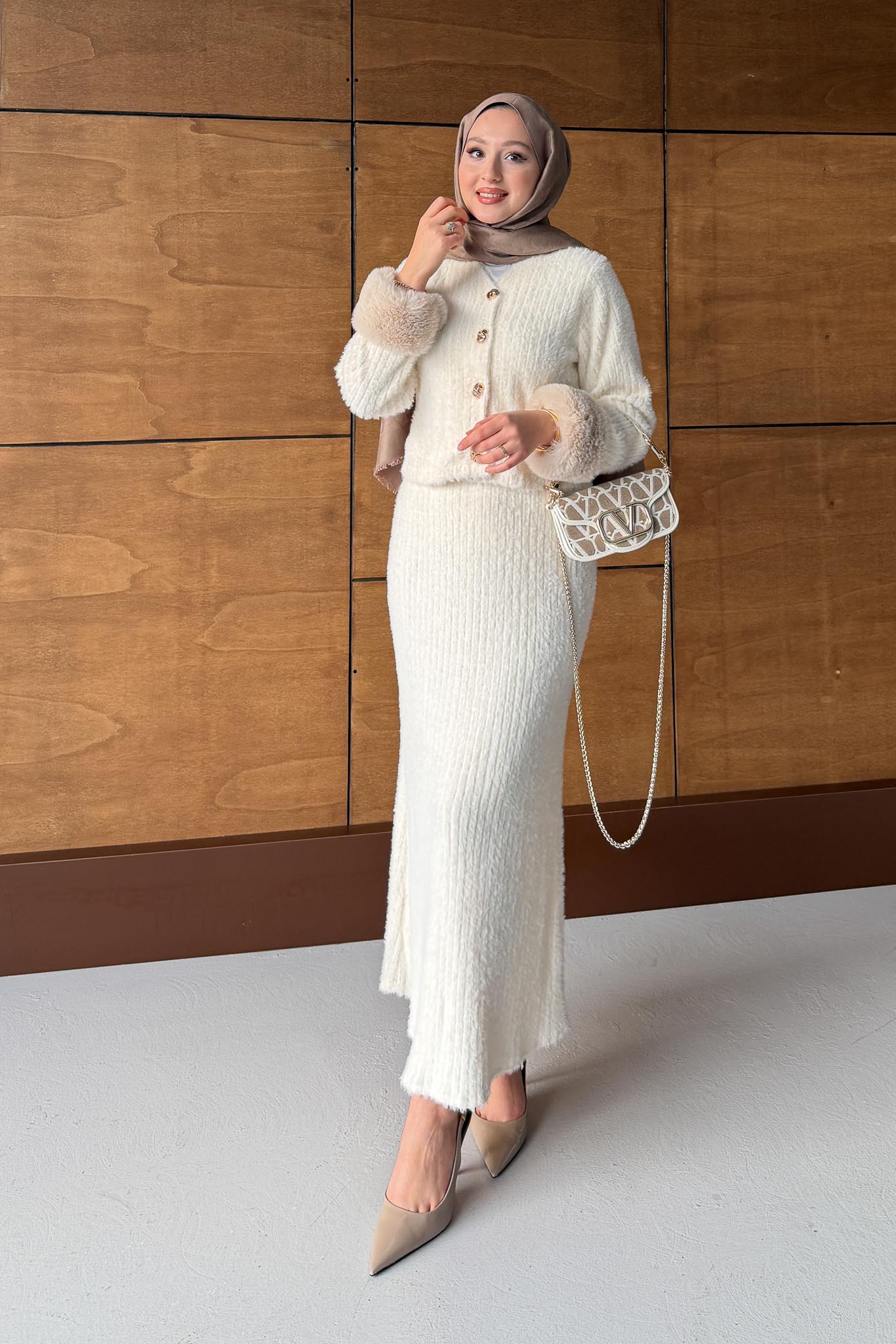 Tunik ortalama: 55 cm, Kol ucu kürklüdür, Etek Kloş formdadır ve rahattır, beli lastiklidir.