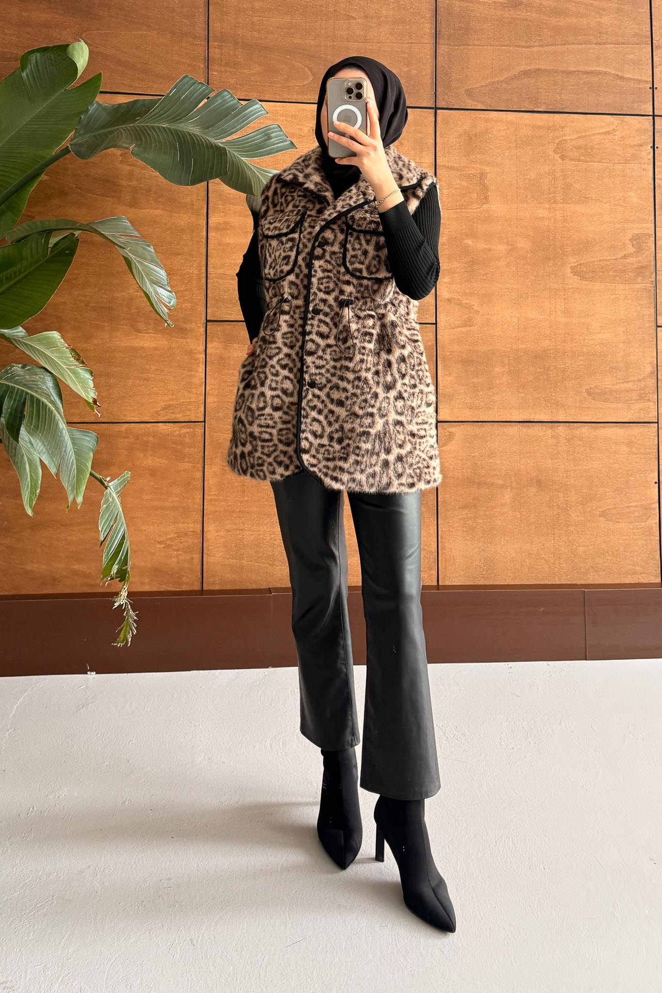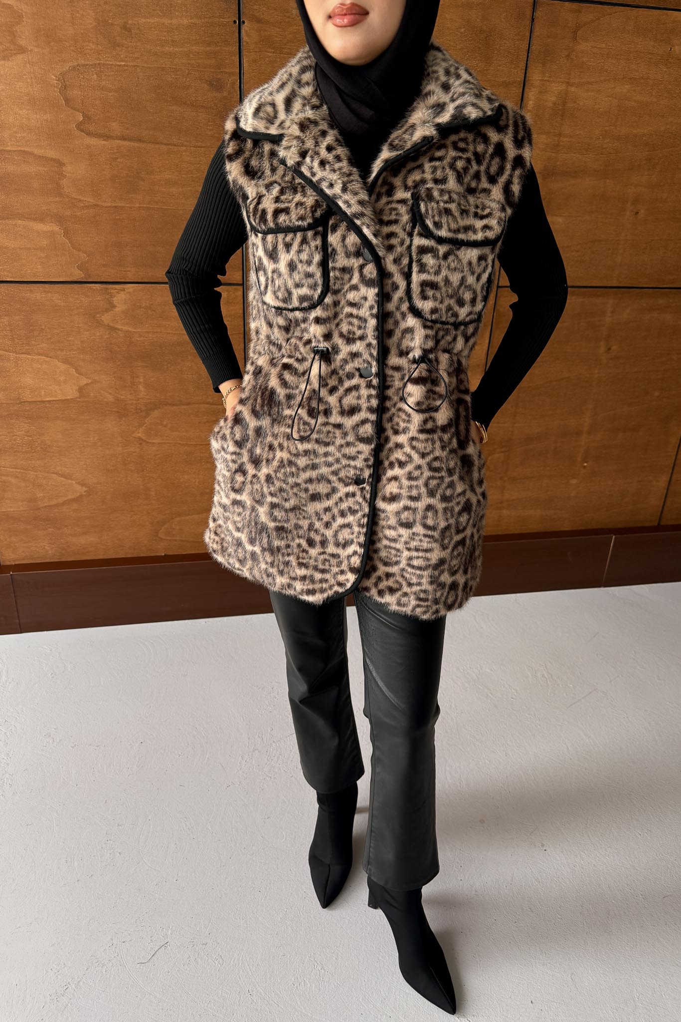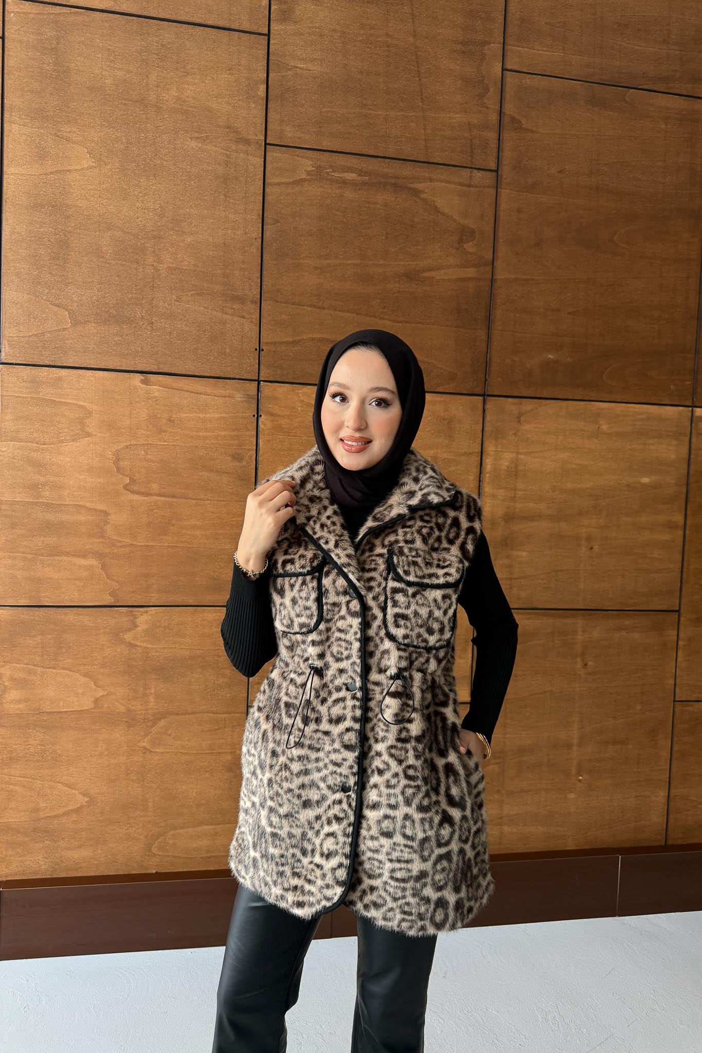 Leopar Kürklü Yelek Taş