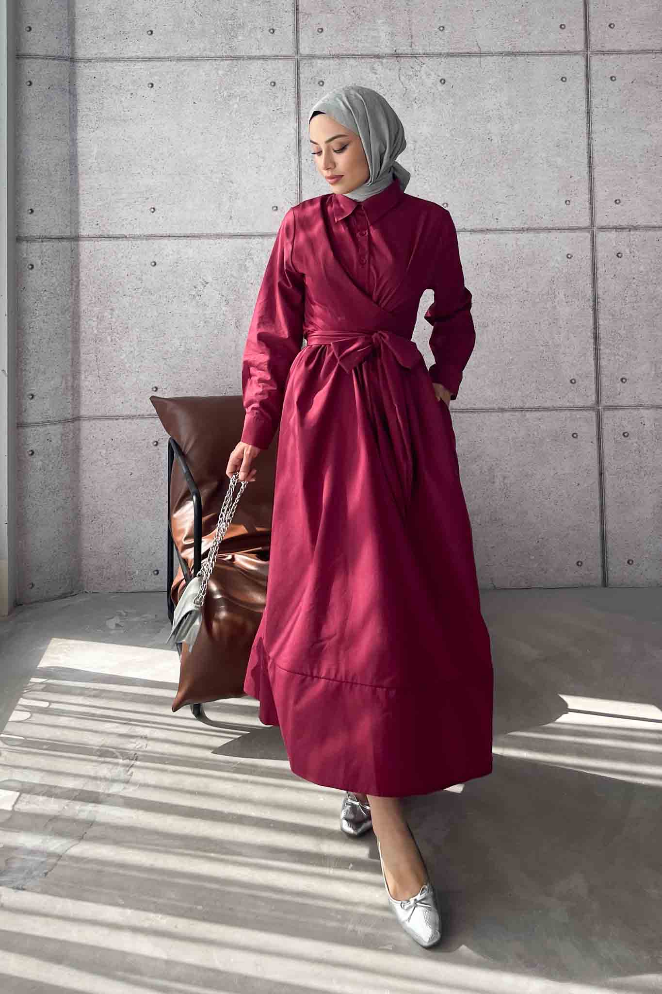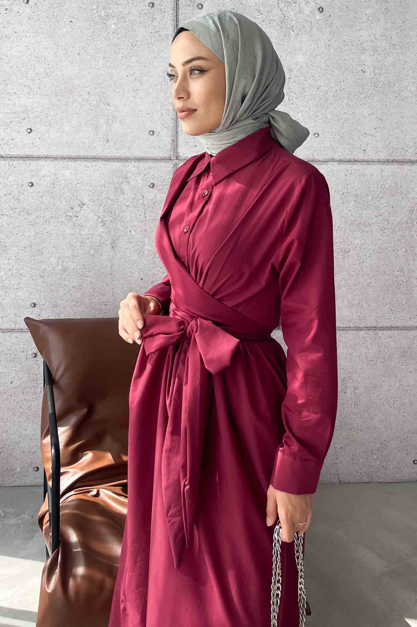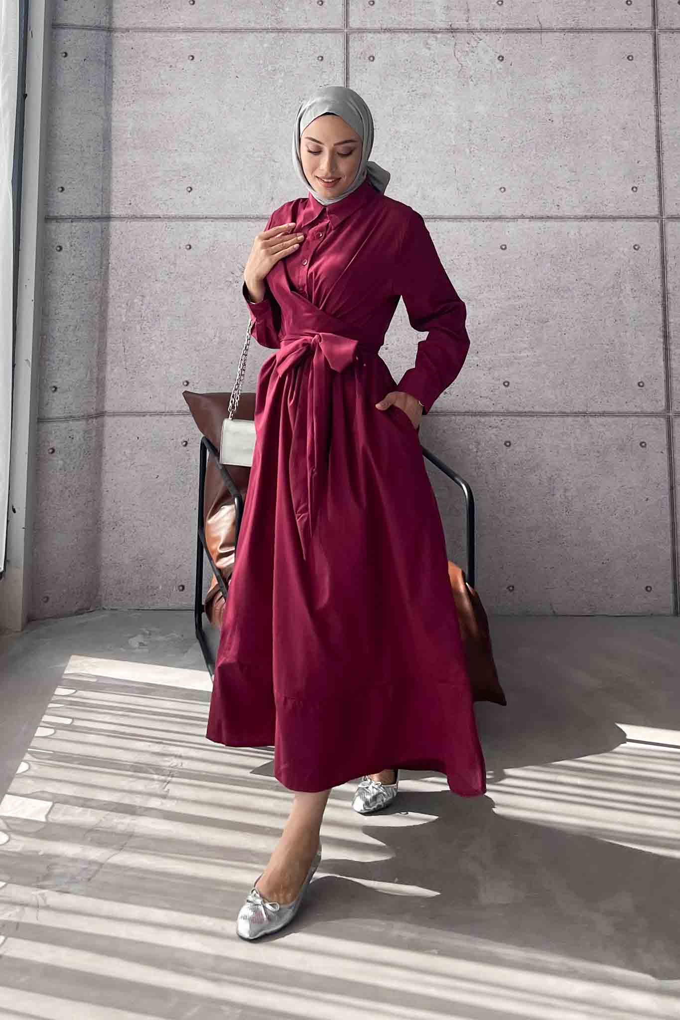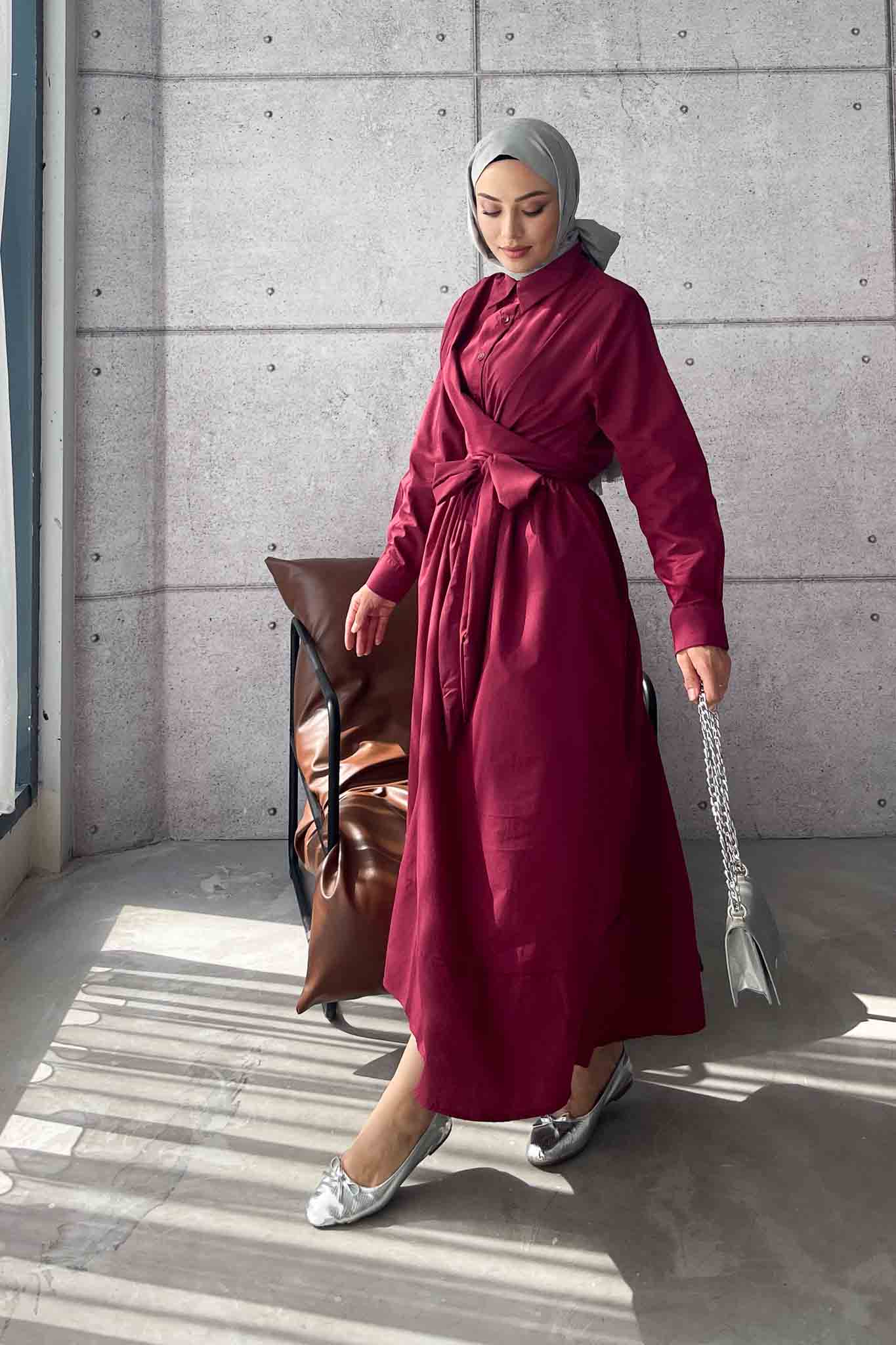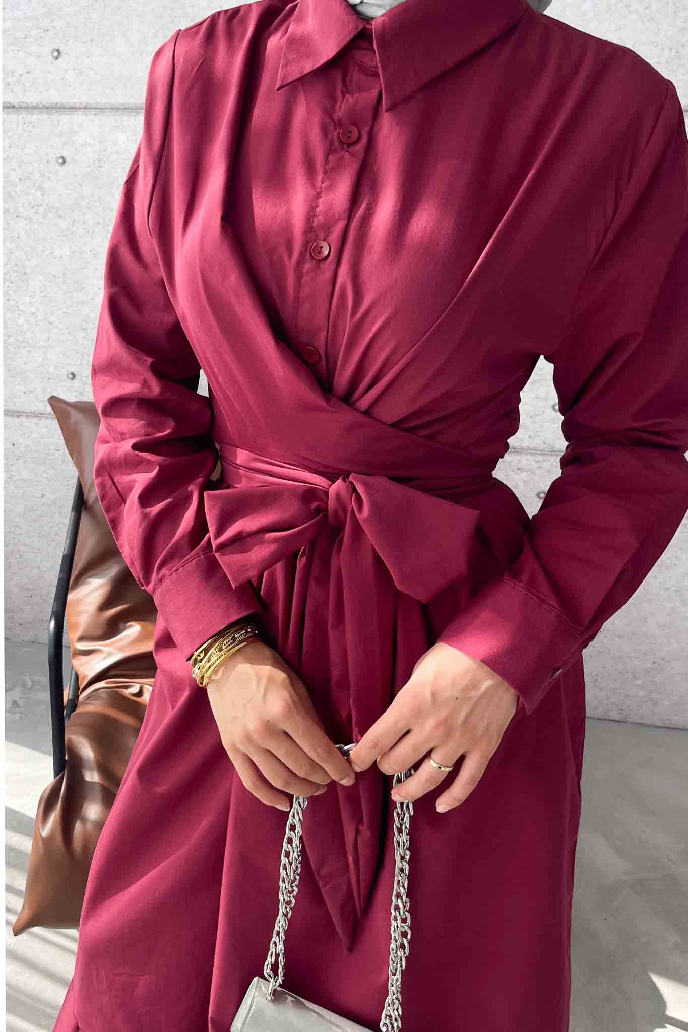 Live Belden Bağlamalı Elbise Bordo