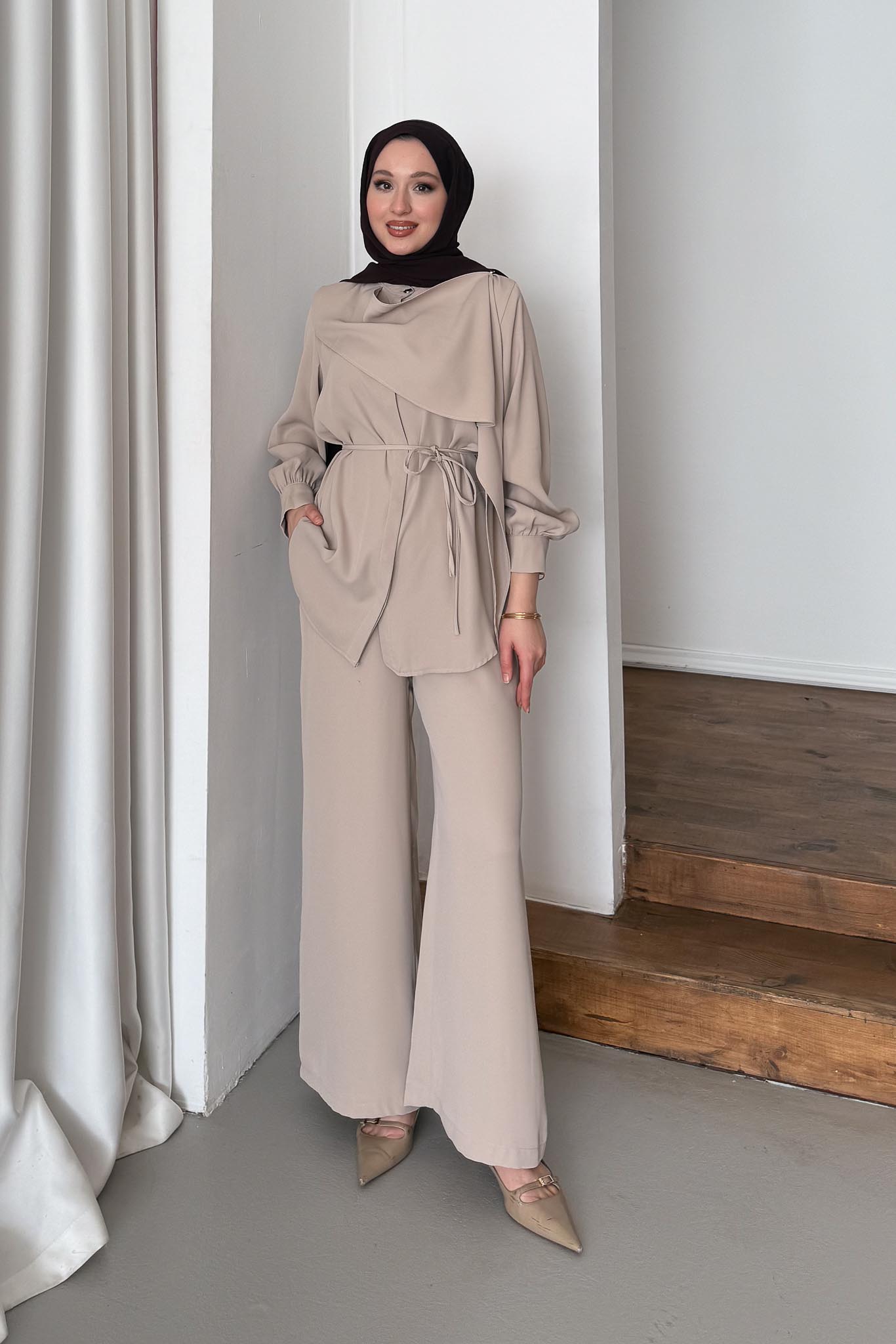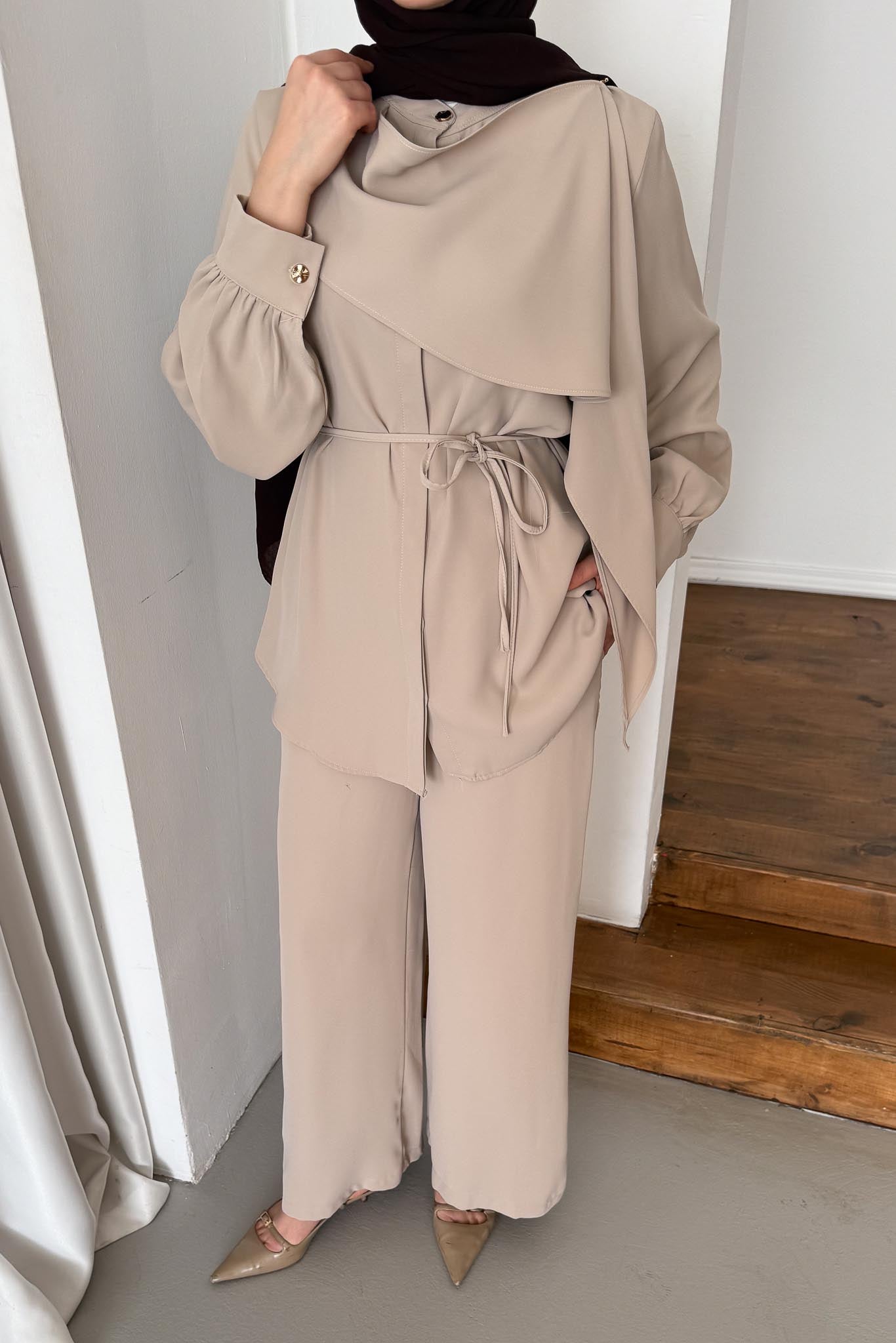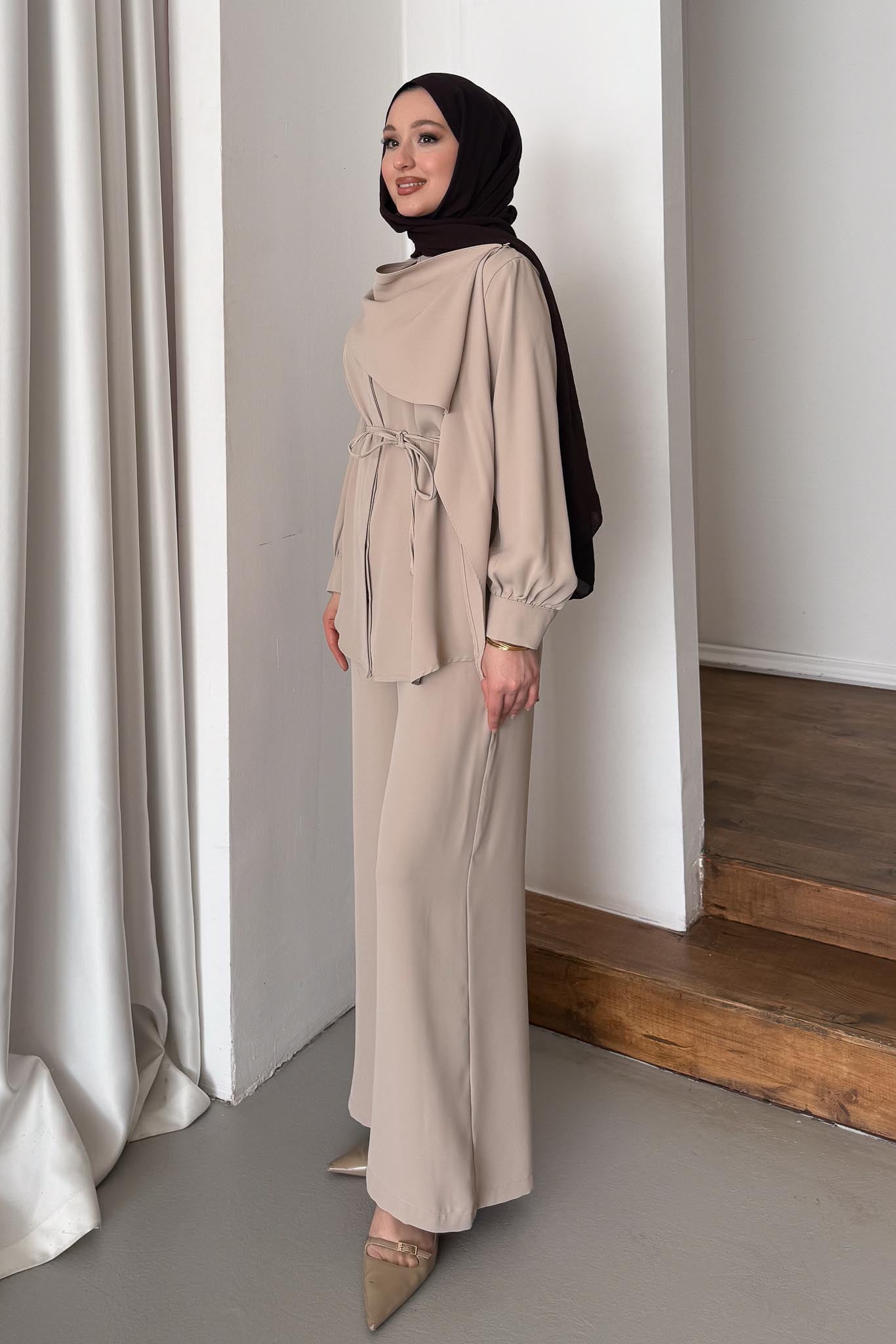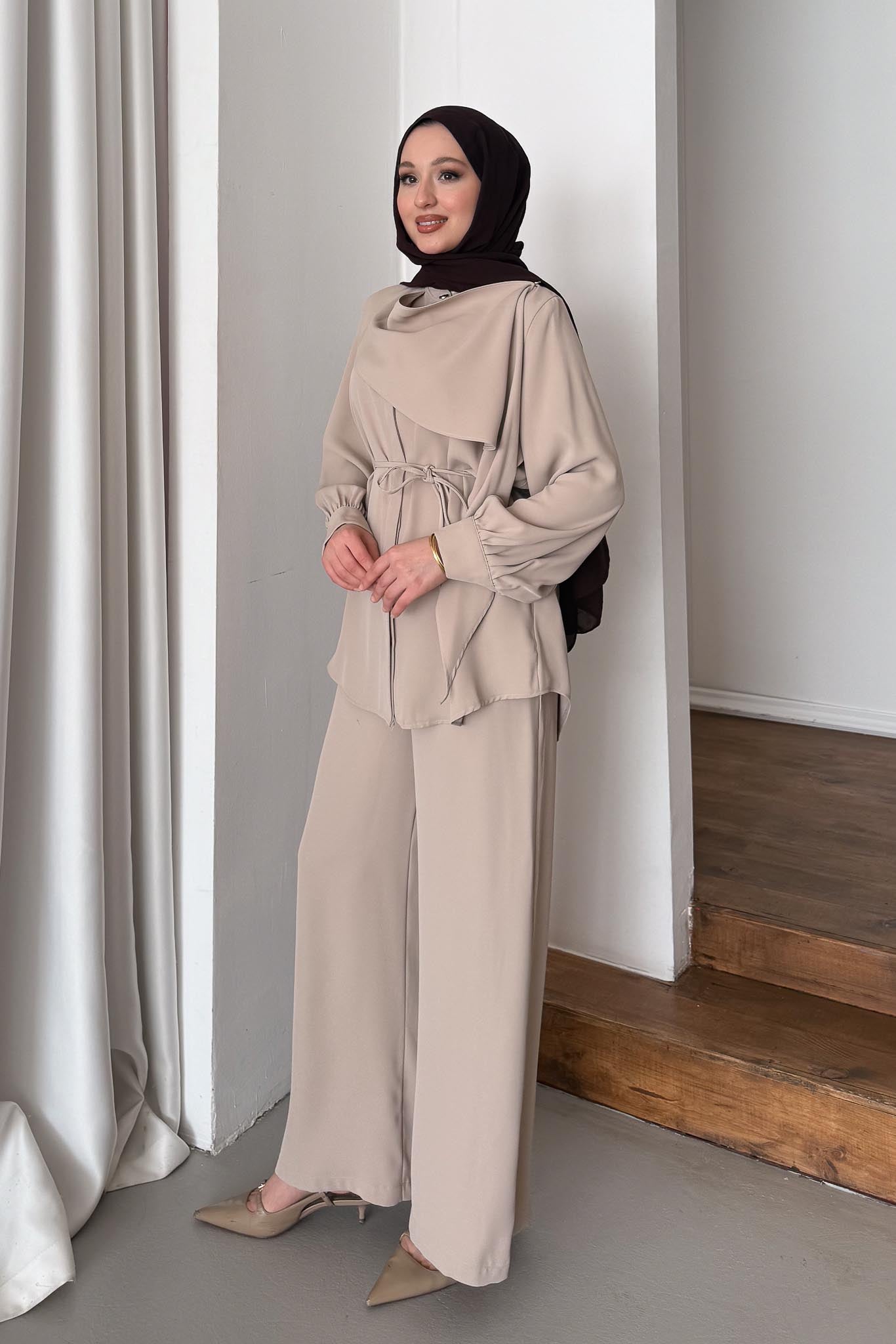 Şık duruşludur, Pelerin Bağlamalıdır, Seyyar Kuşaklıdır, Pantolon Beli Lastikli Rahat Kalıptır.