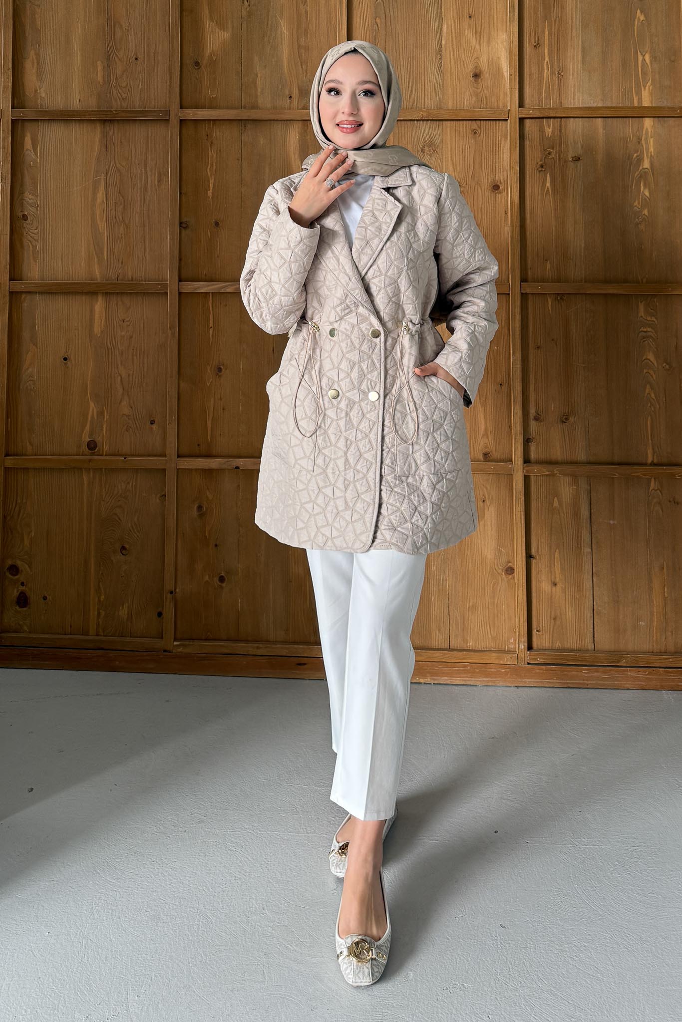 Astarlı ve Ceplidir. Kapitone Boy; 80 cm dir. gold düğme detaylıdır.