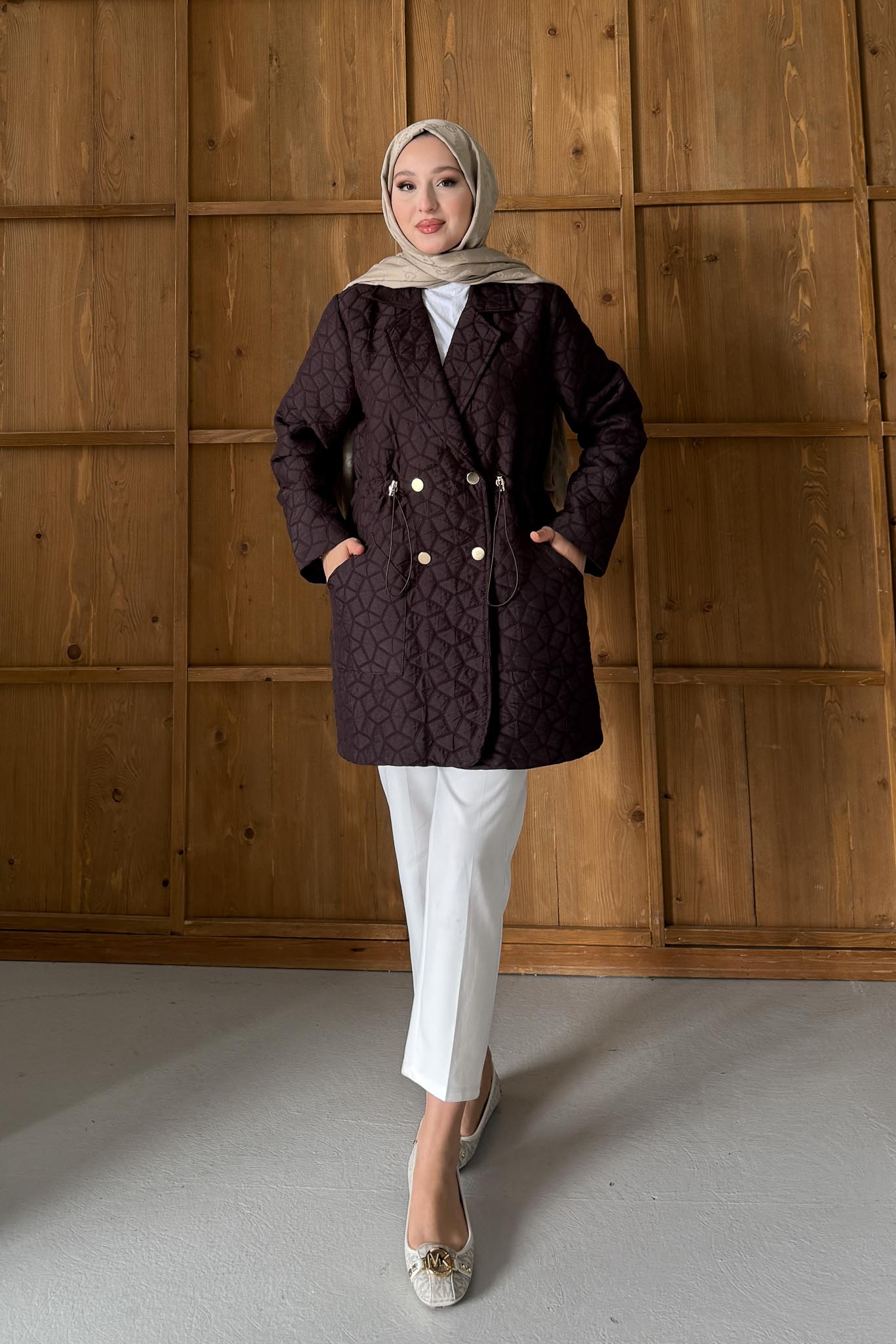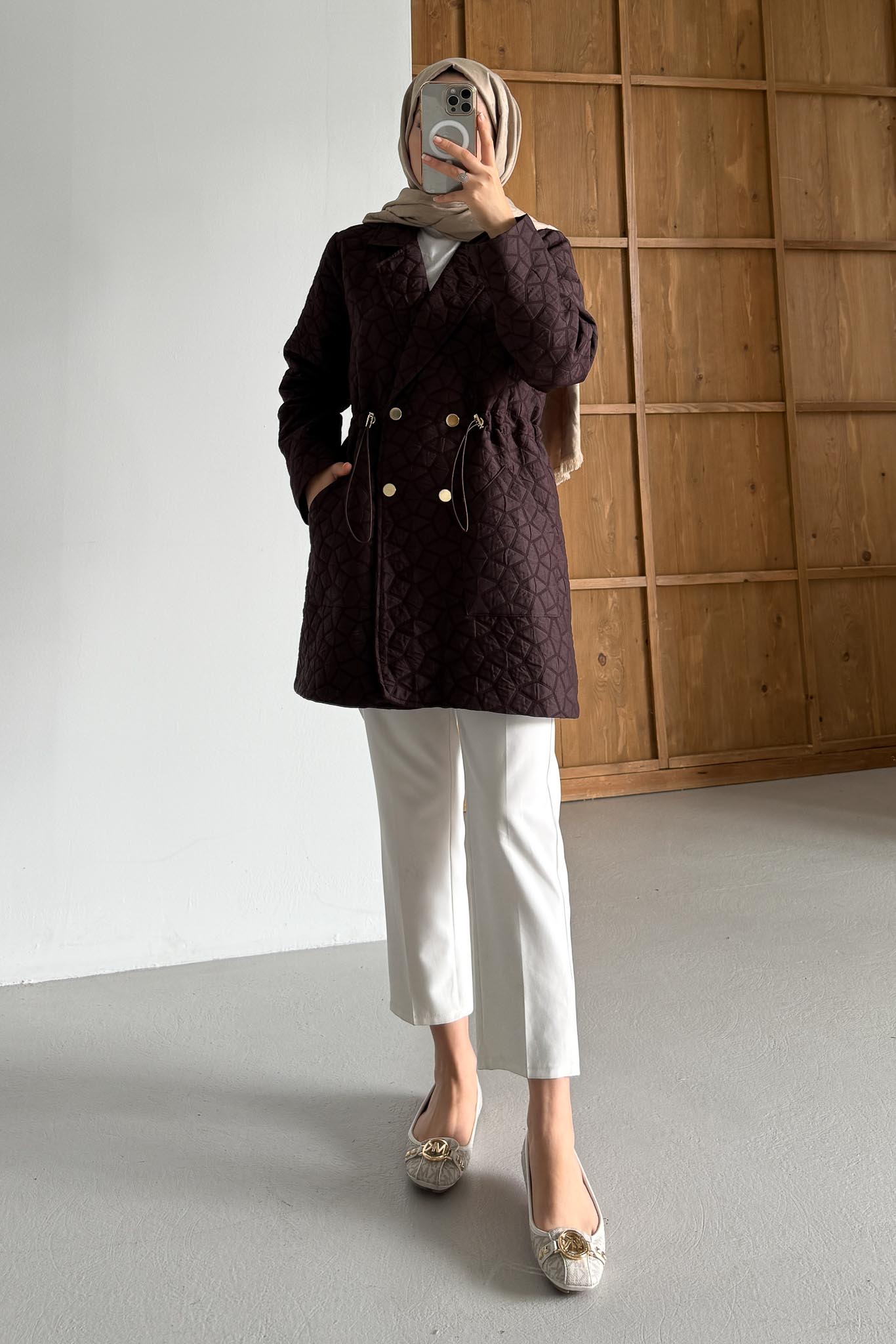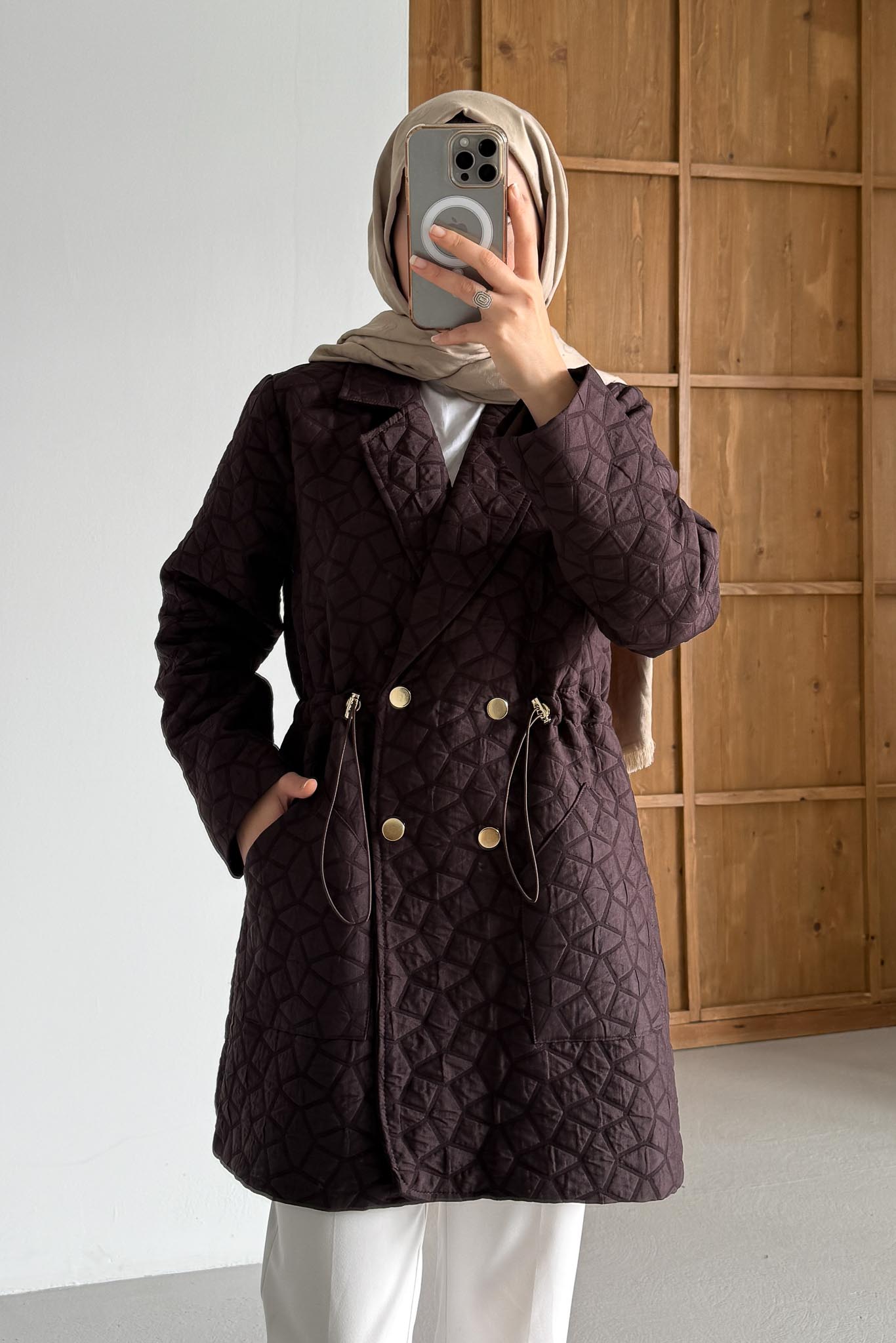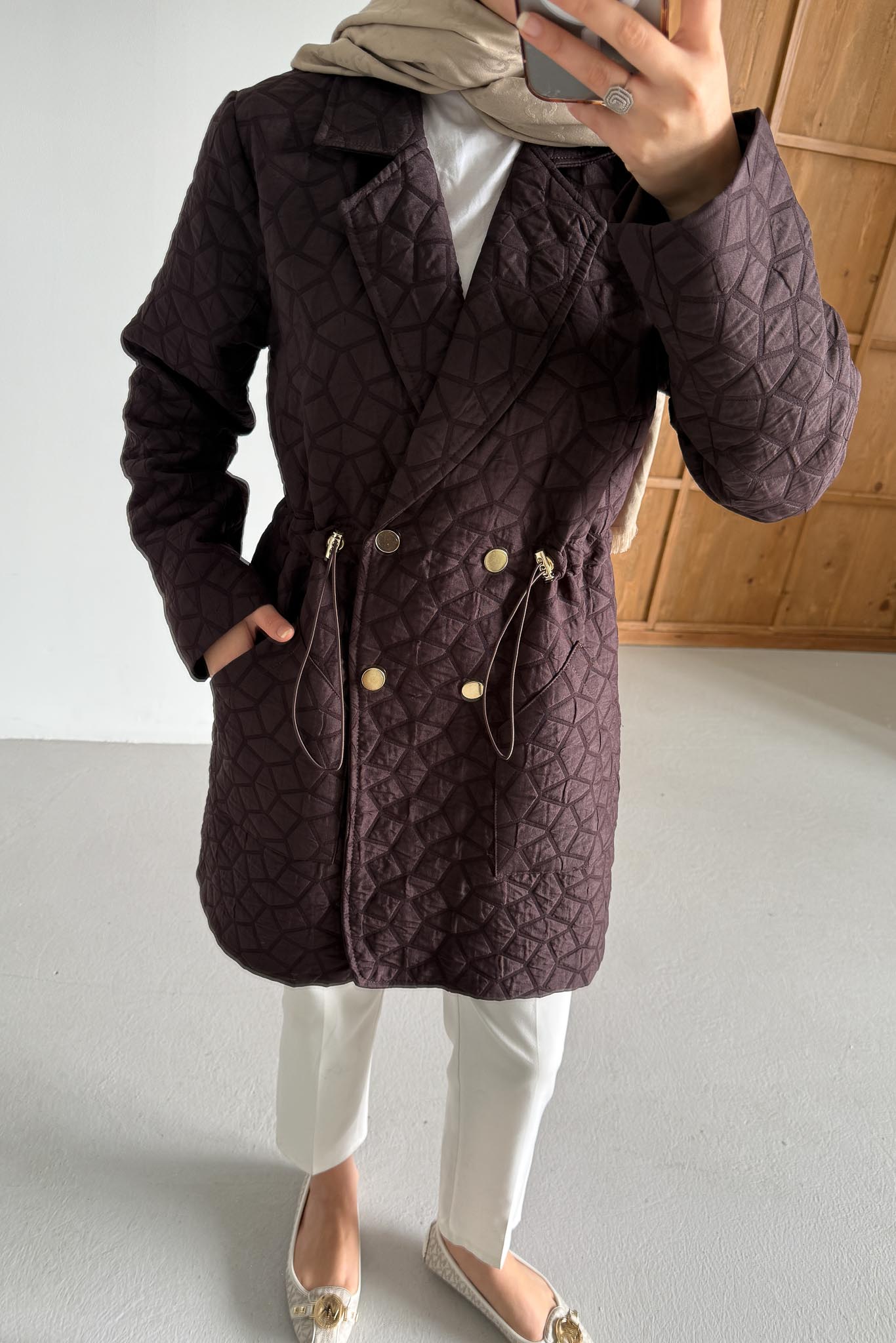 Astarlı ve Ceplidir. Kapitone Boy; 80 cm dir. gold düğme detaylıdır.