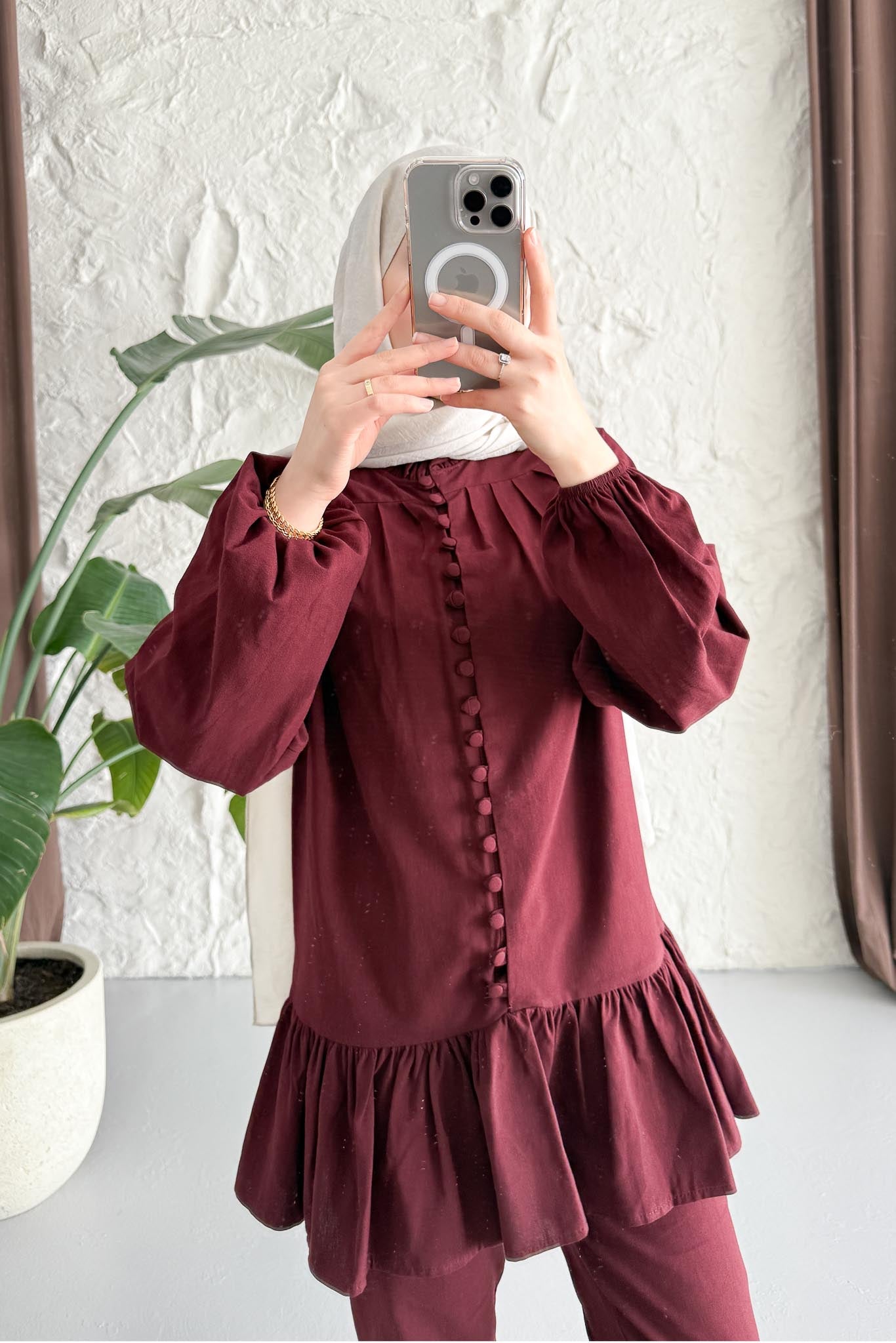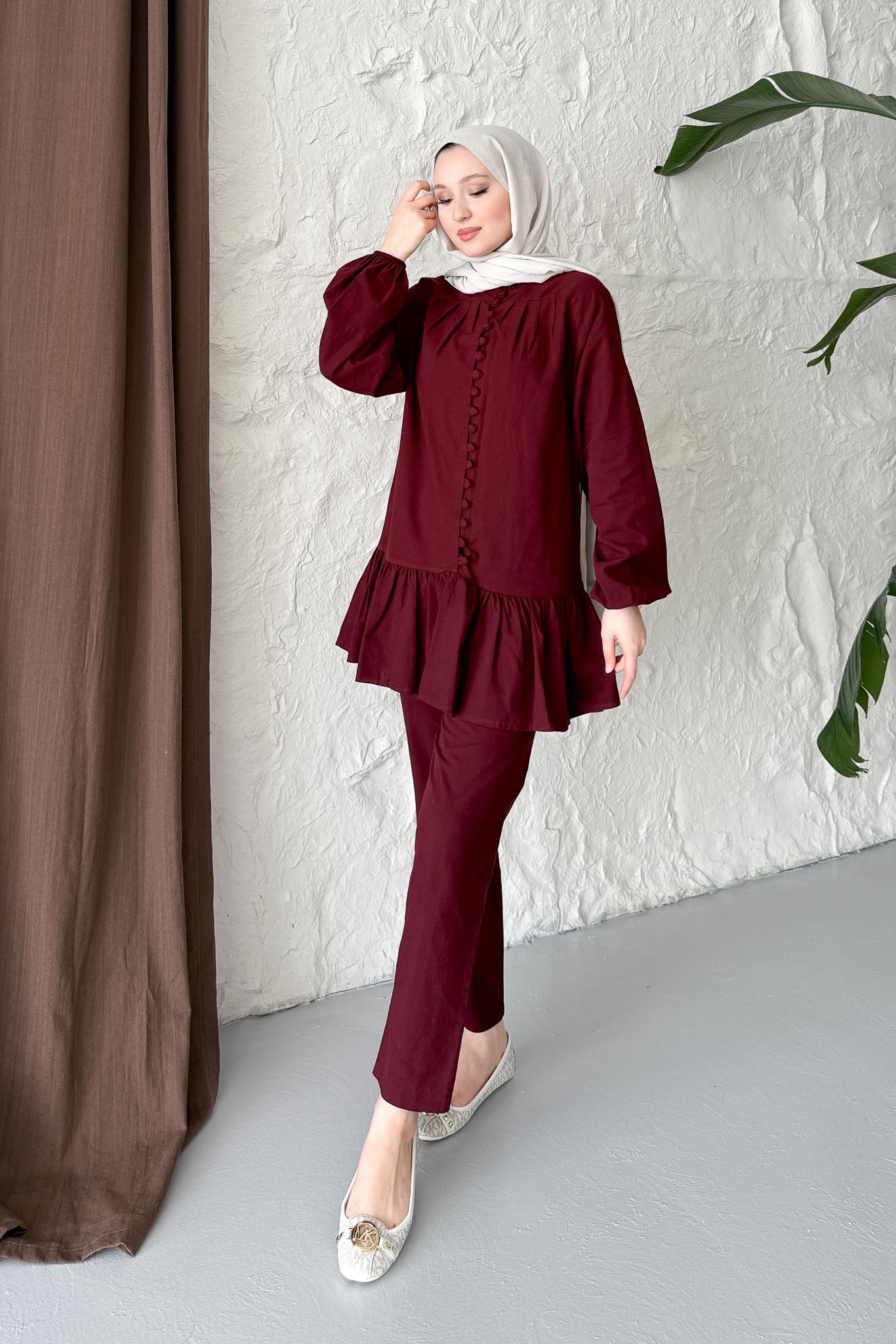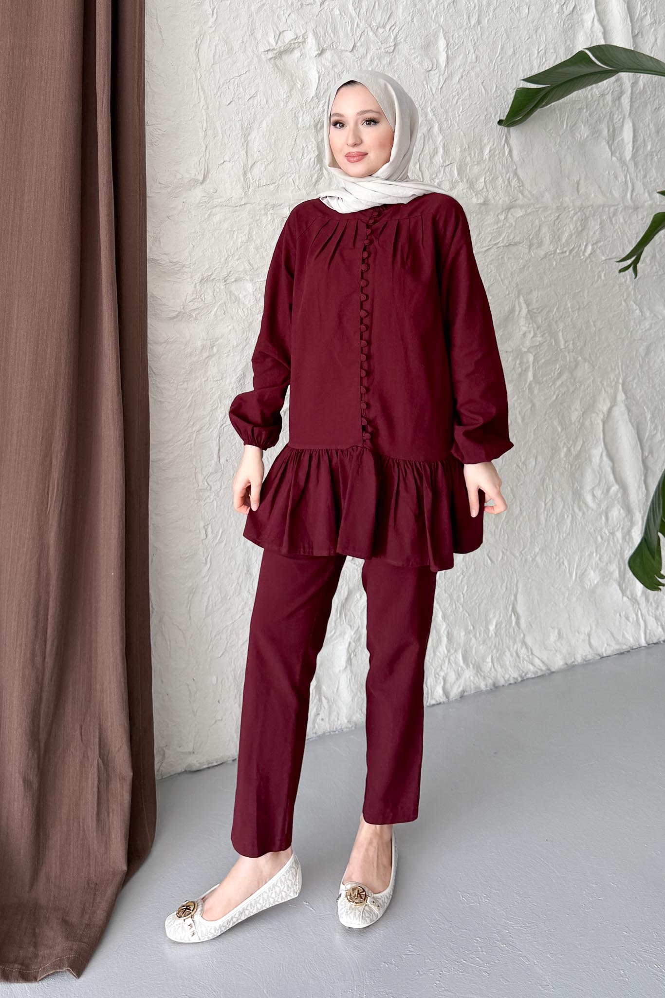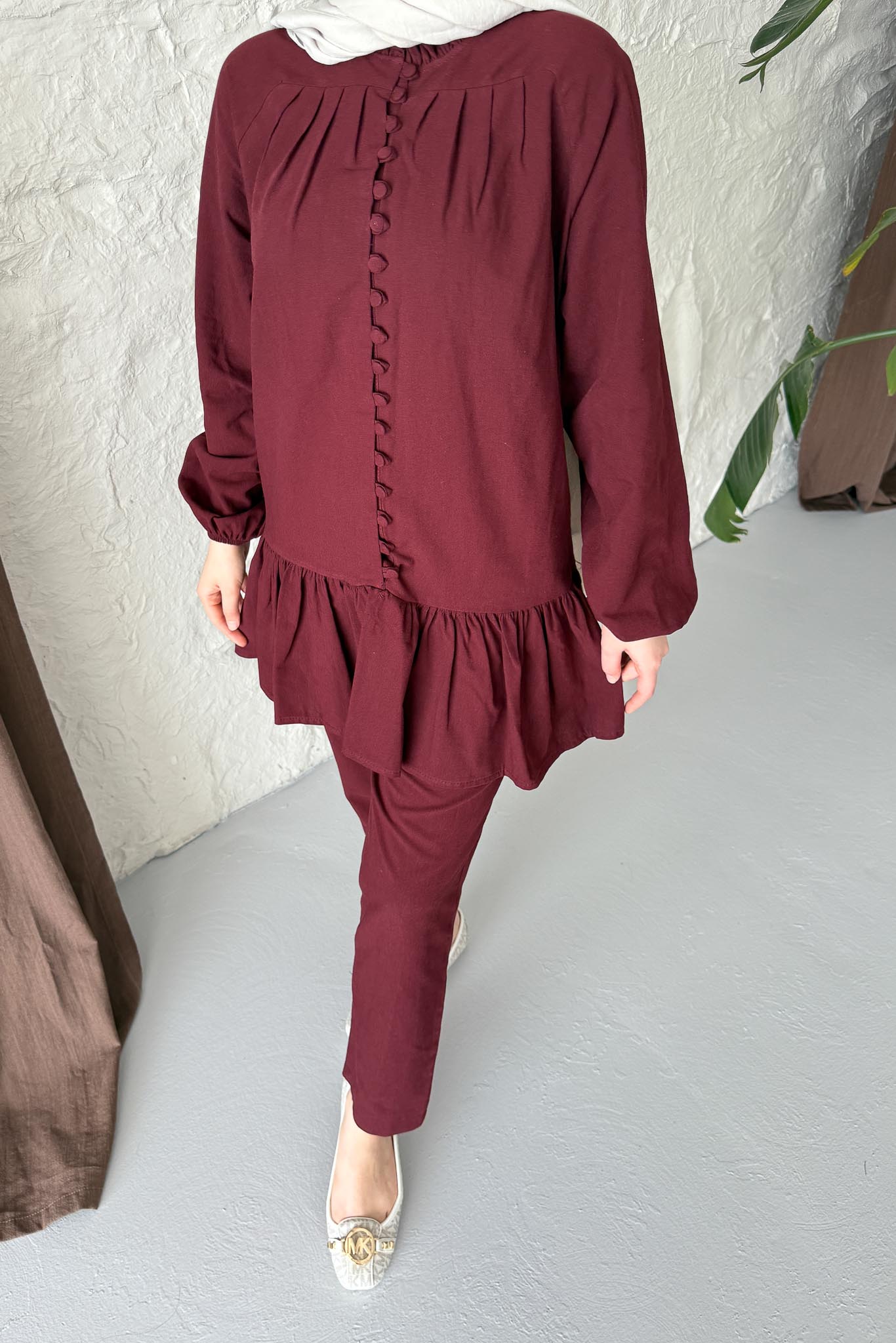 Marca Düğmeli Takım Bordo