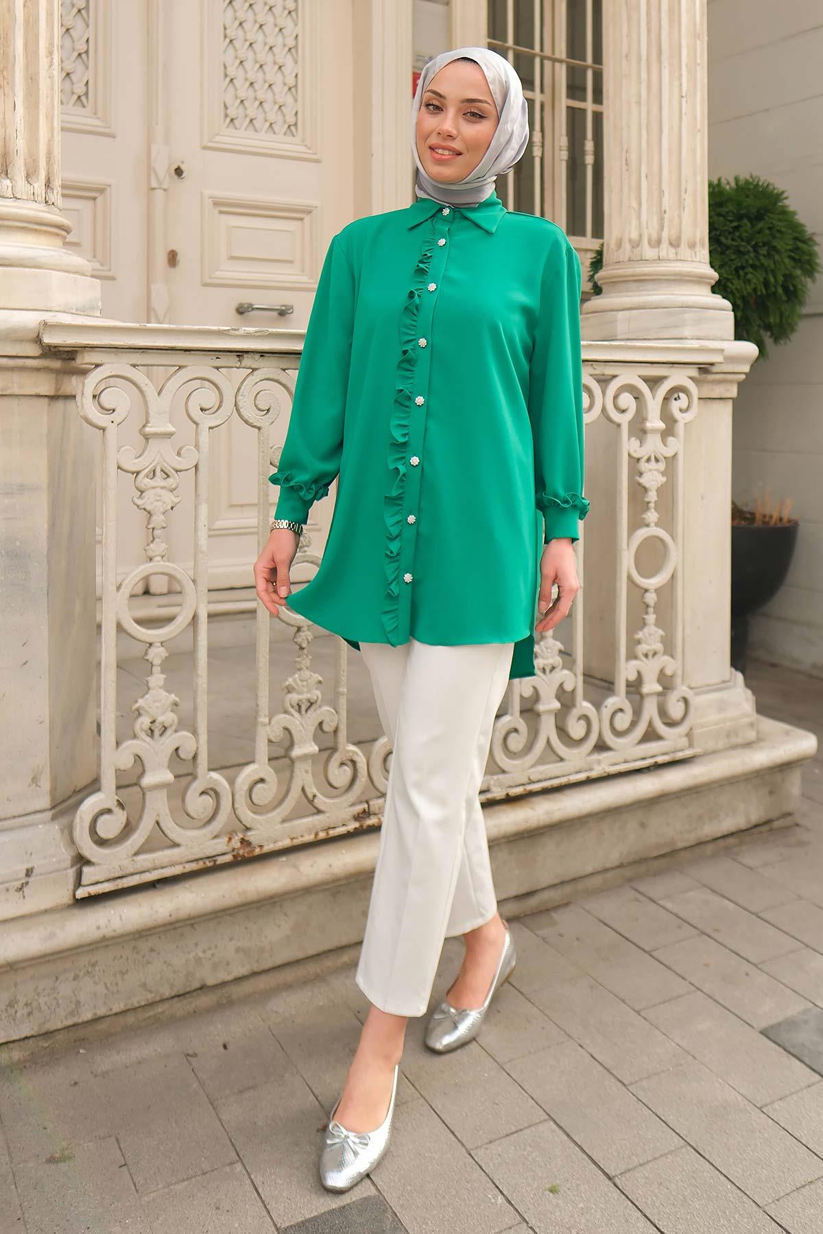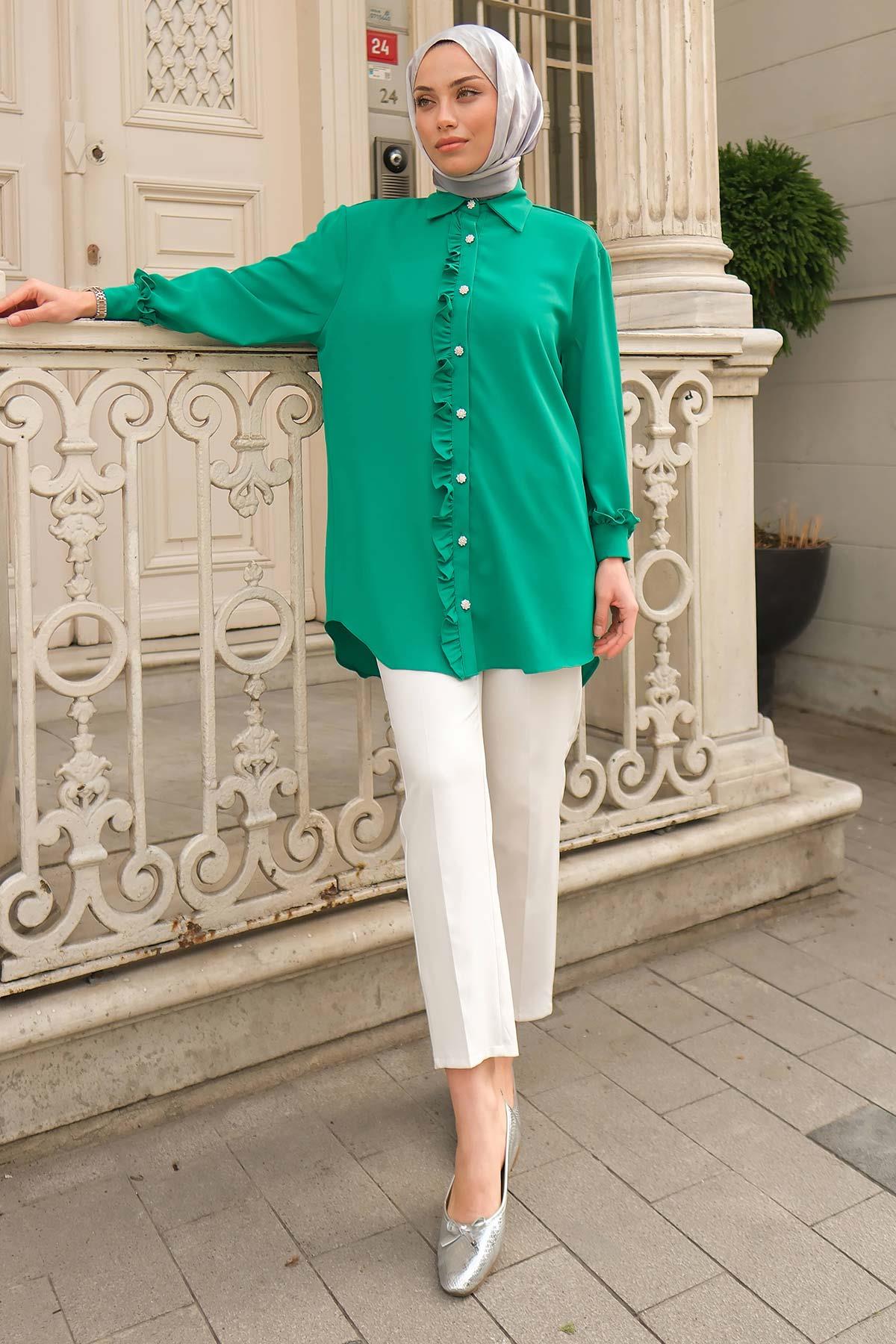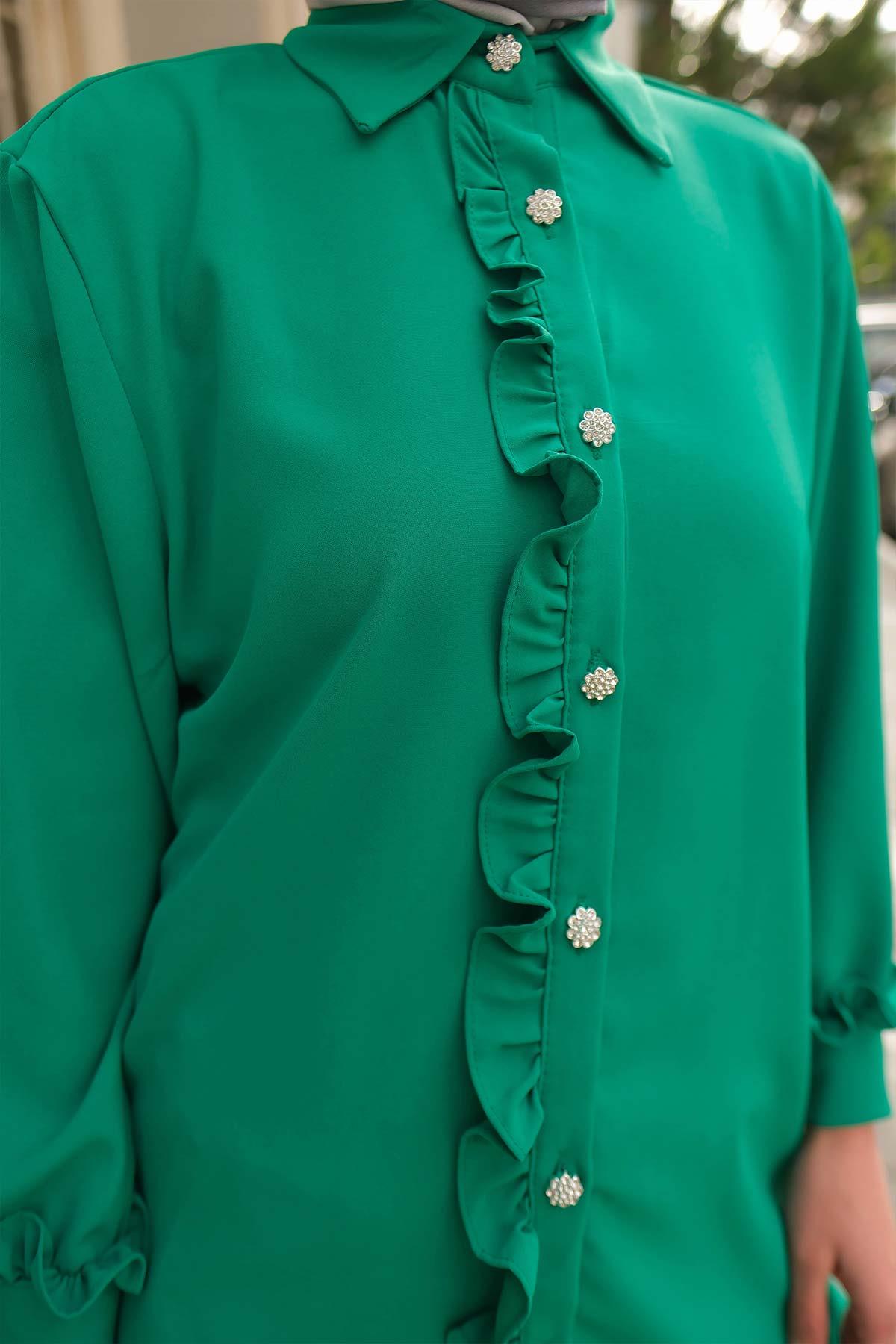 Marie Fırfırlı Gömlek Yeşil