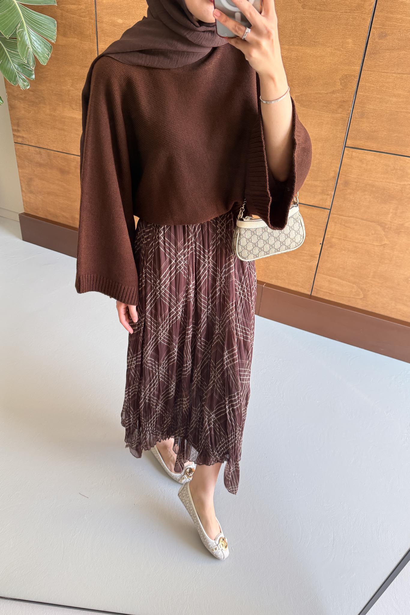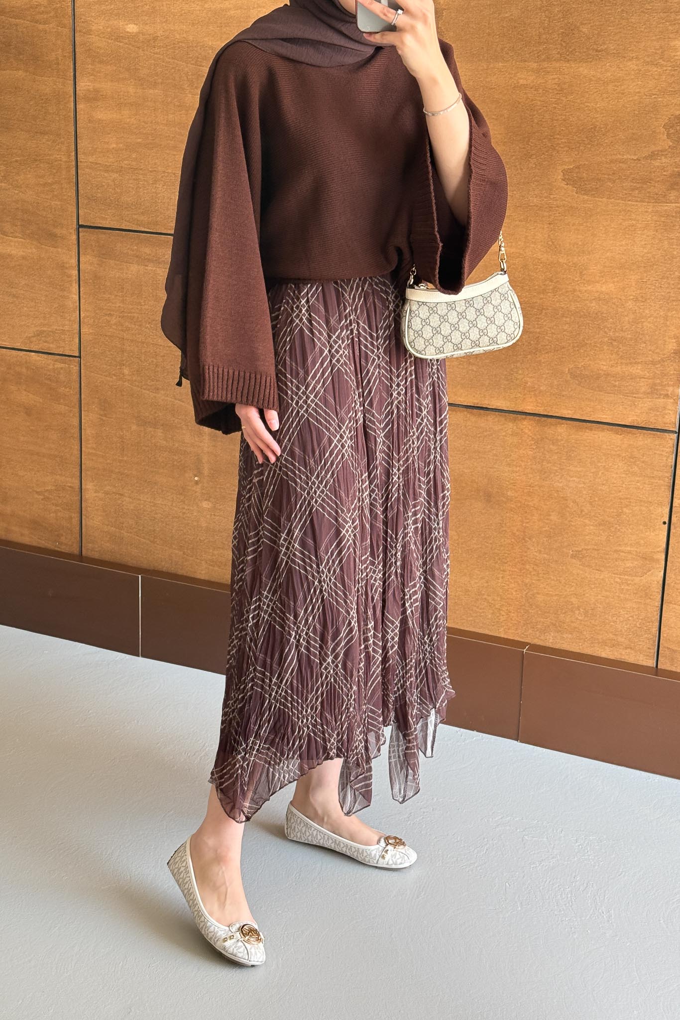 Etek Uzunluk : 96cm, Beli lastiklidir, Plisole Kloş formdadır.