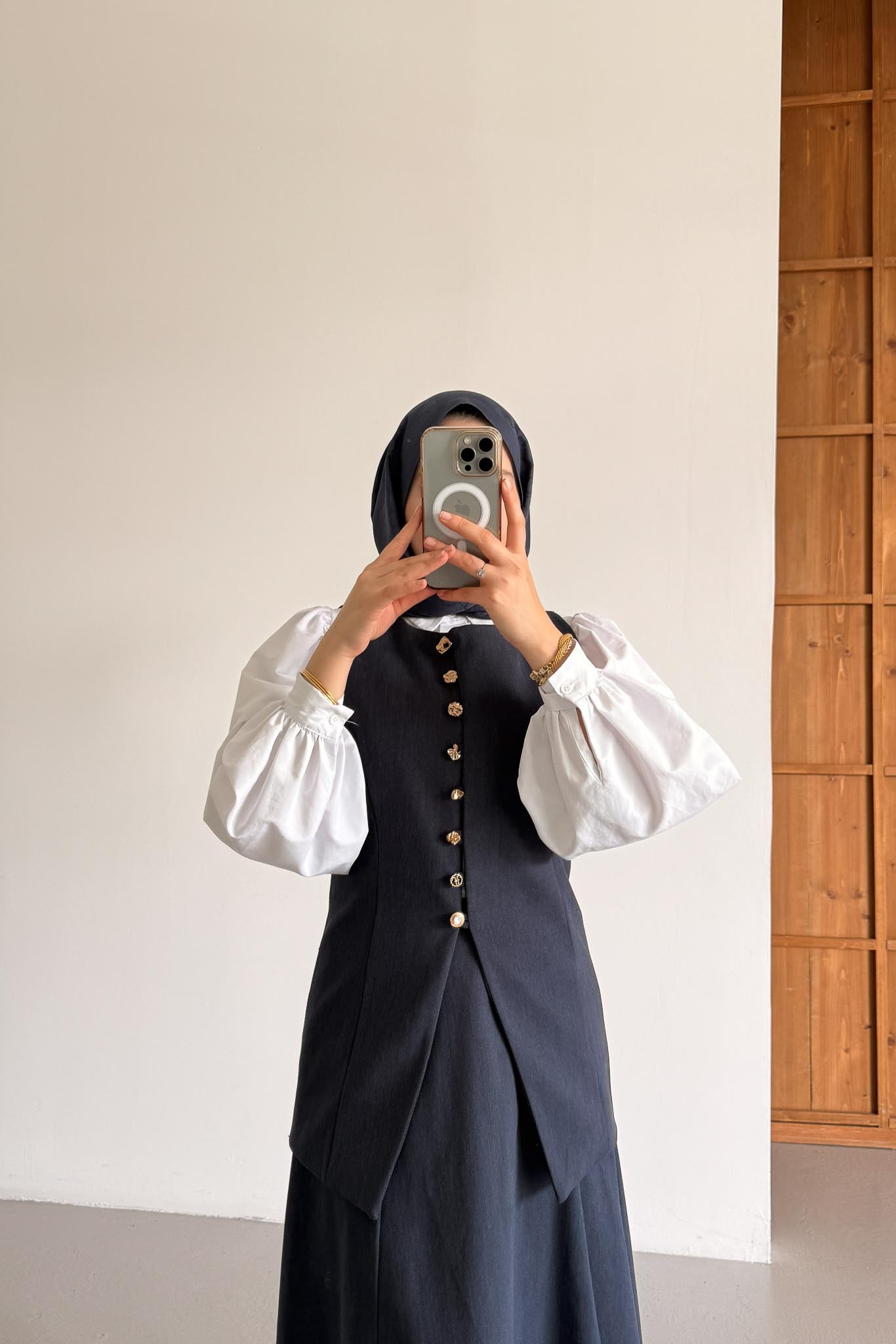 Yelek Boy Ortalama; 79 cm, Farklı Broş Düğmelidir.