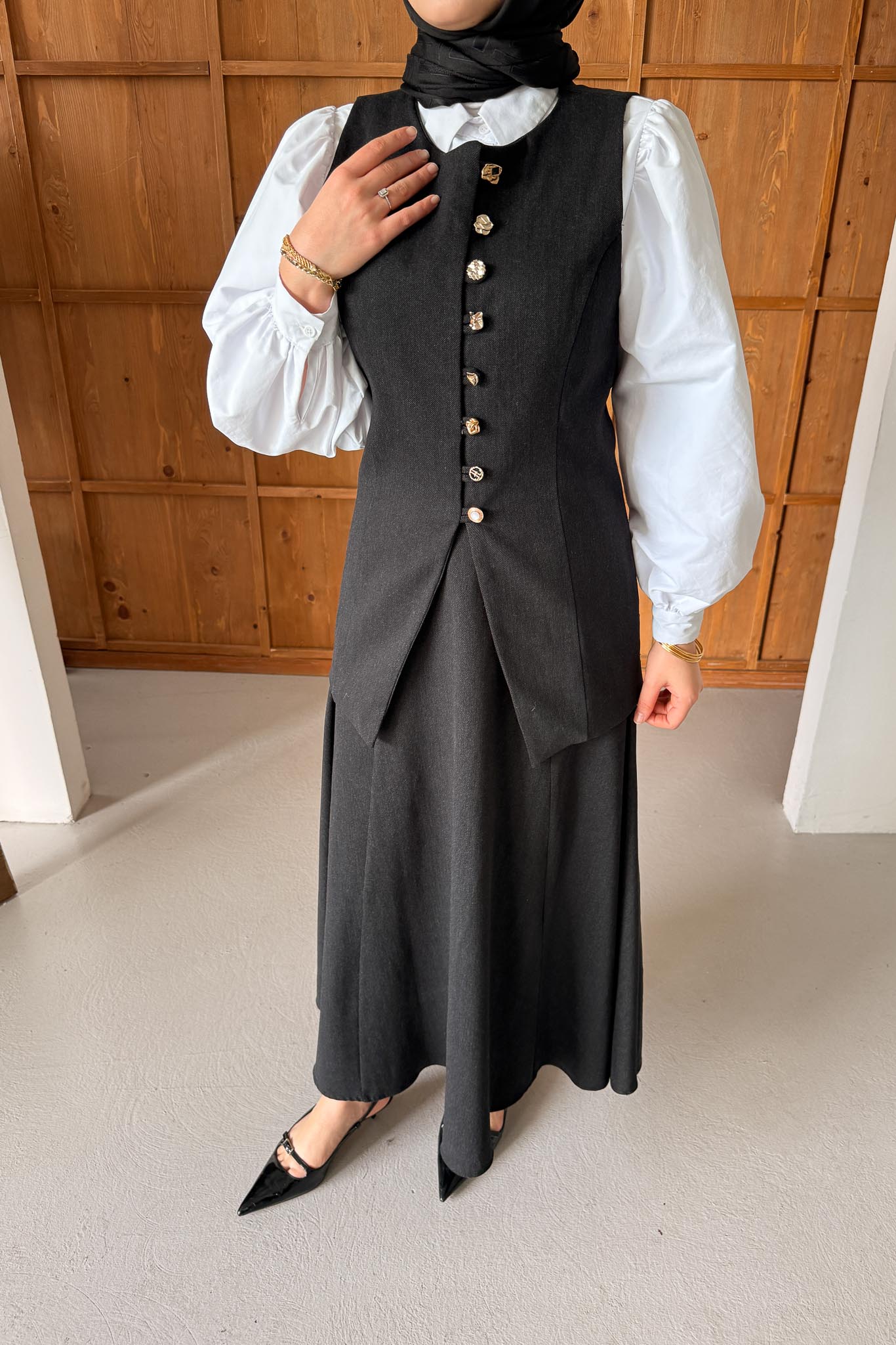 Yelek Boy Ortalama; 79 cm, Farklı Broş Düğmelidir.