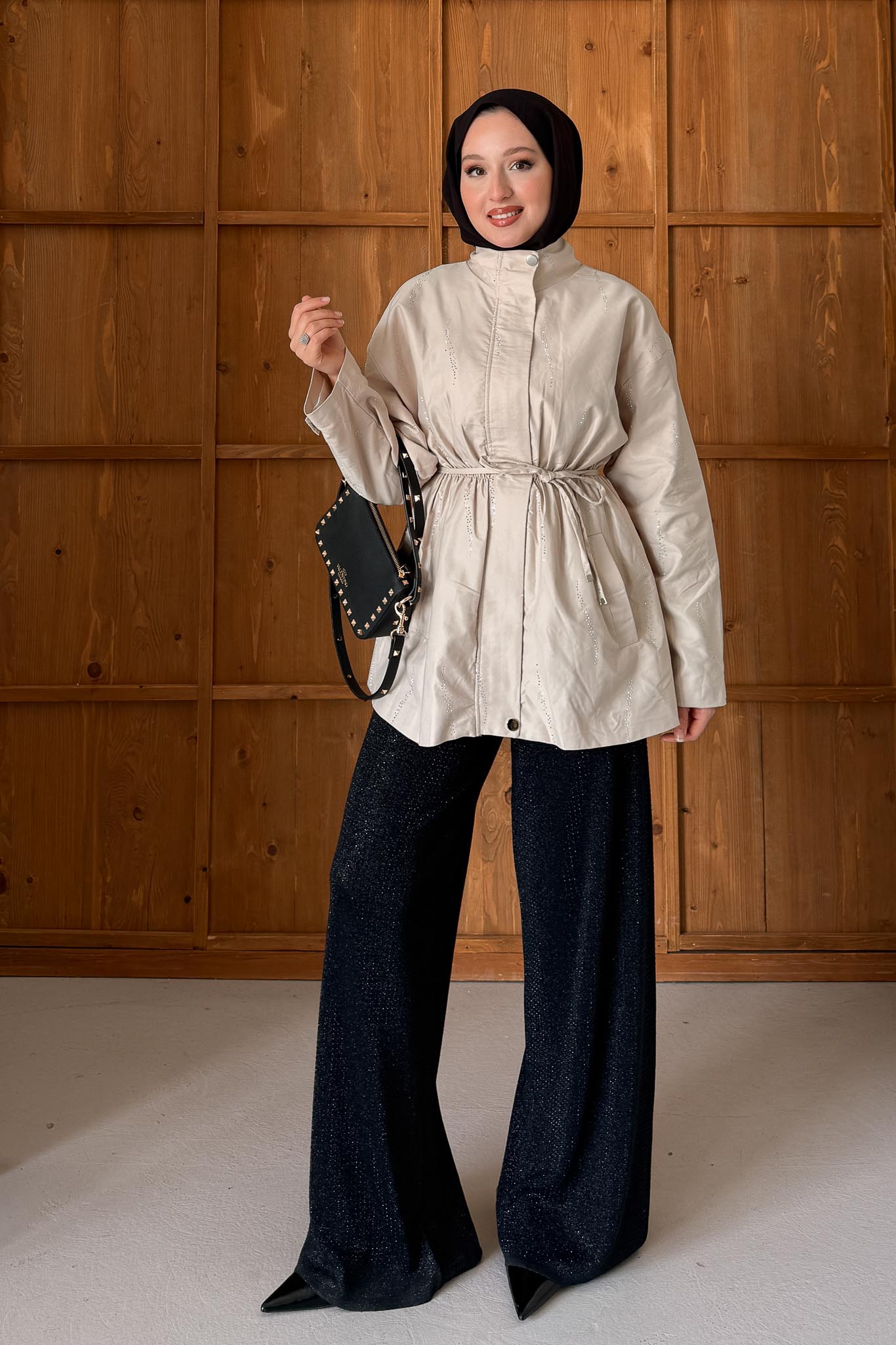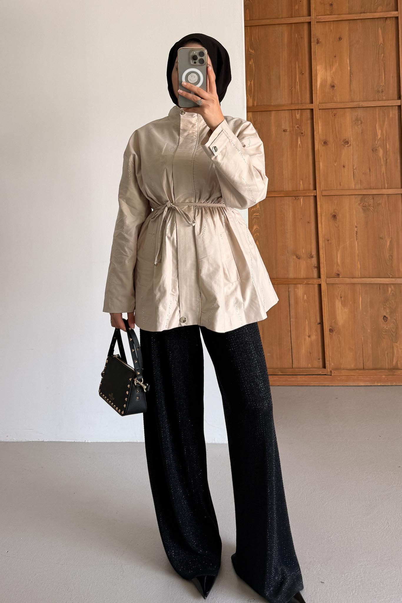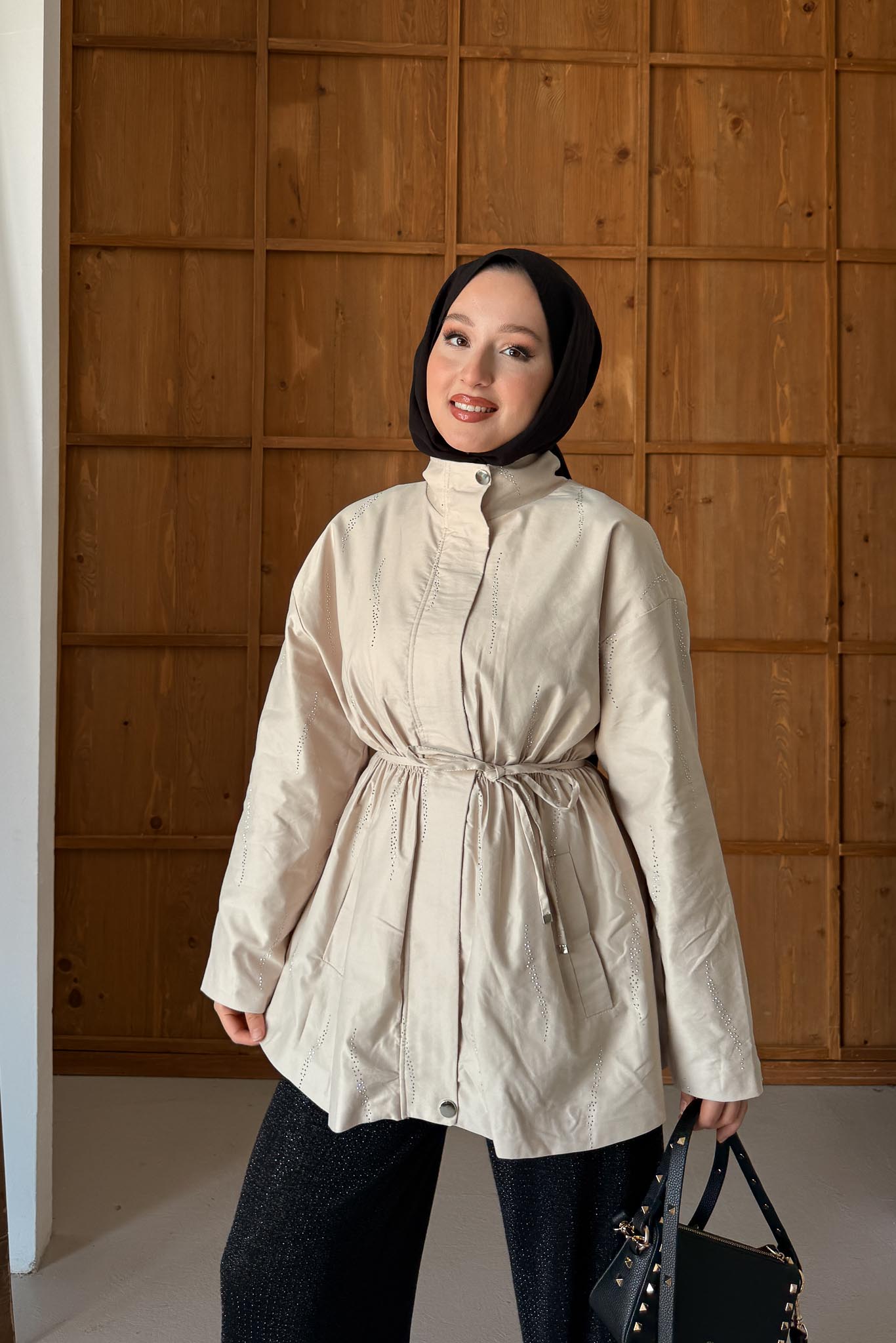 Çıtçıtlıdır, Taş işlemesi mevcuttur, beli büzgülü ve seyyar kuşaklıdır.
