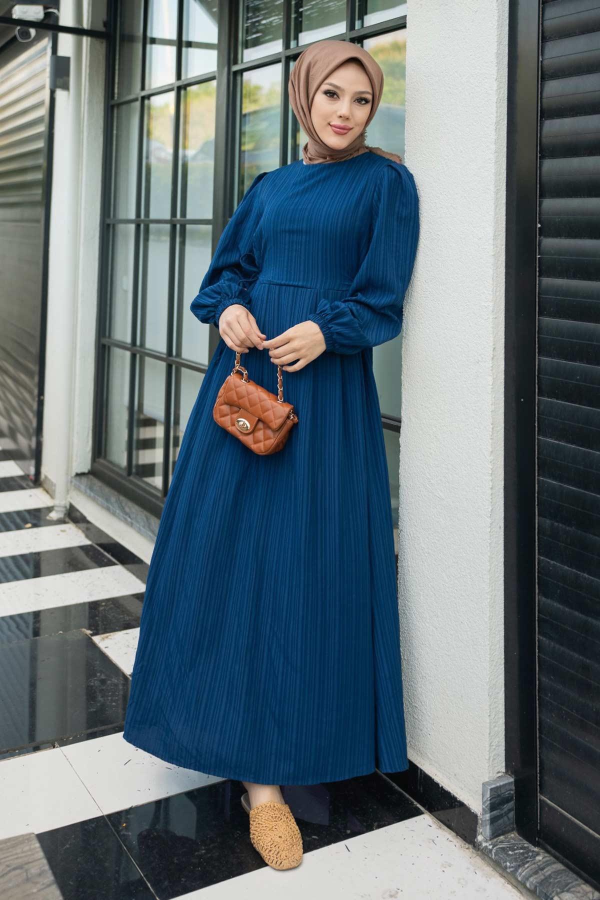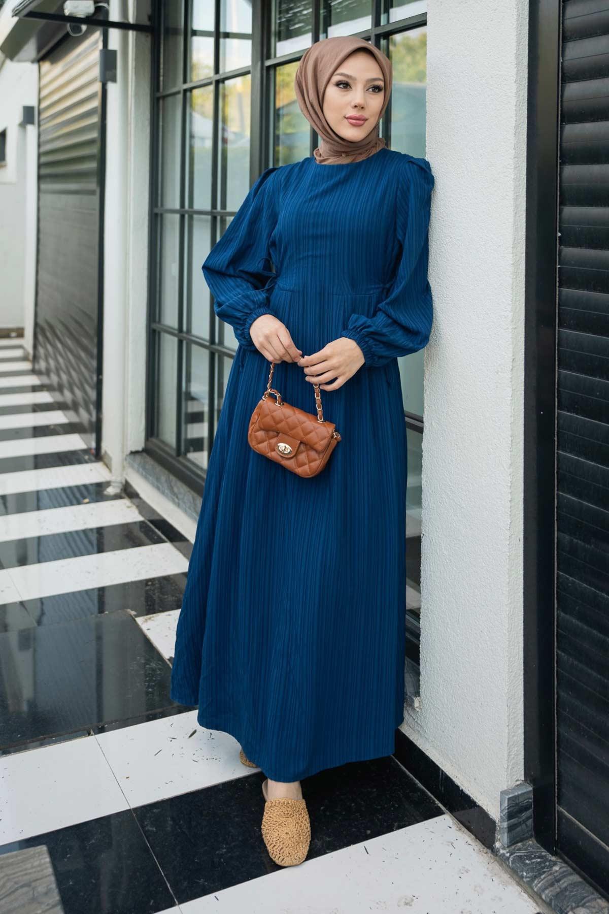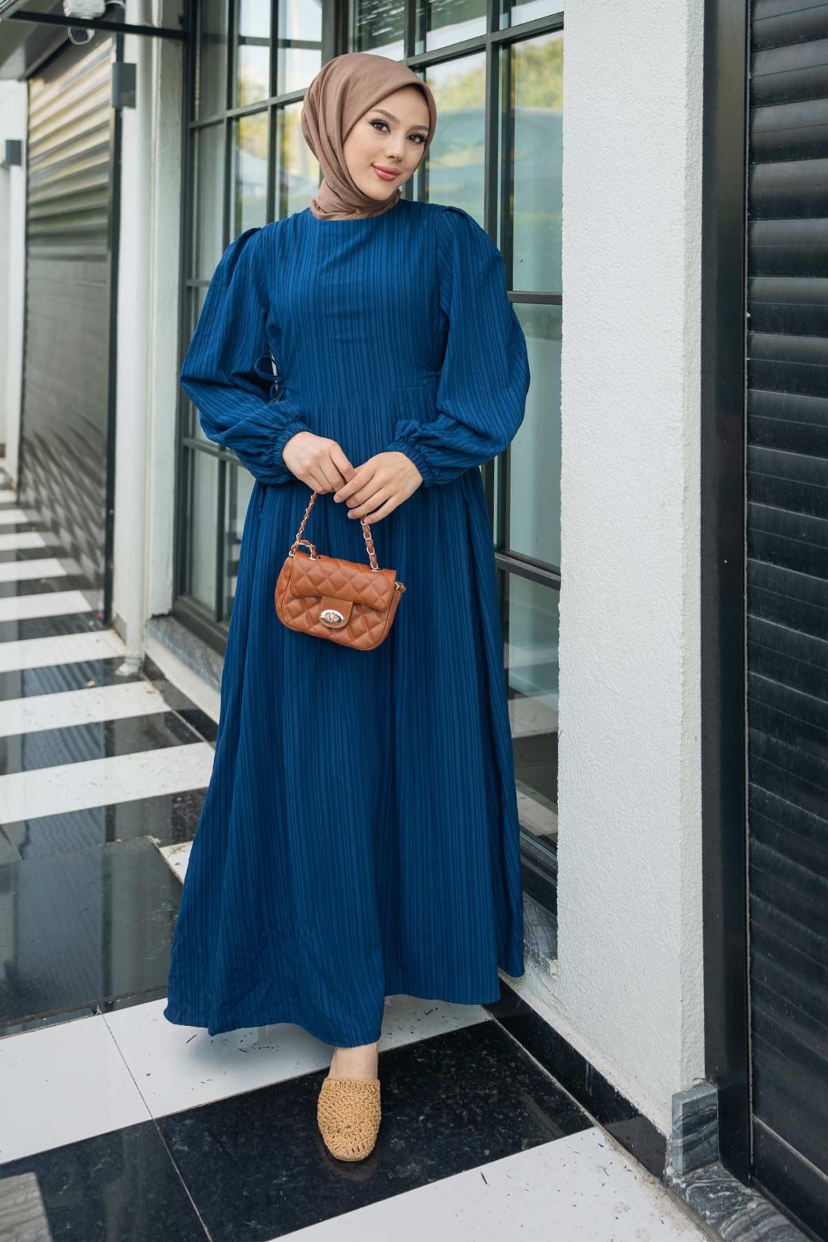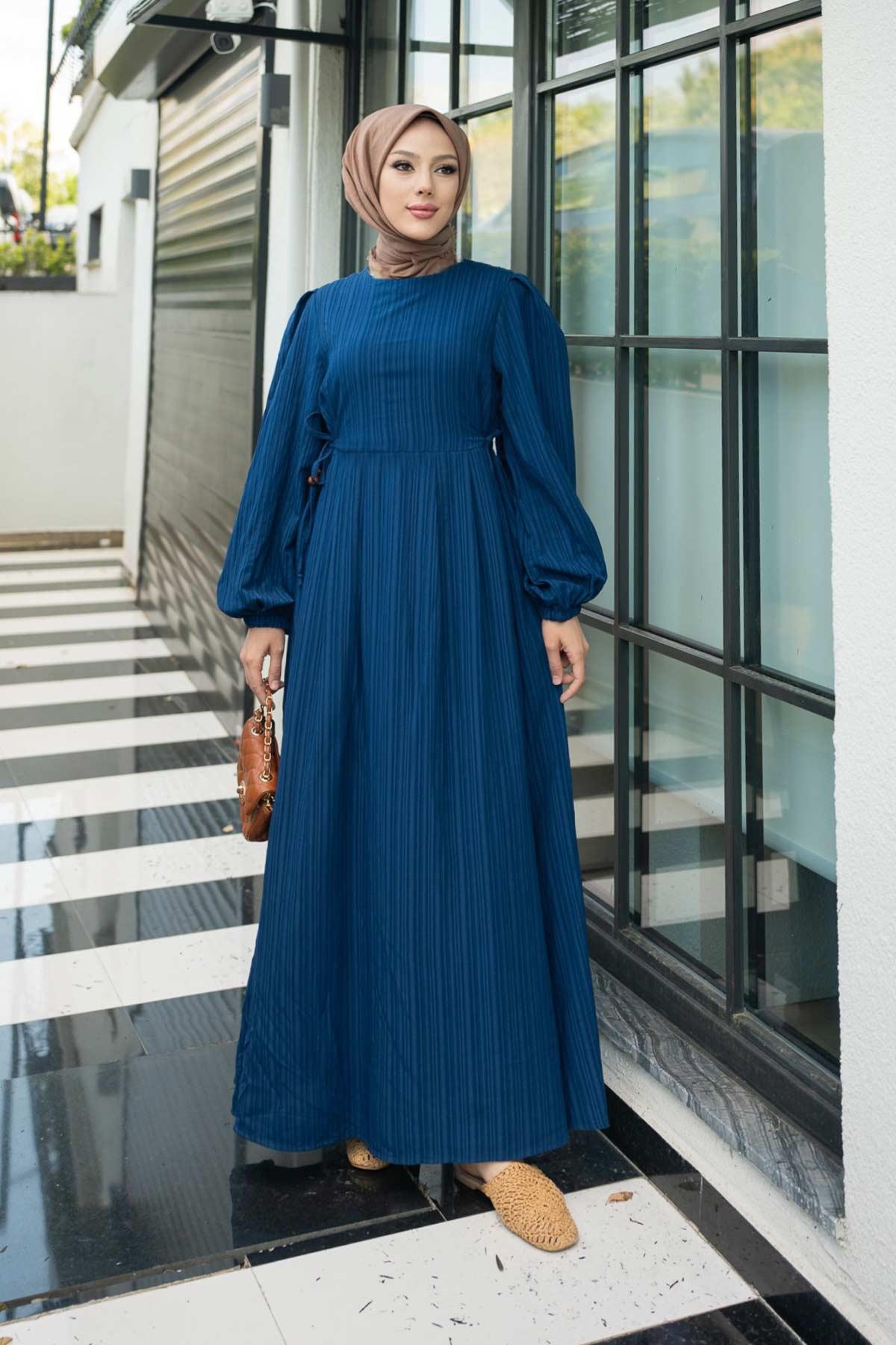Melodi Pamuk Keten Elbise Lacivert