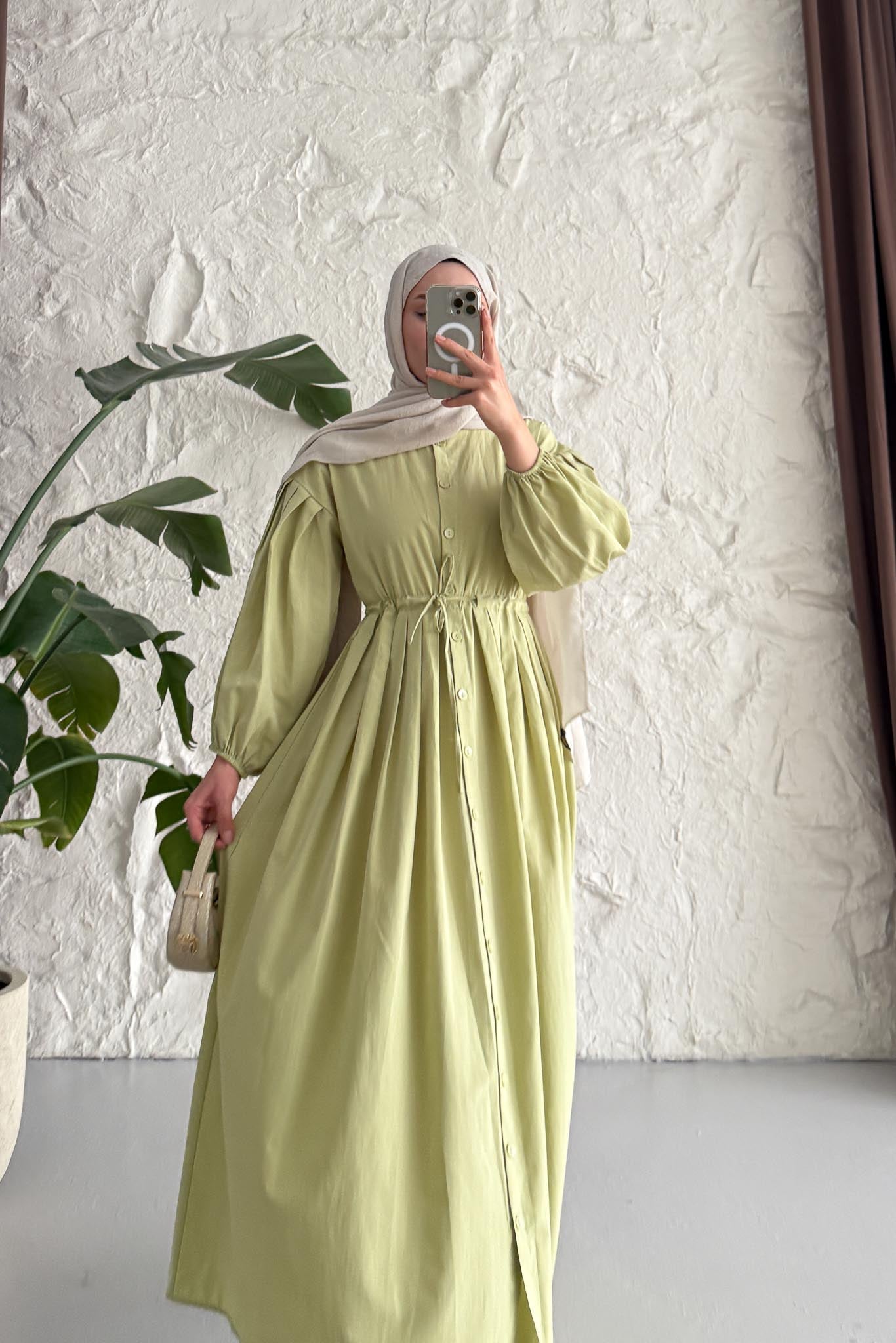 Mendy Pile Detaylı Elbise Yağ Yeşili