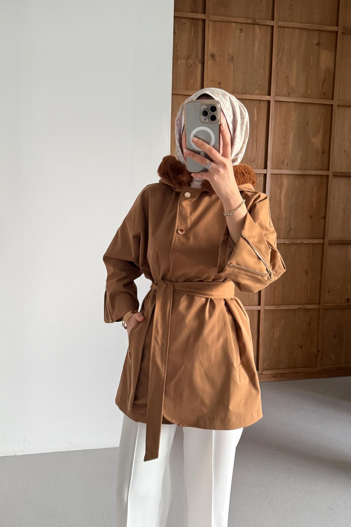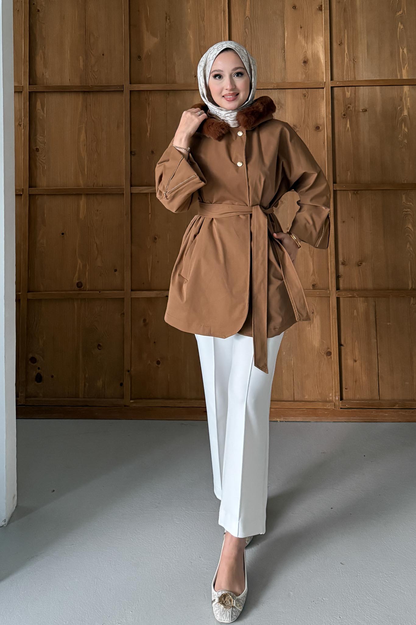 Boy ortalama 80 cm, Çıt çıt düğmelidir, seyyar kuşaklıdır, kol manşeti fermuarlıdır, tercihen badi ile giyilebilir. Astarlıdır.