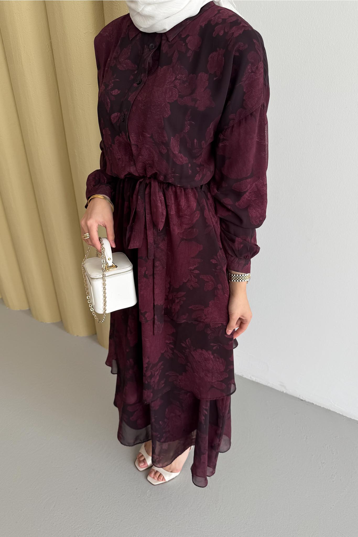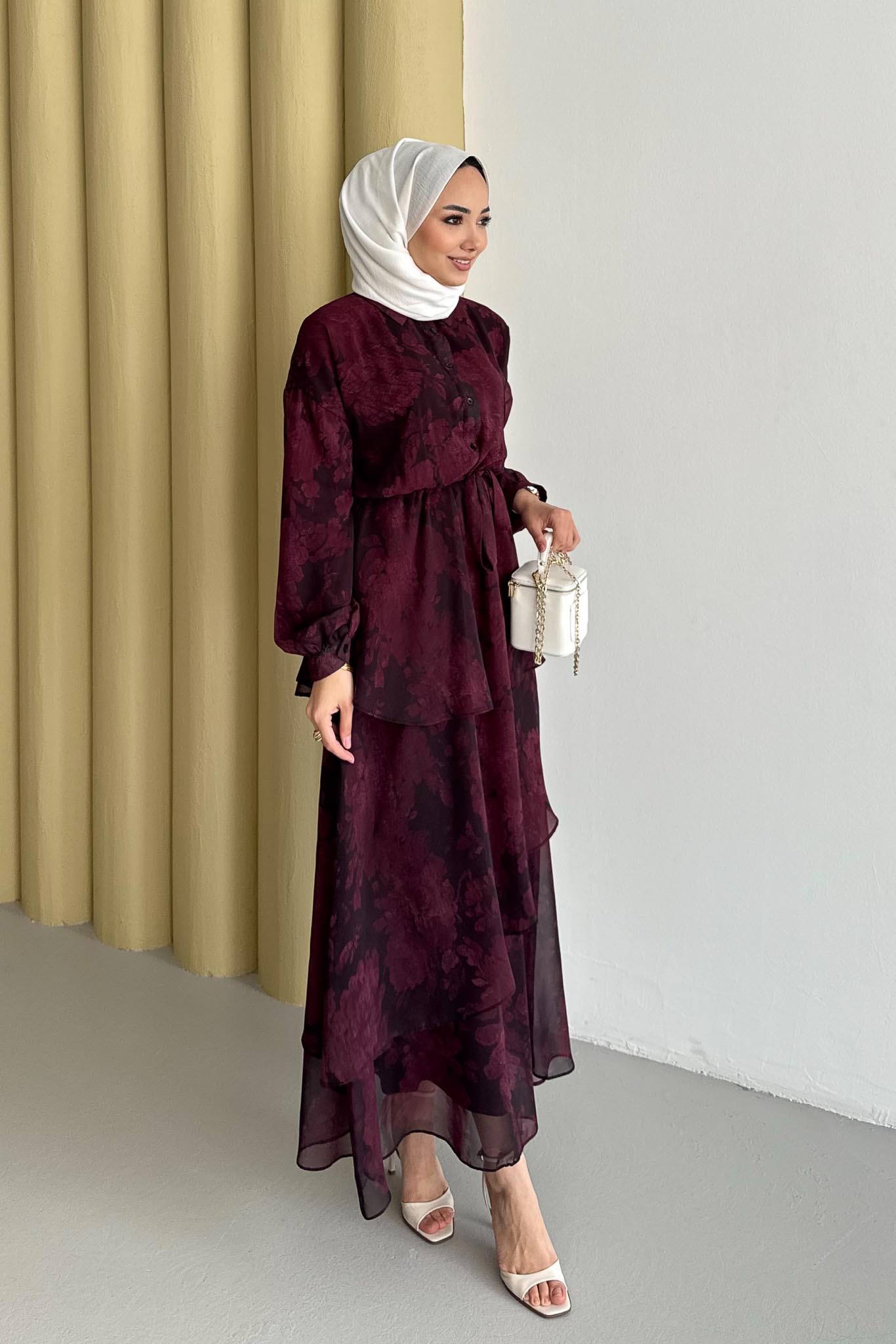 Nil Katlı Elbise Bordo
