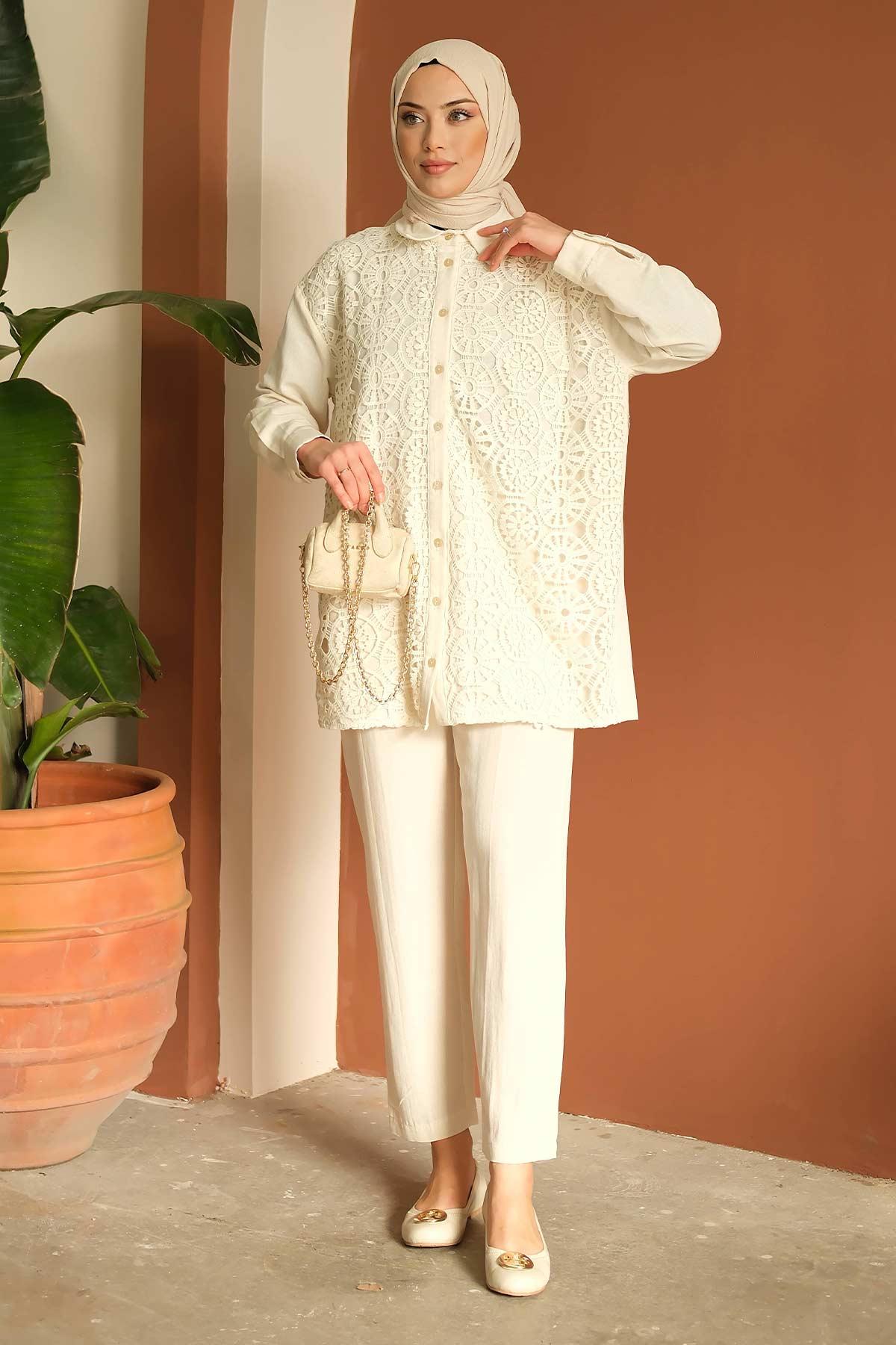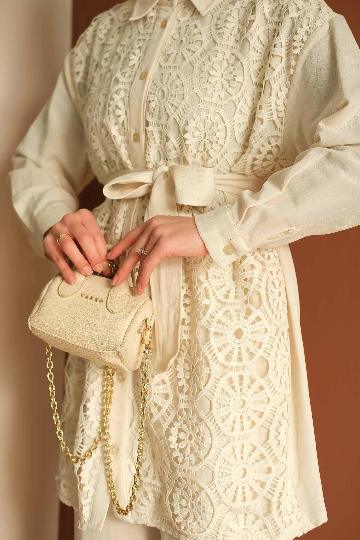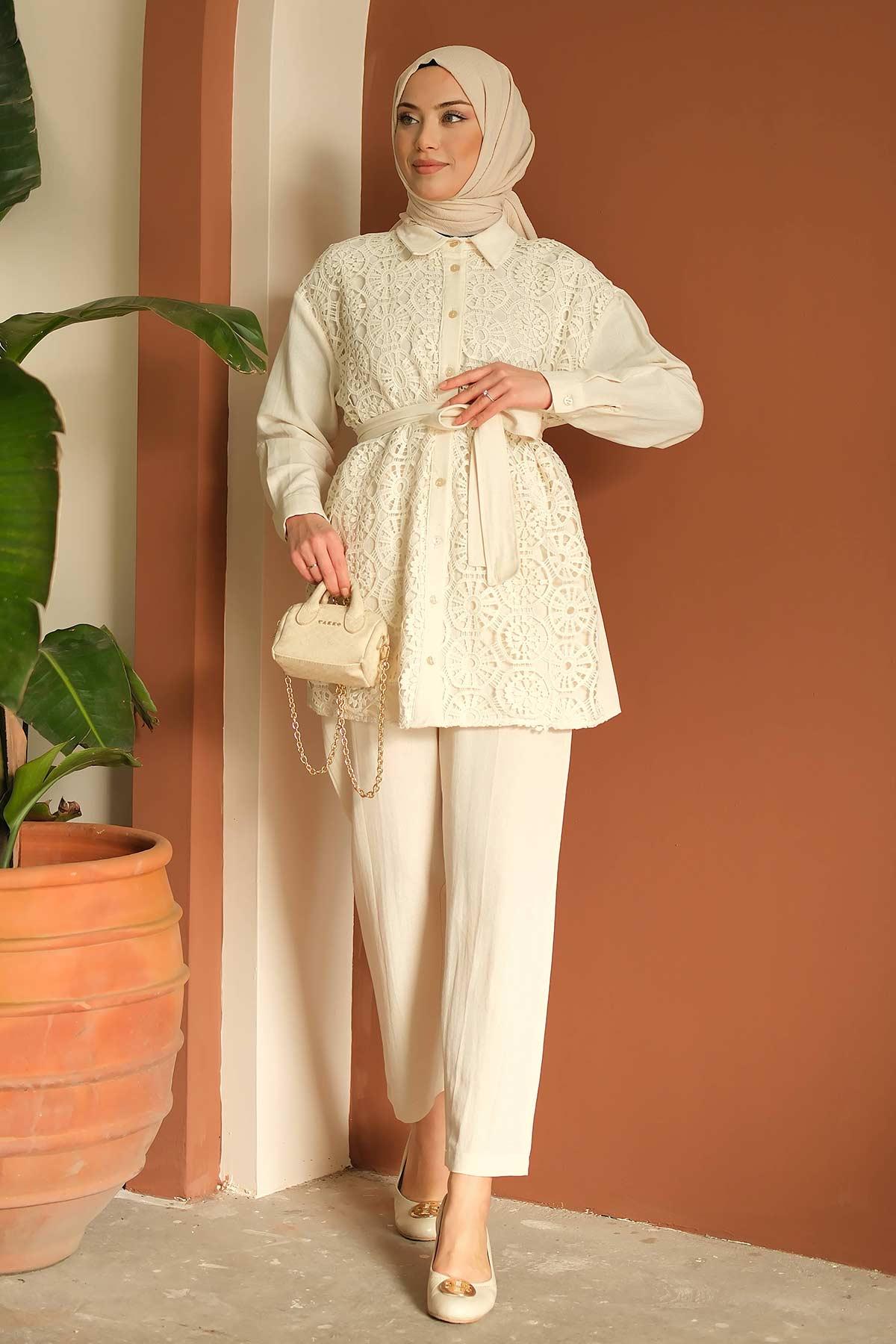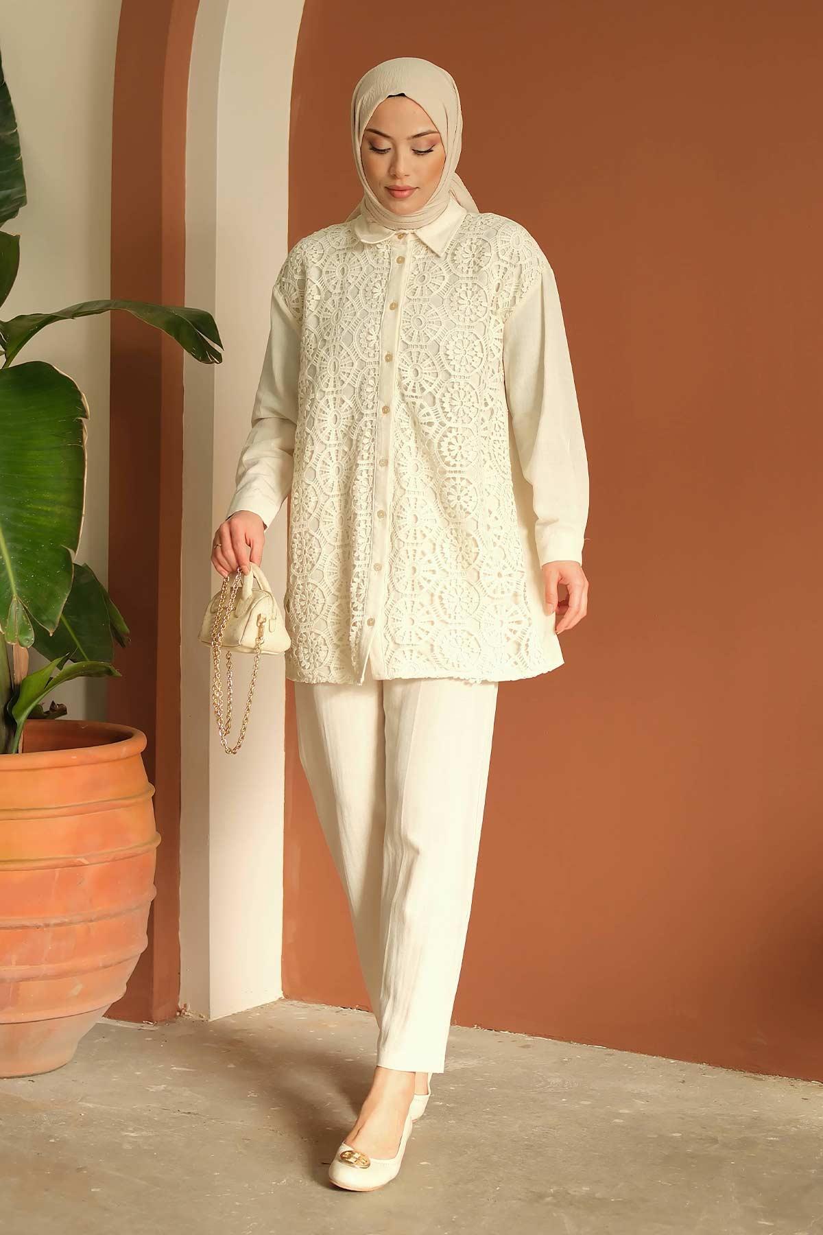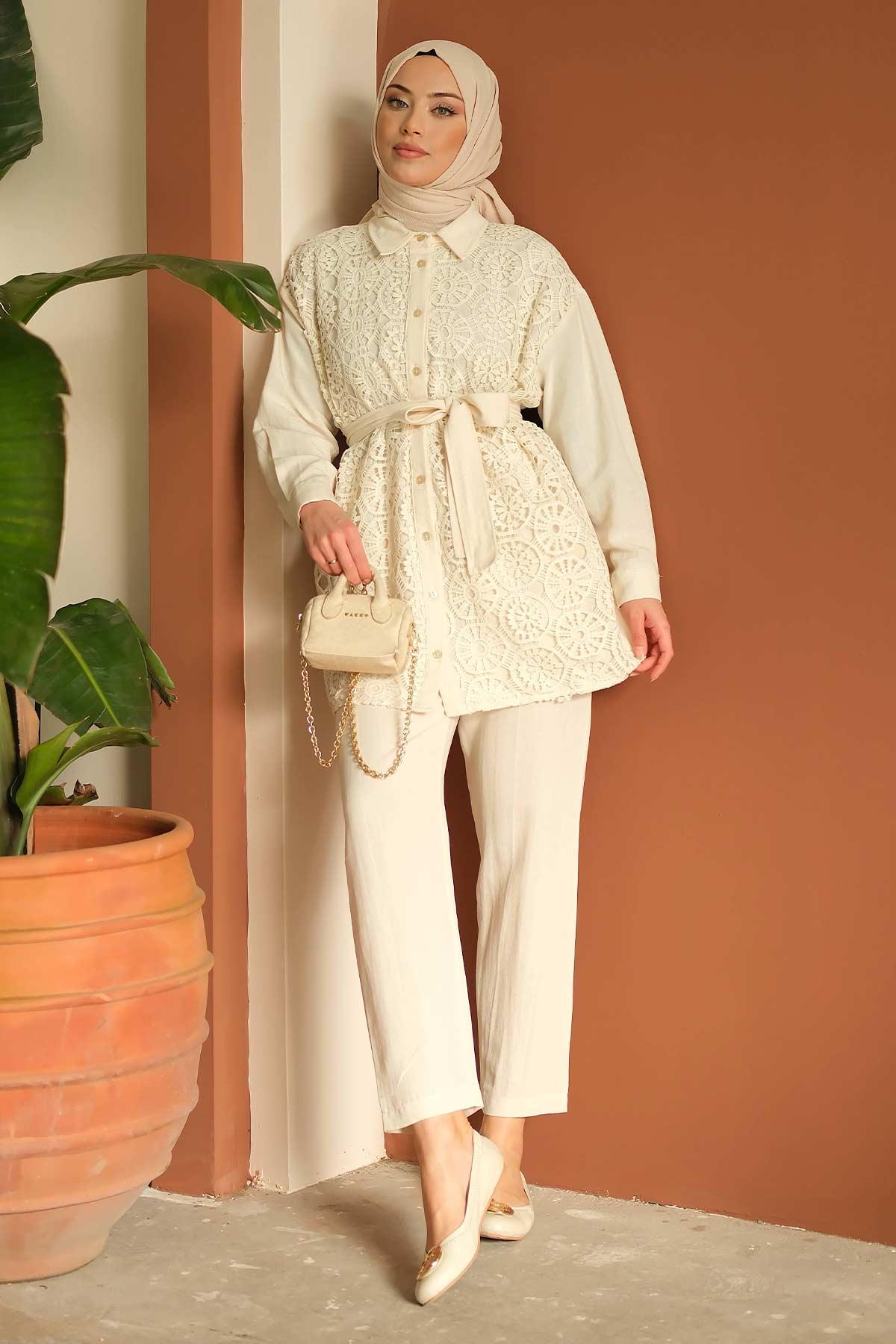 | Ham Keten Kumaştır, Tunik Ön Kısmı ekstra dantel motiflidir. Tunik Boy; 79 cm, Seyyar kuşaklıdır Pantolon Boy 98 cm, beli lastiklidir.