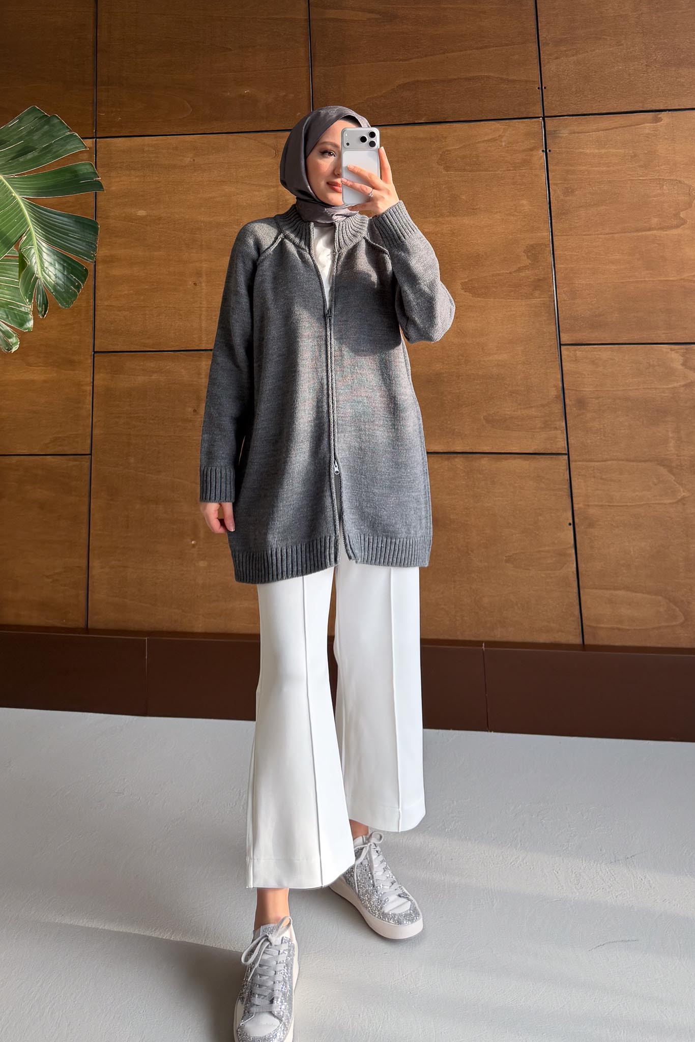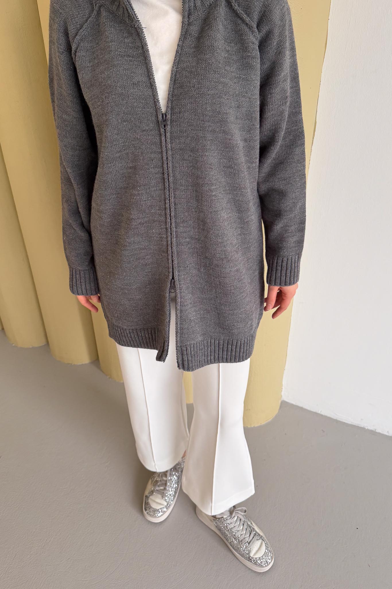 Oversize Fermuarlı Hırka Antrasit