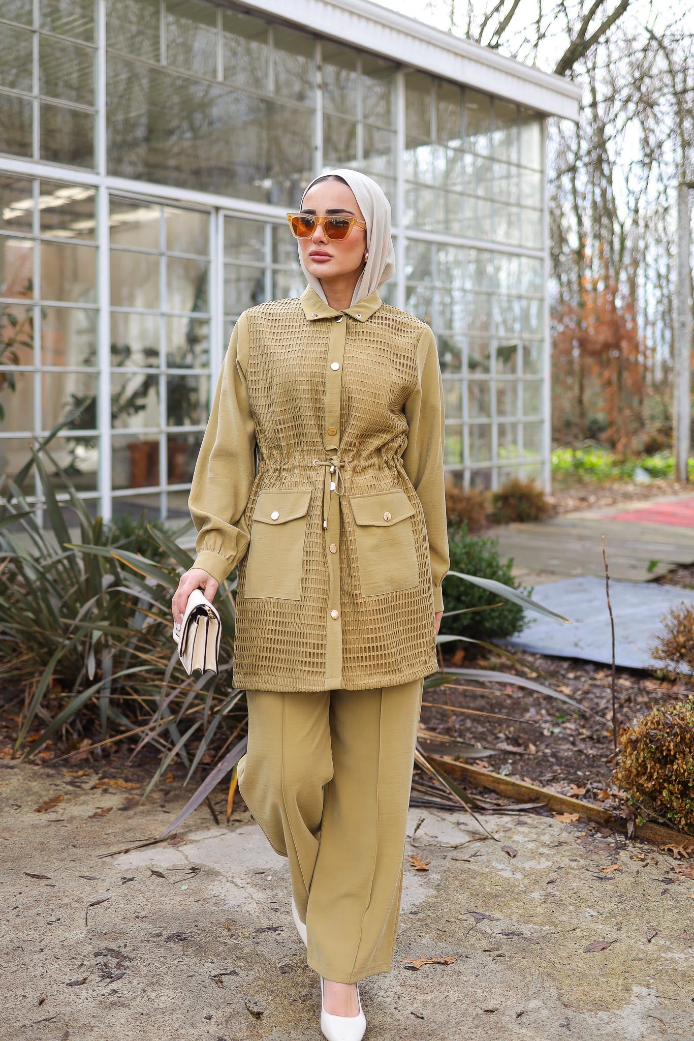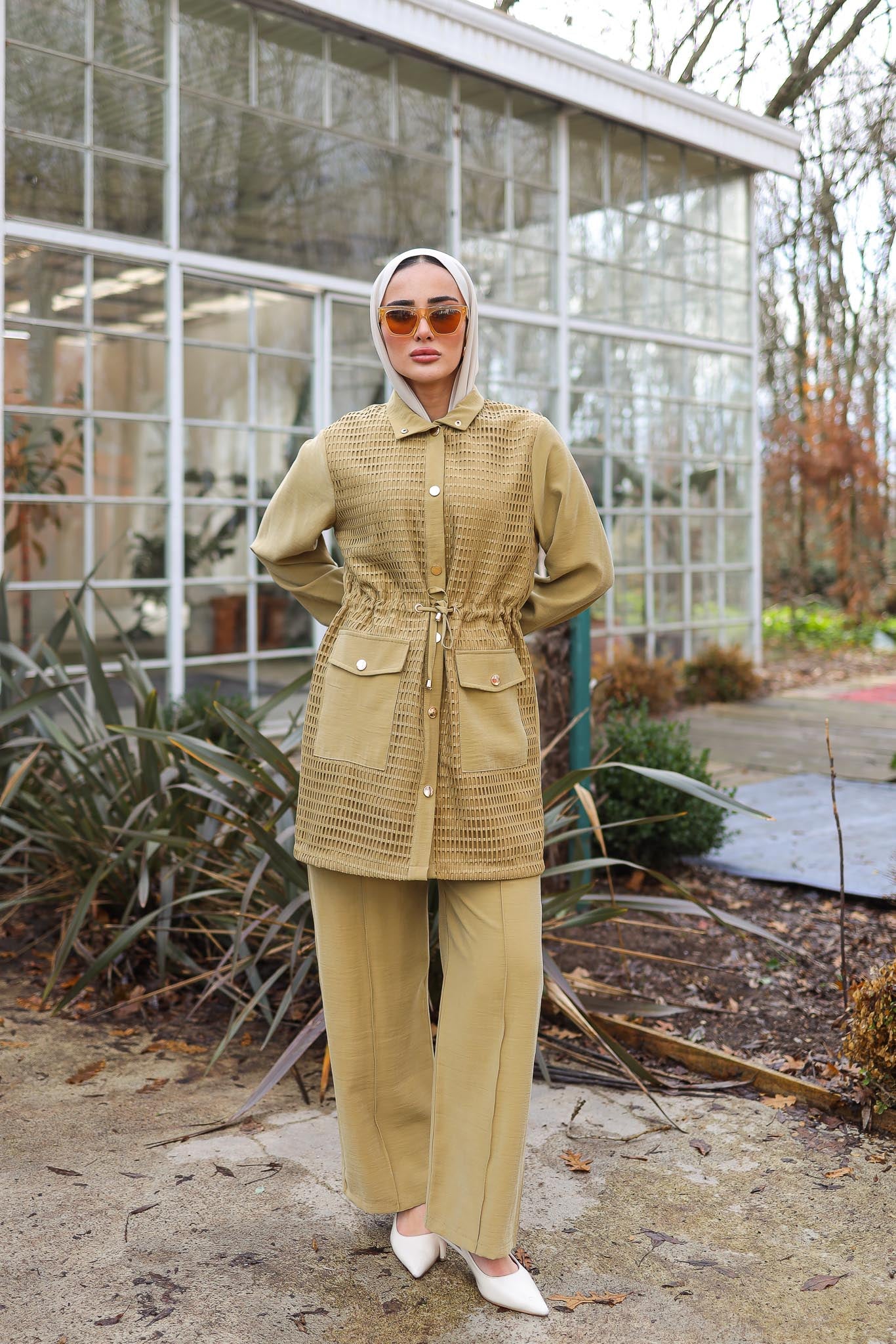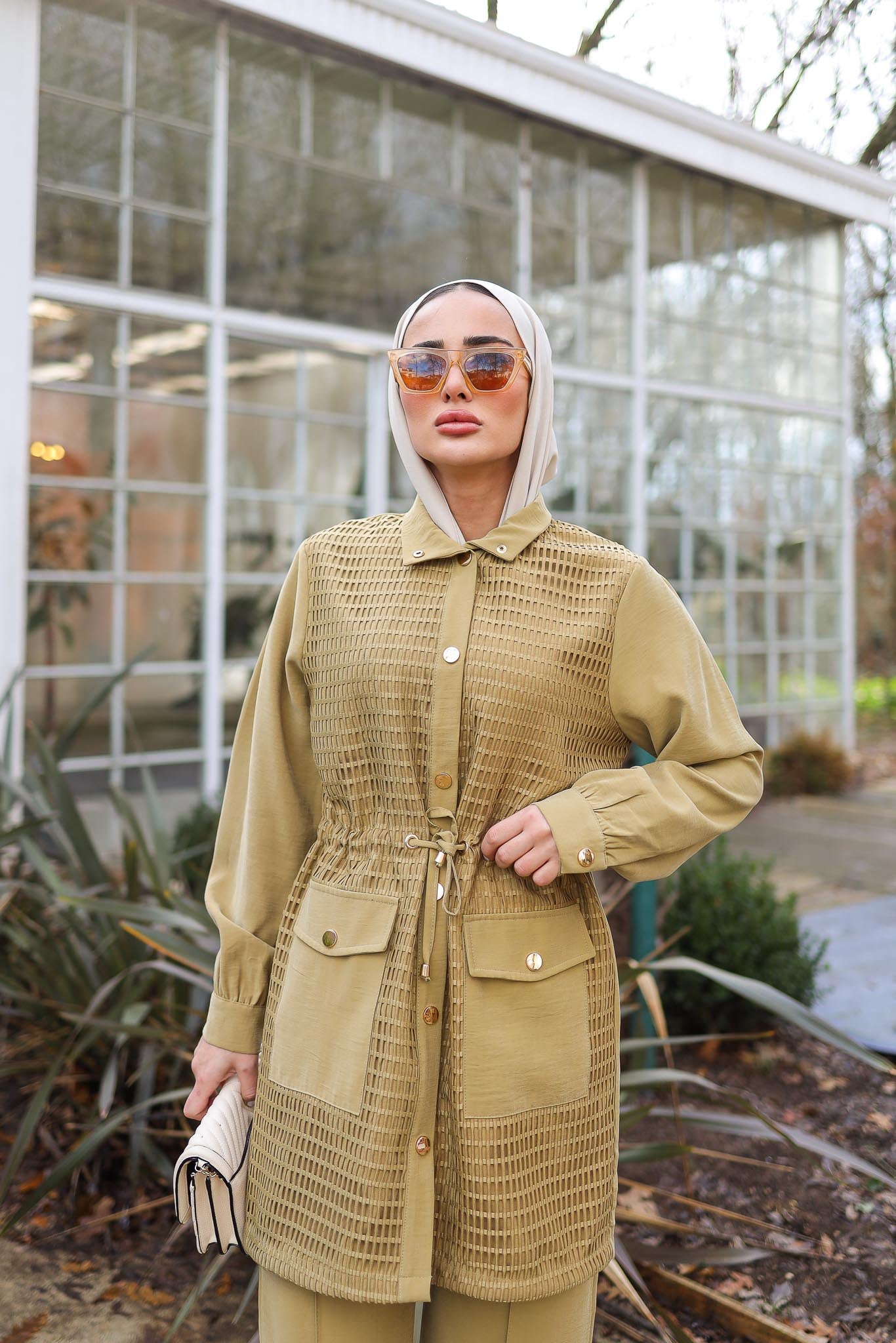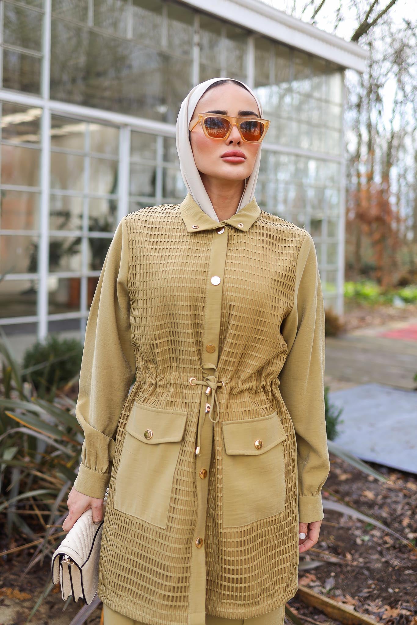 Tunik ceplidir, ikili düğmelidir, ortalama 55 cm, Pelerin detaylıdır,