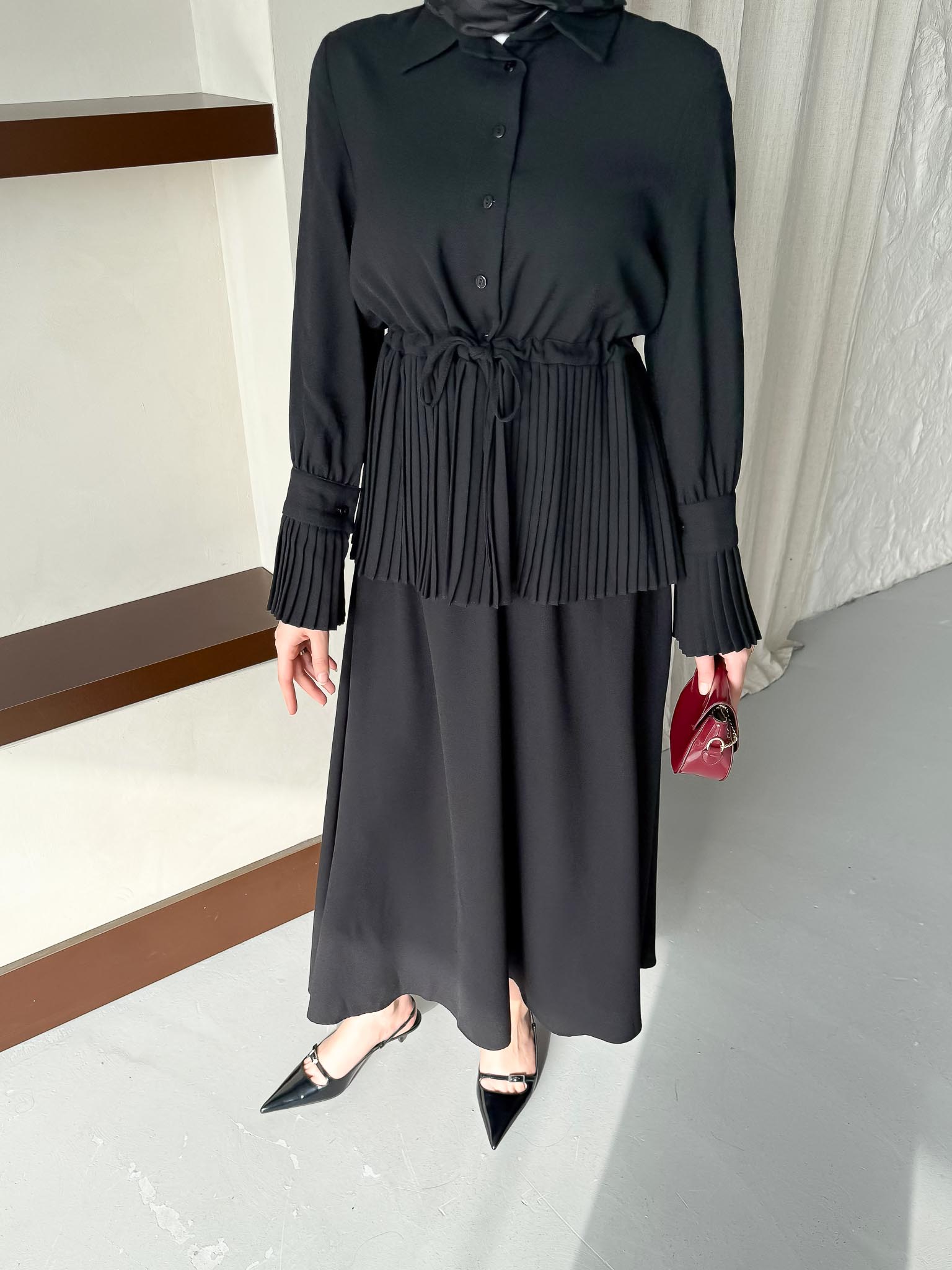 Tunik Ortalama 65 cmdir, Plise detaylıdır İnce Biye Kuşaklıdır.