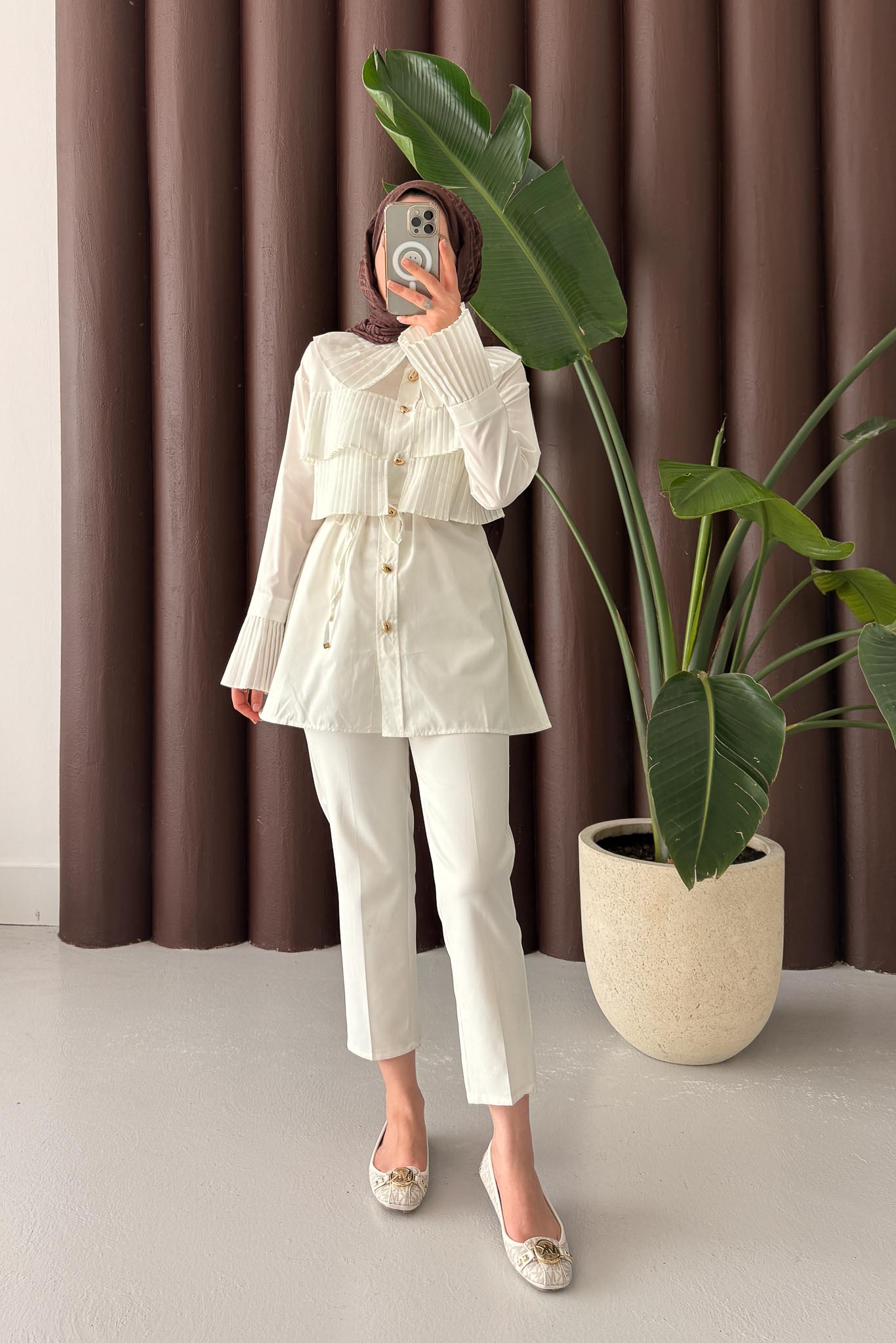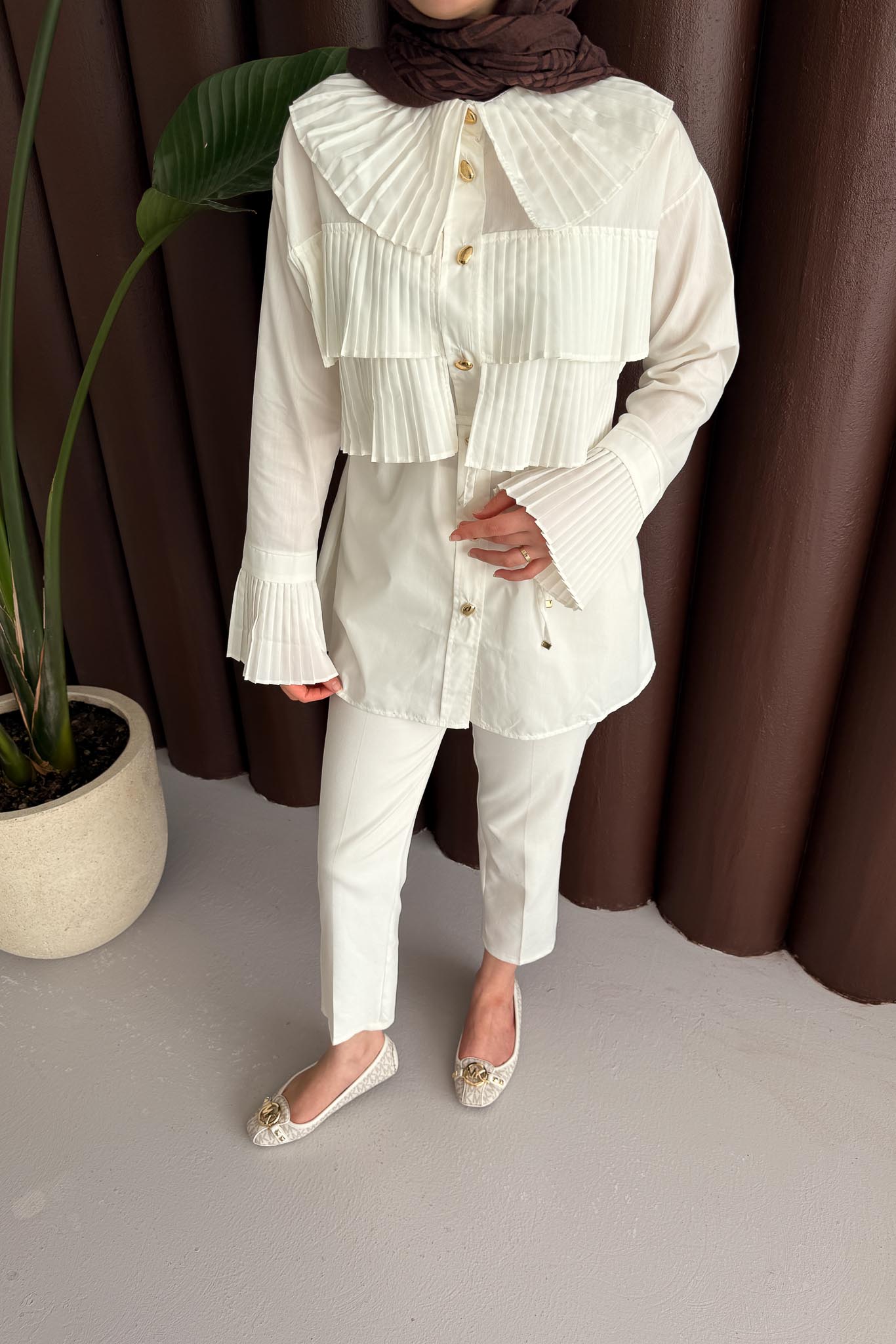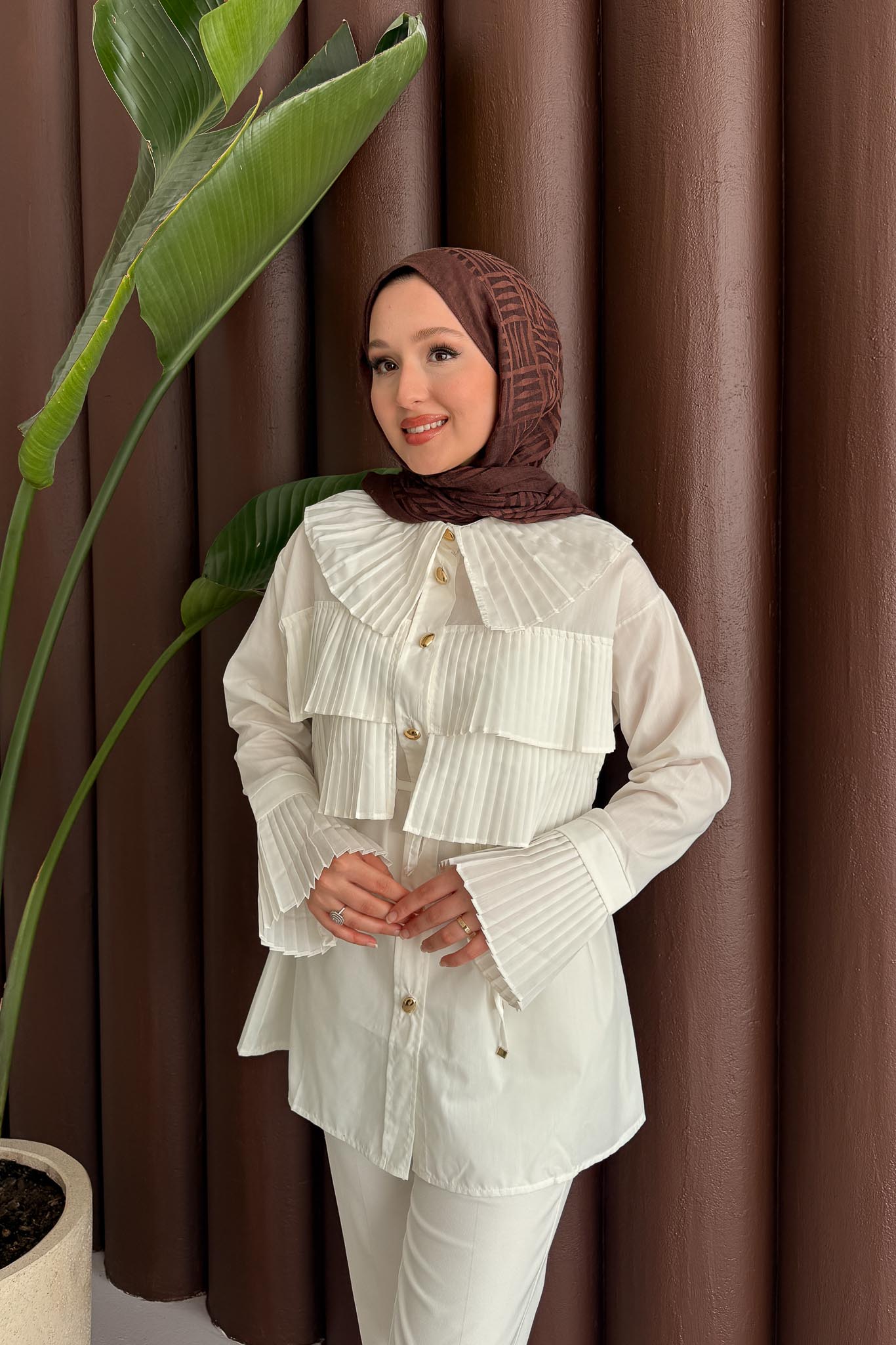 Piliseli Gömlek Ekru