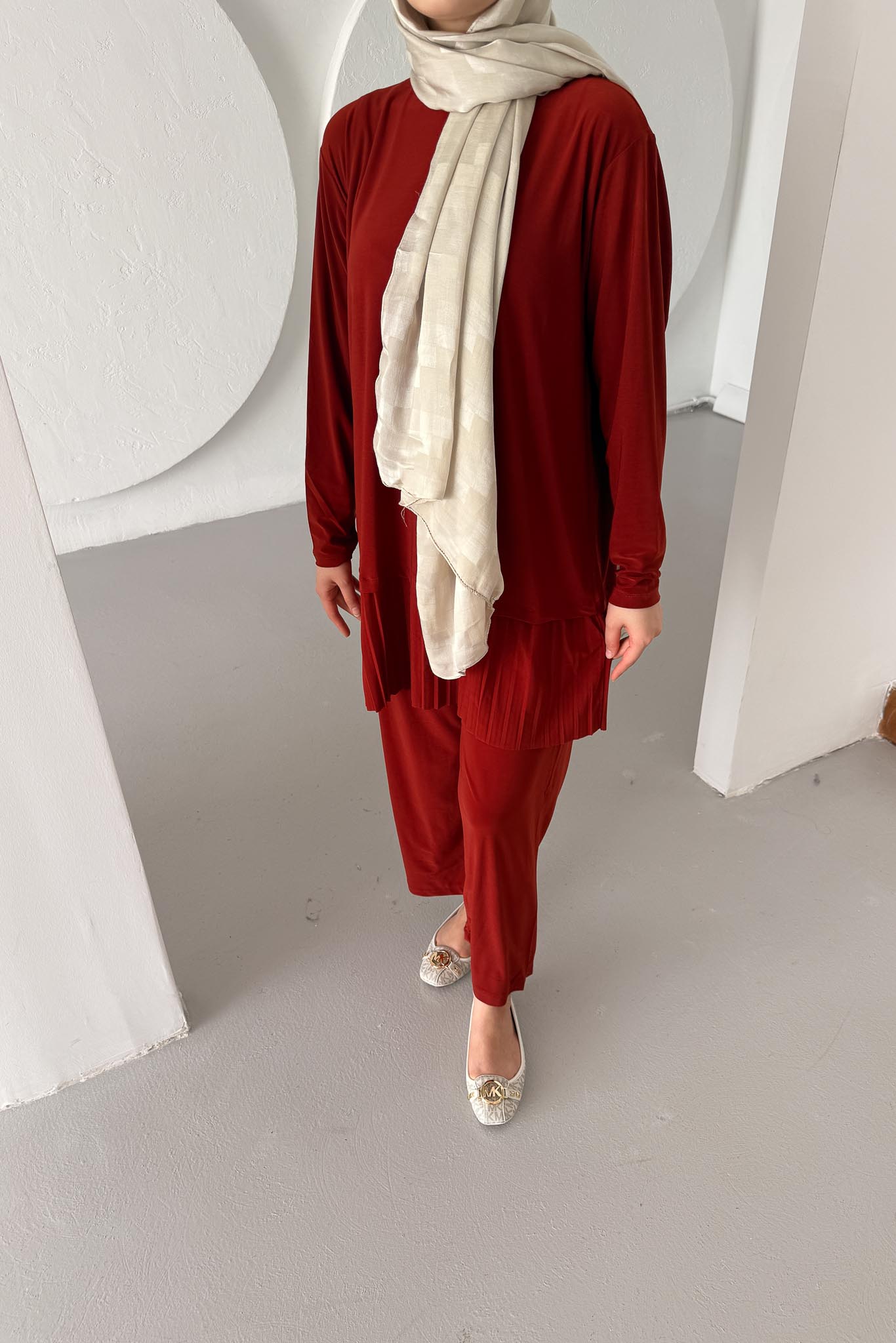 Tunik 76 cm dir, Alt kısmı Piliselidir, Pantolon 98 cm dir rahattır.