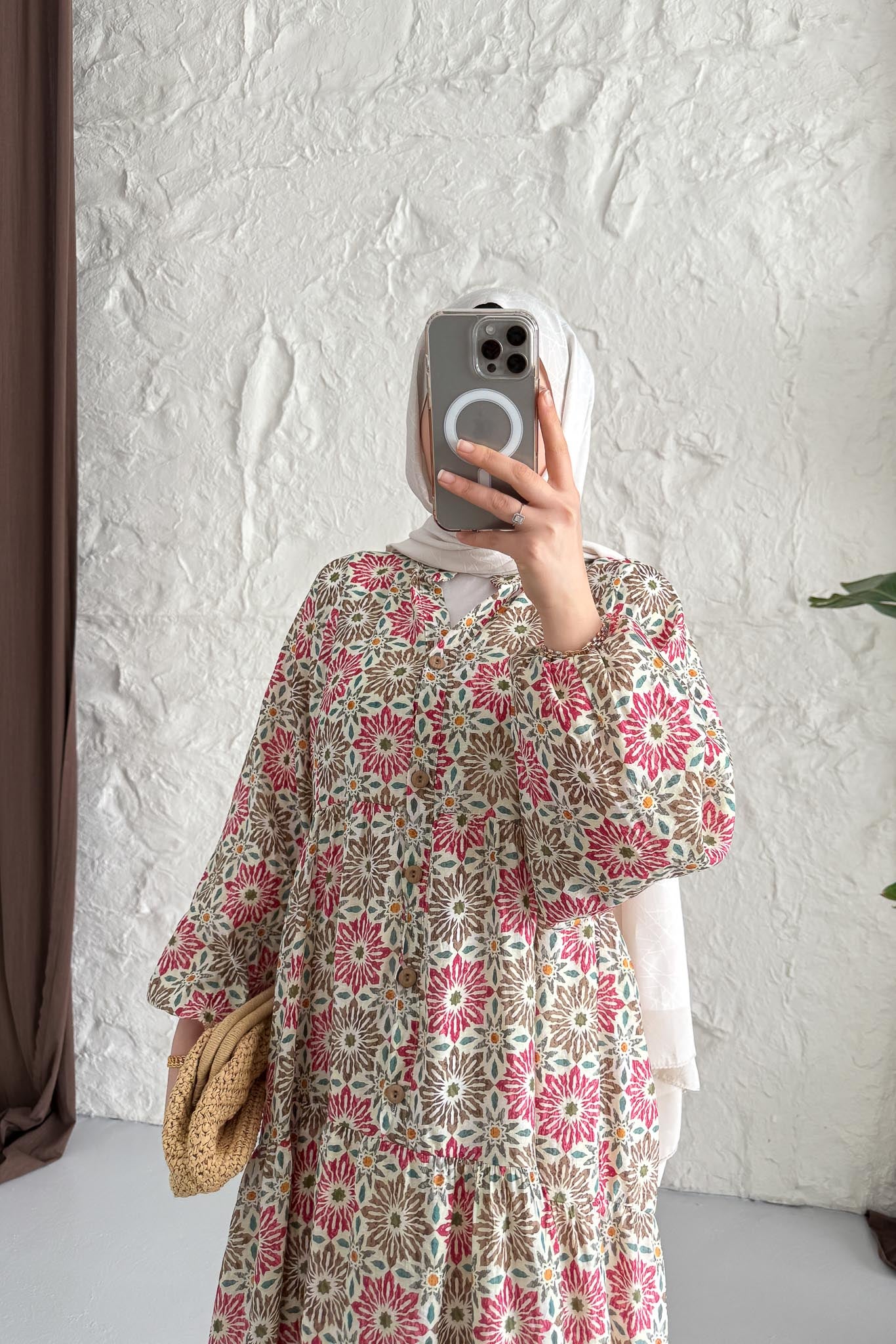 Ön kısımda yarım düğmelidir, oldukça rahat kalıptadır, efil efil kumaşlıdır, balon kolludur. terletmez ve ütü gerektirmez.