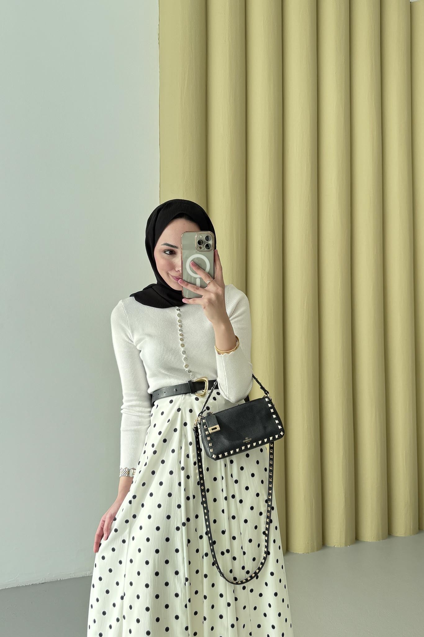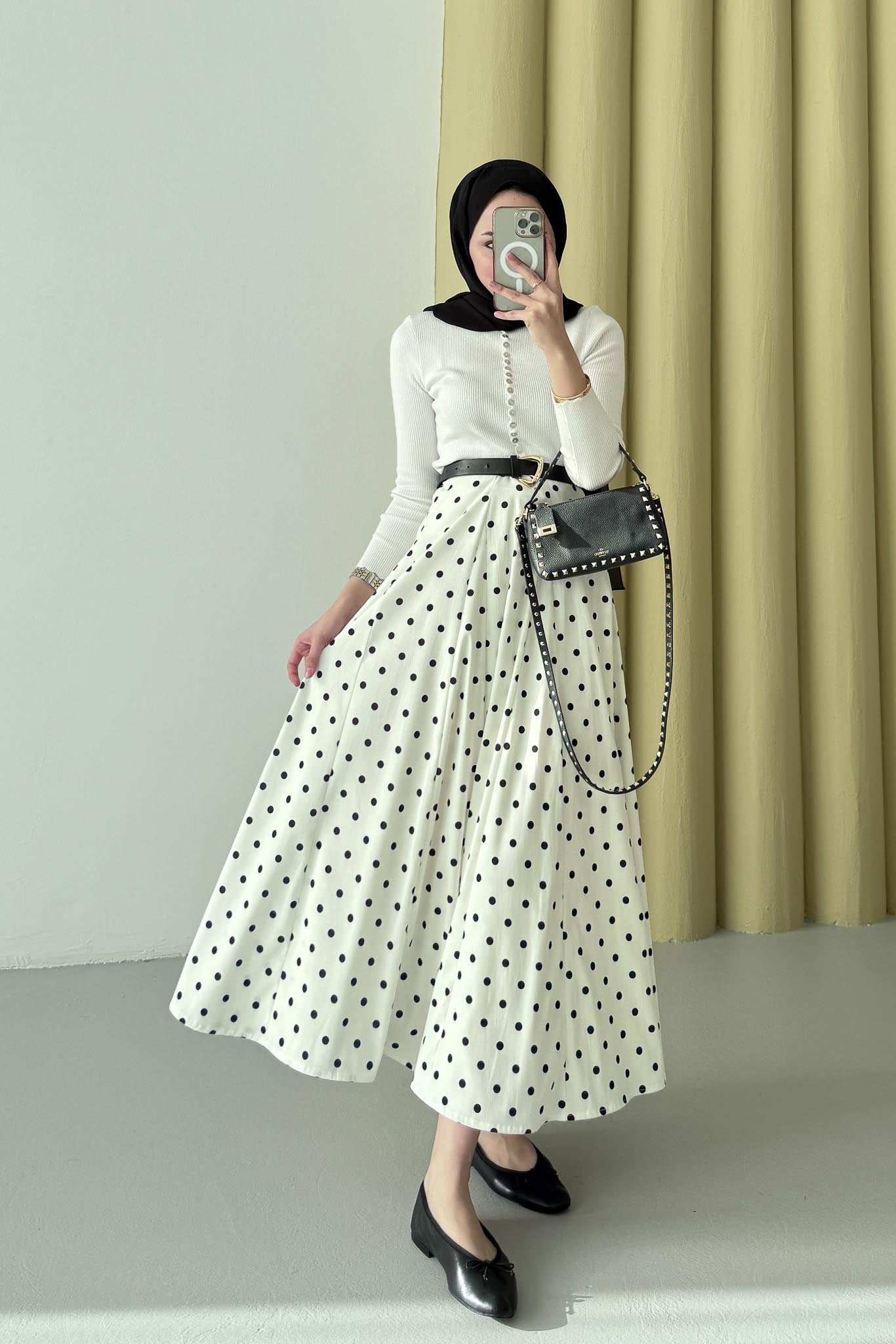 Etek Uzunluk : 94 cm, Beli Fermuarlıdır, Kloş formdadır.