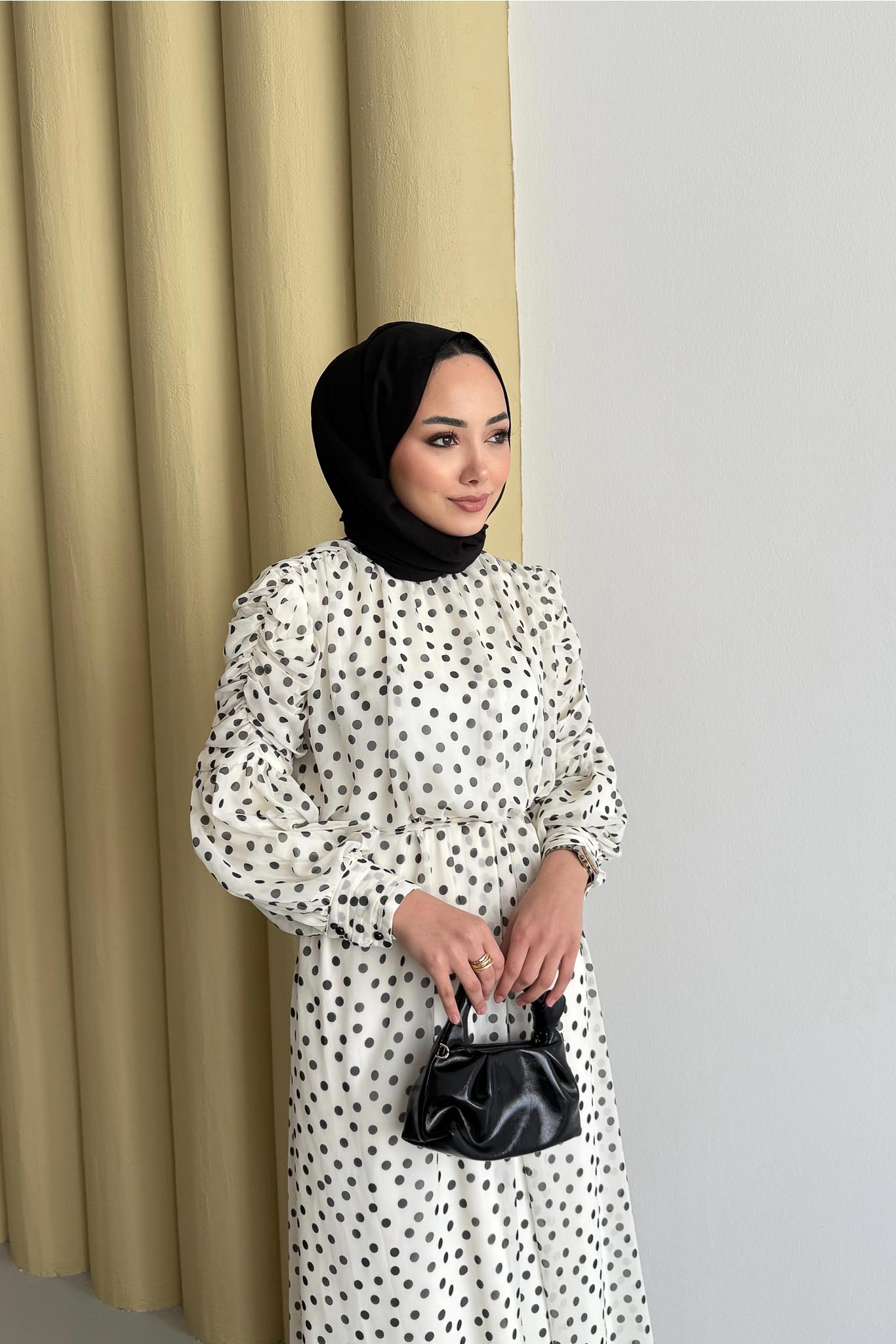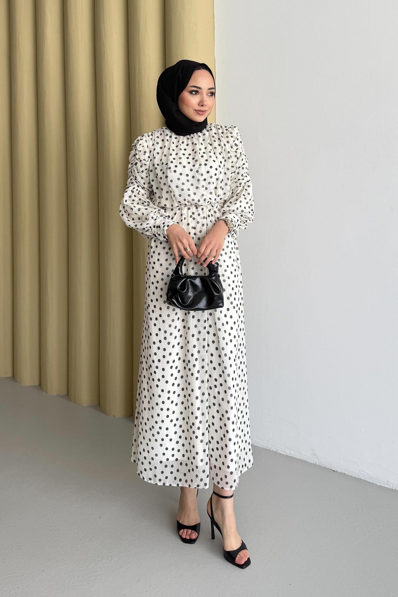 Puantiye Elbise Ekru