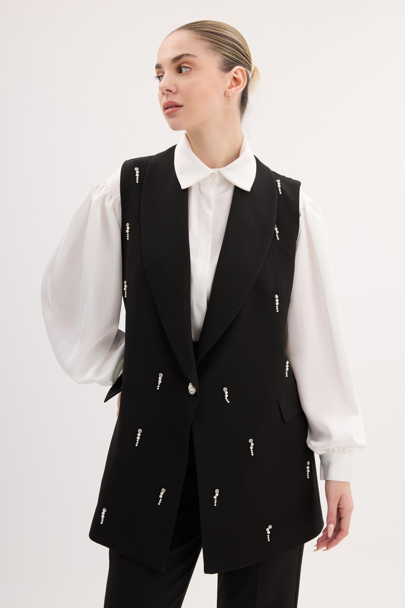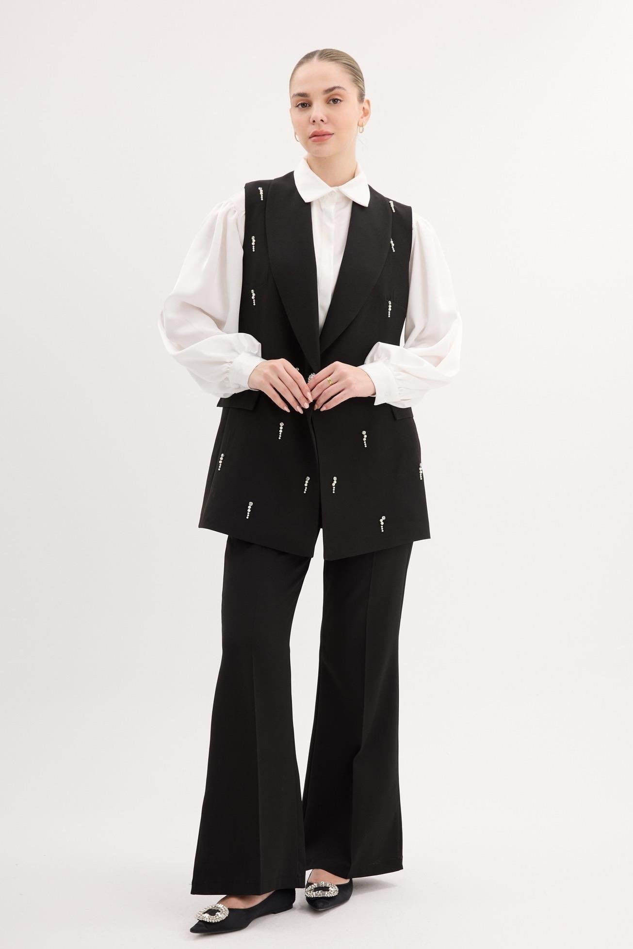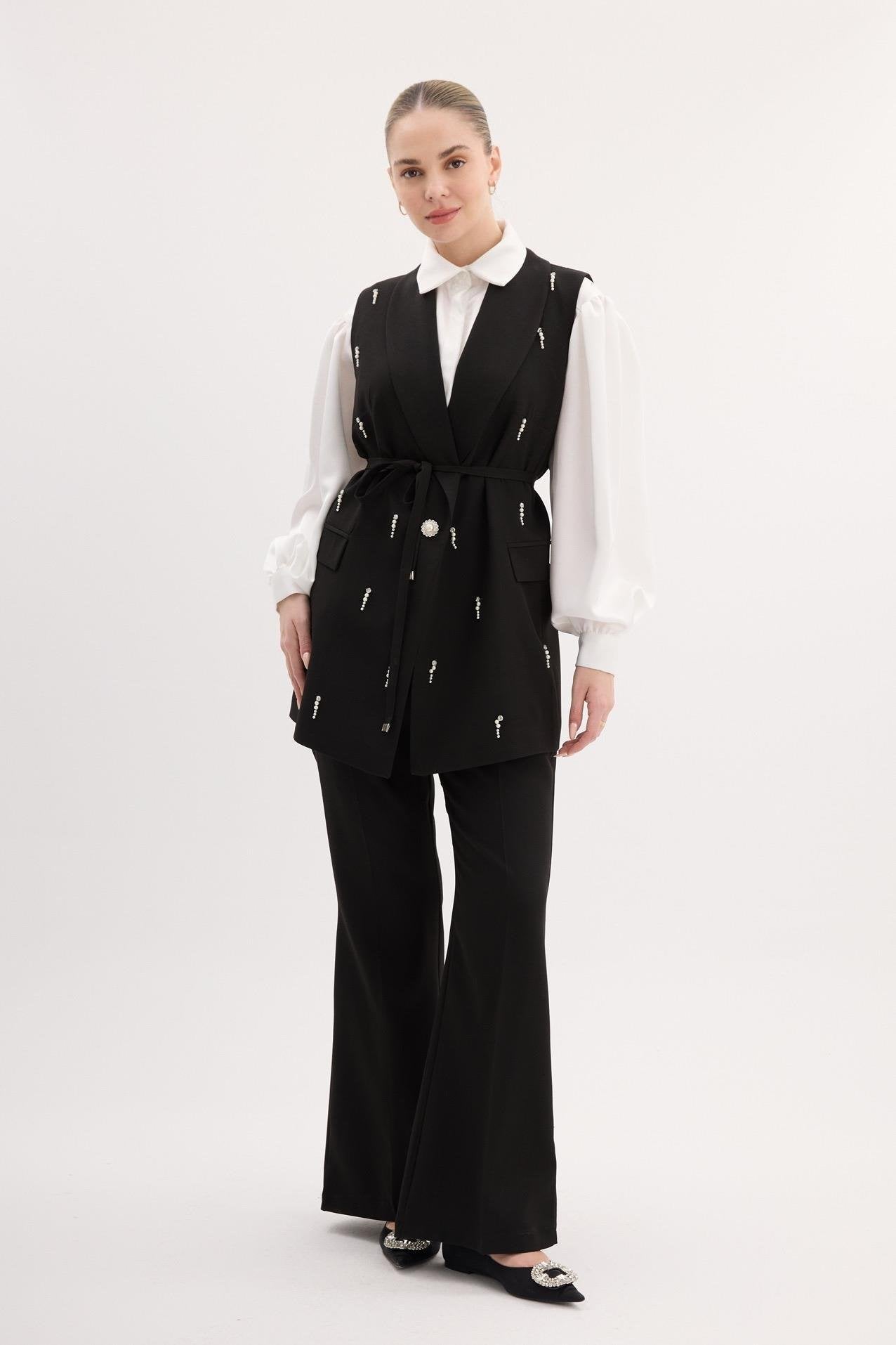 Royal Taş Detaylı Astarlı Takım - Siyah
