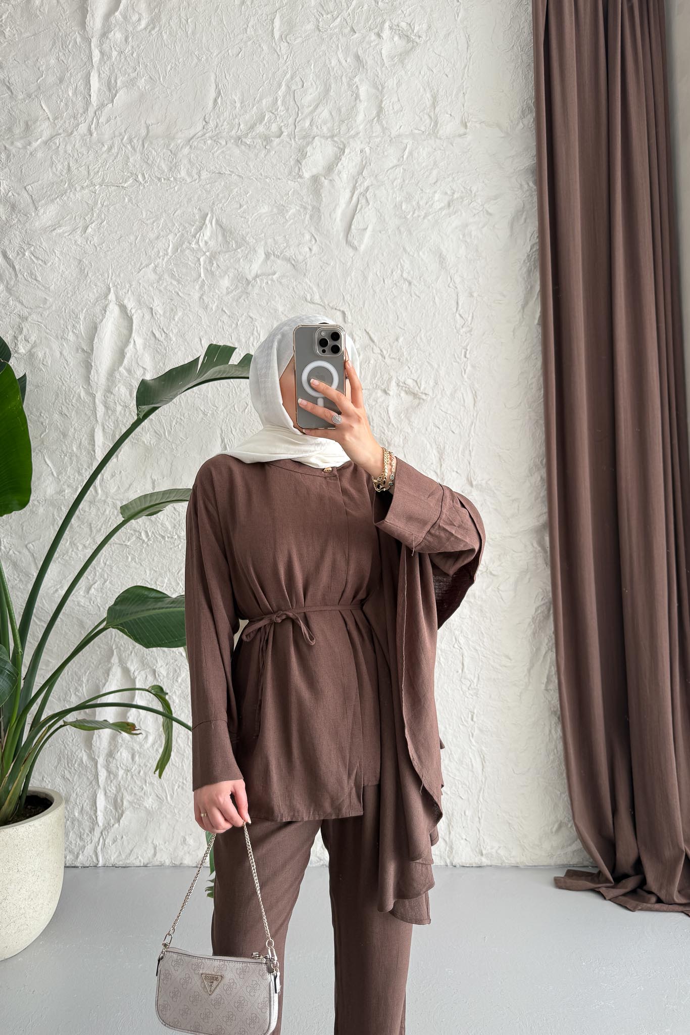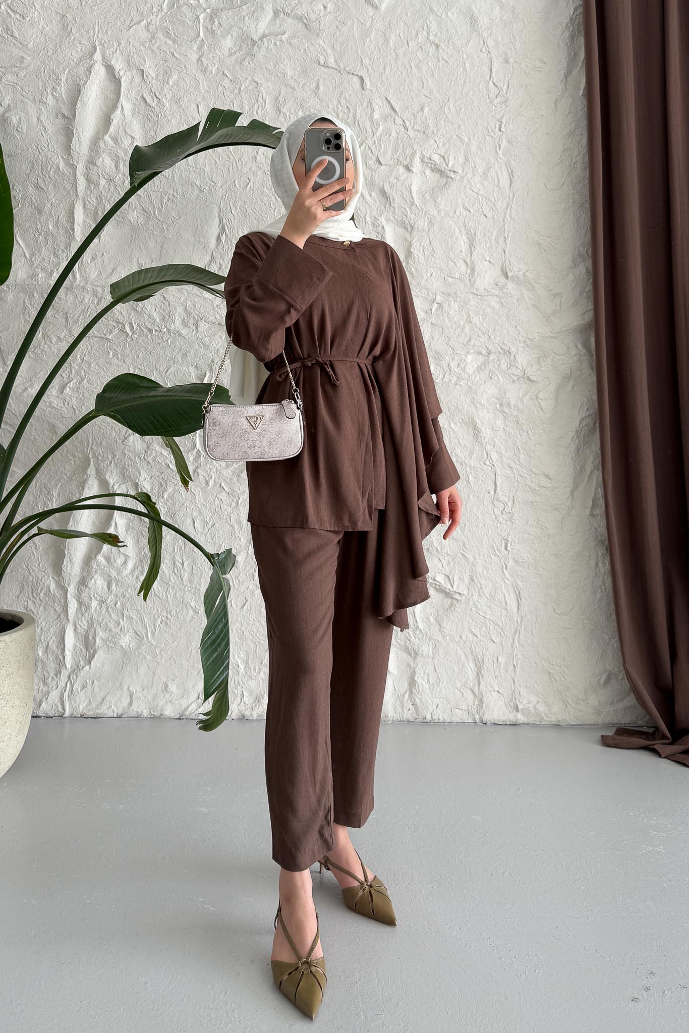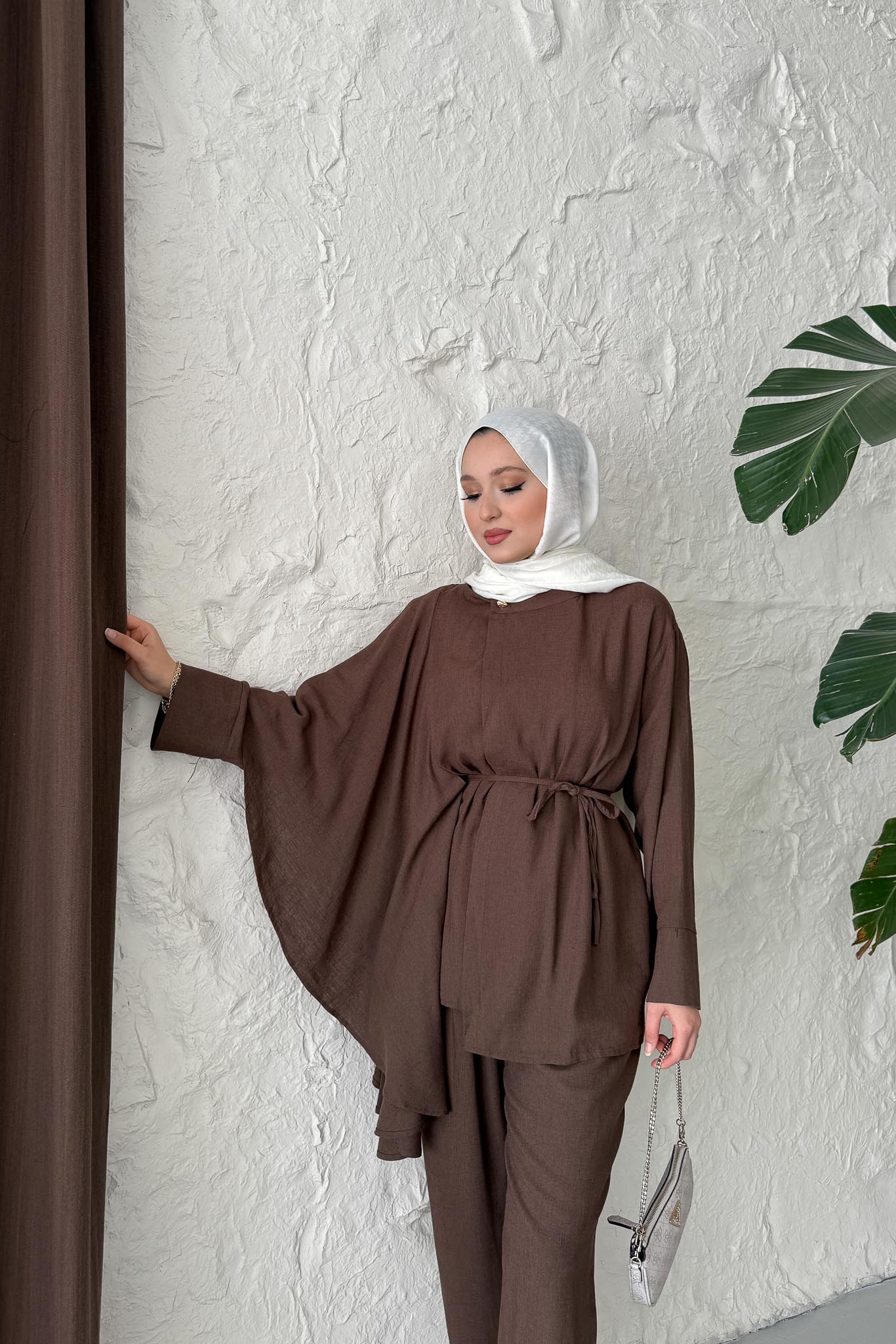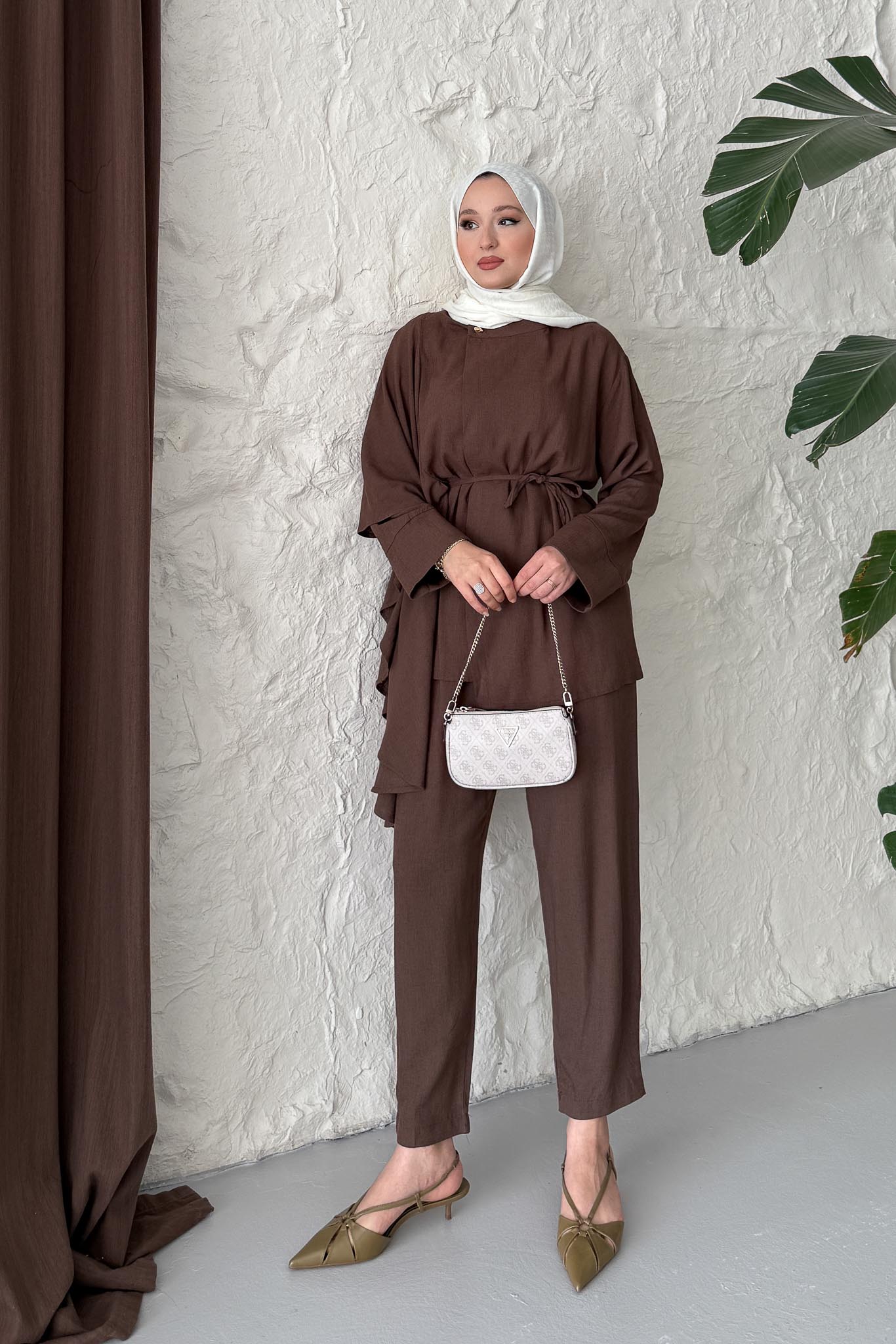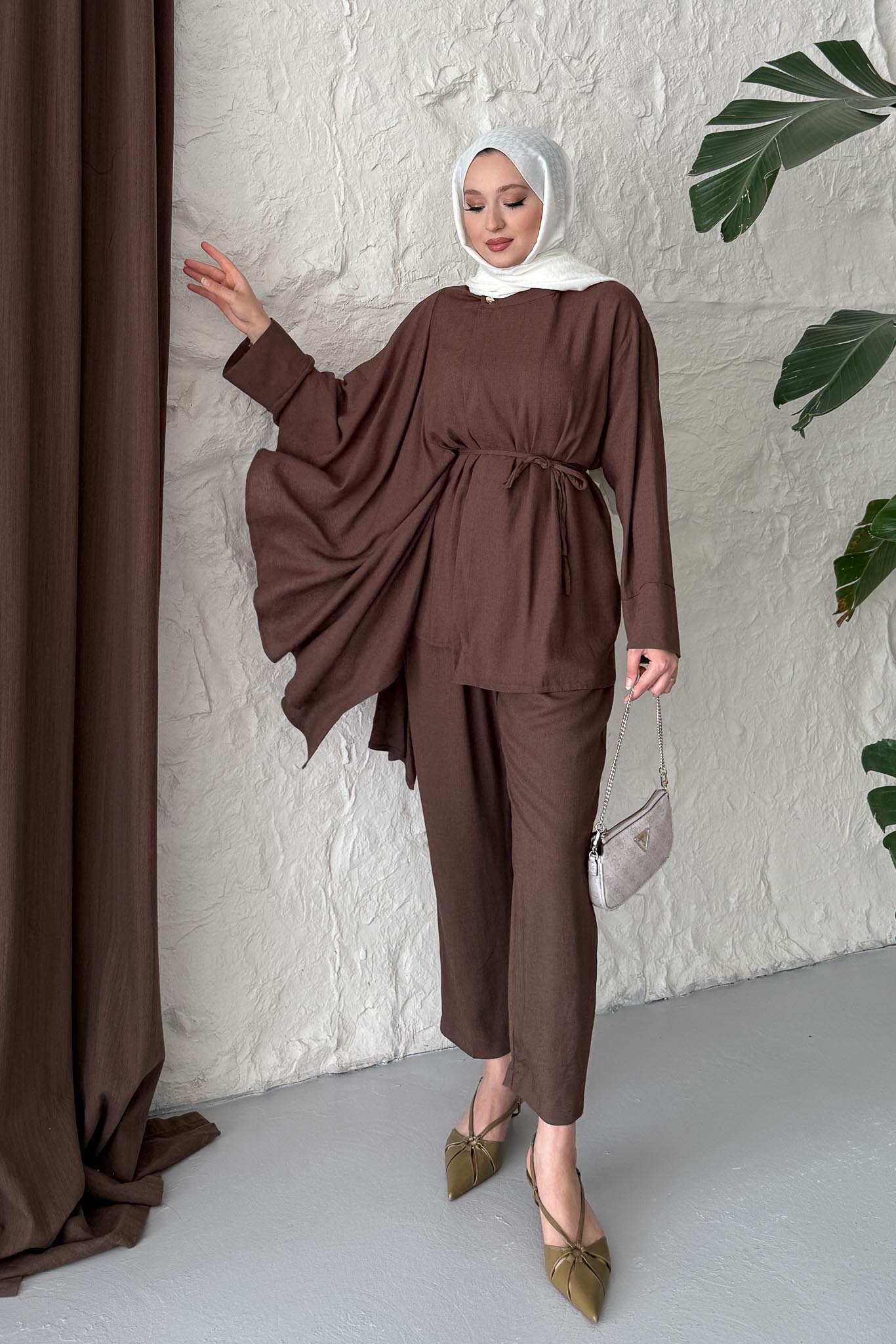 Tunik Yakası Broş Düğmelidir ortalama 70 cm dir, seyyar kuşaklıdır, Pantolon Beli Lastikli Havuç Formdadır.