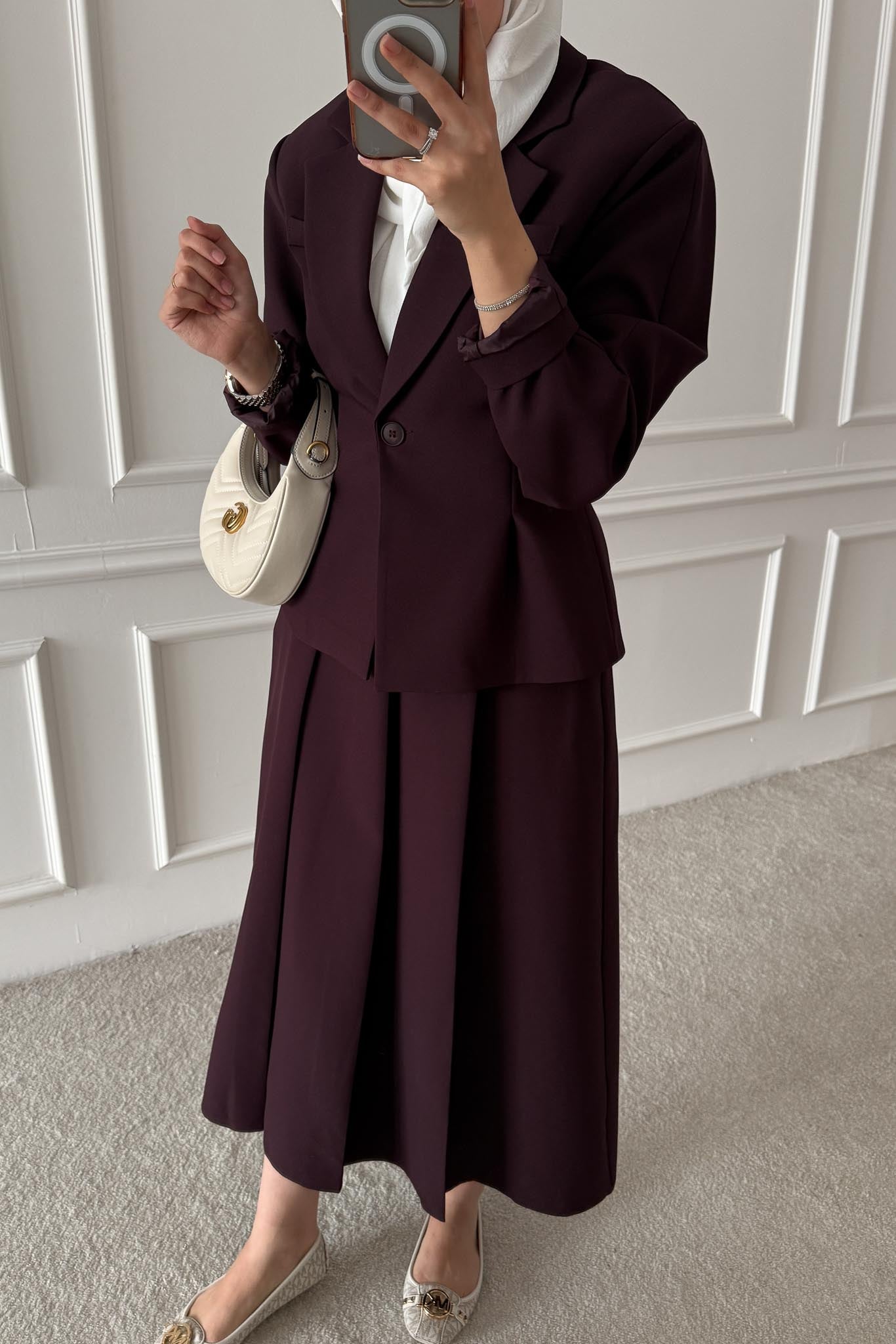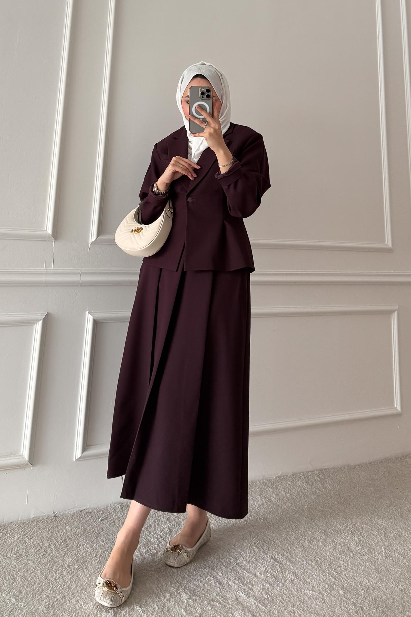 Ceket Tek düğmelidir ortalama 50 cm dir, Astarlıdır, Düz Kolludur, Etek Beli Fermuarlıdır, Ortalama 95 cm dir, Kloş formdadır.