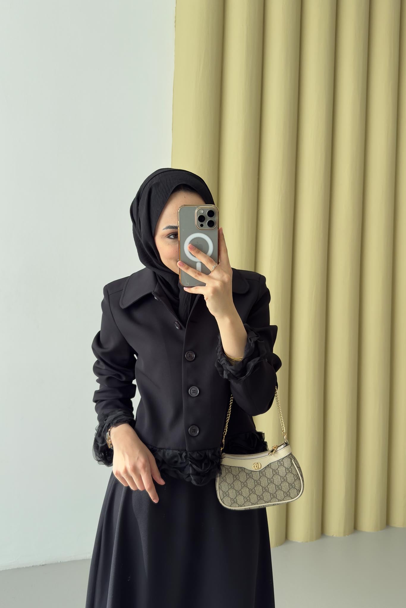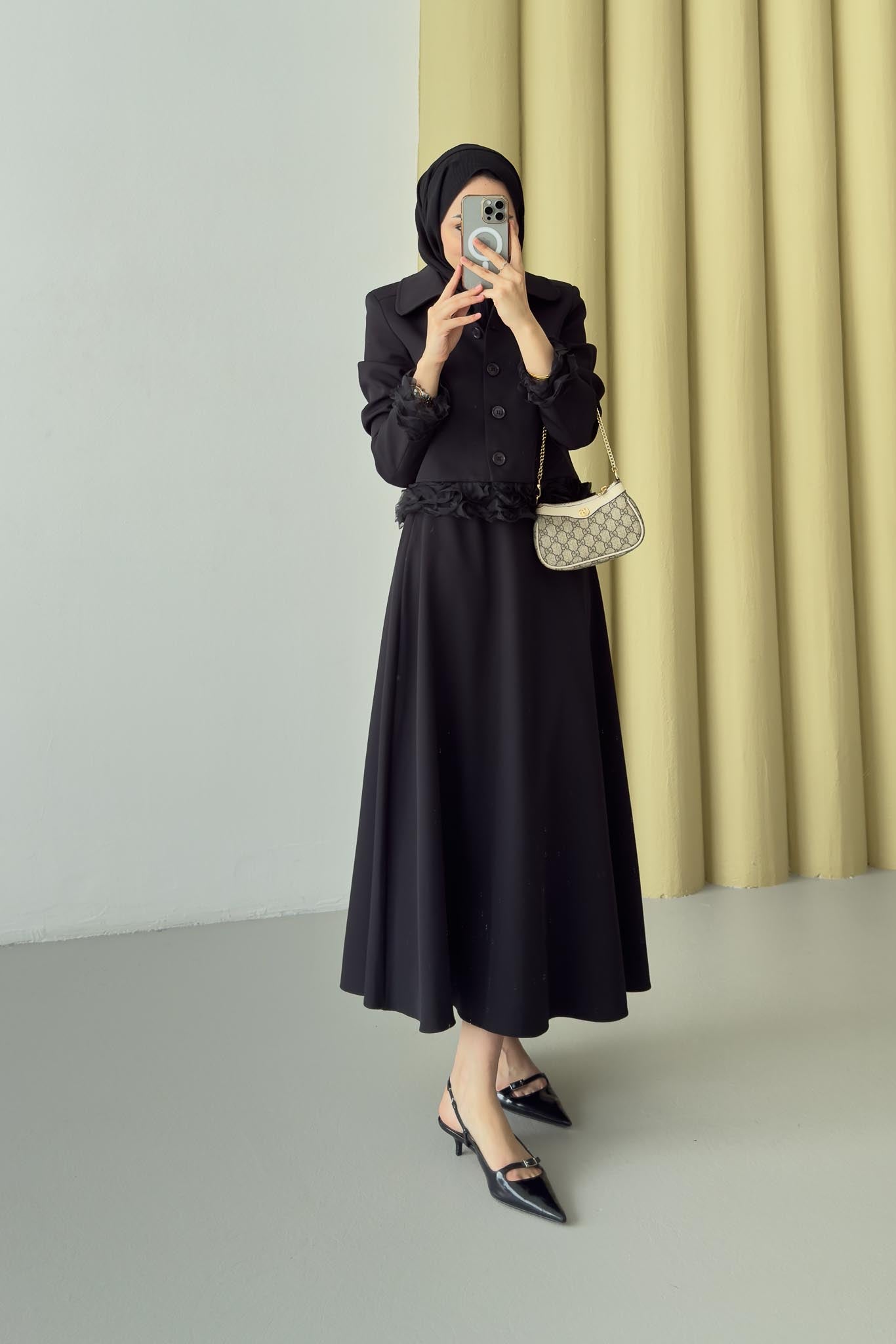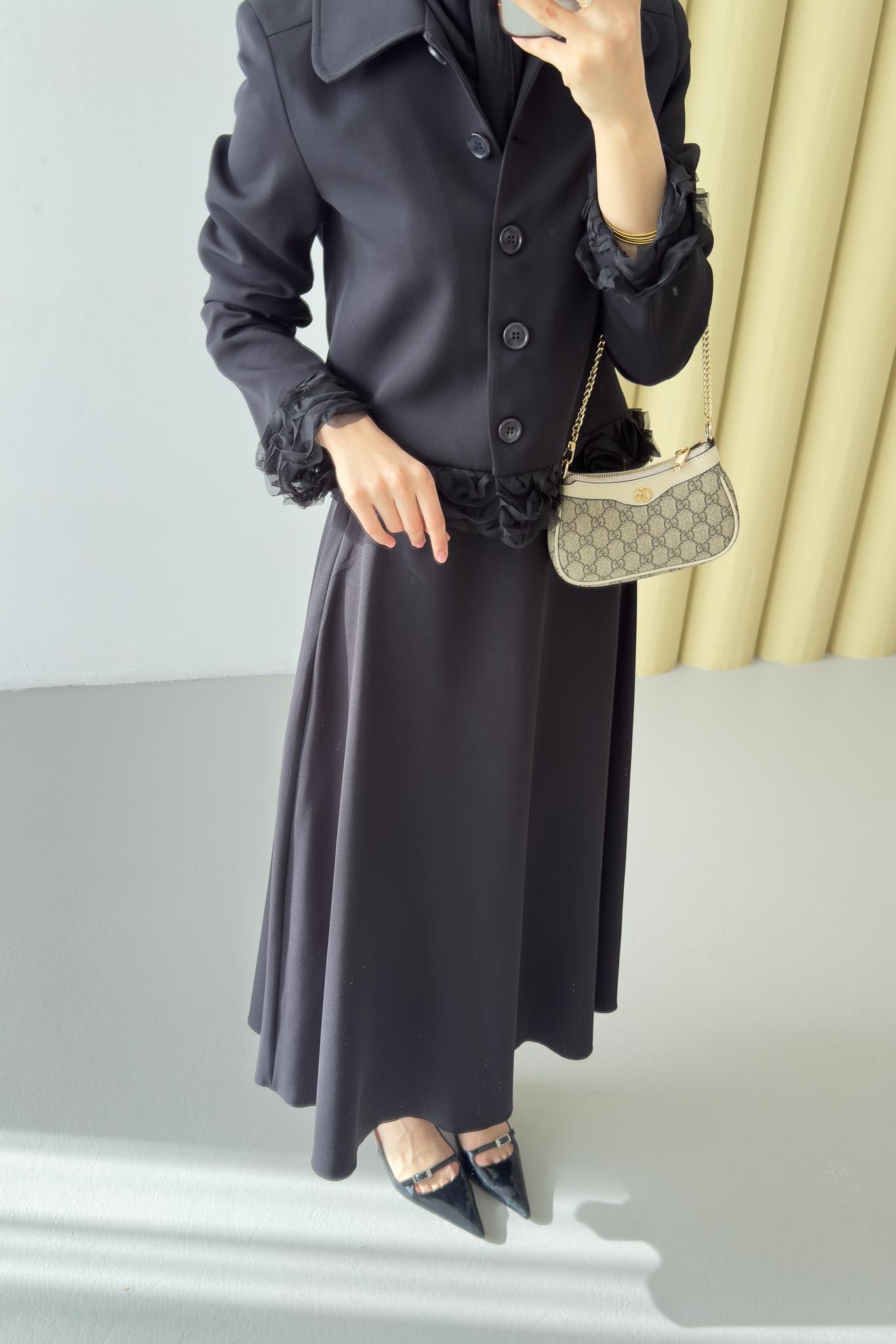 Şifon Detaylı Ceket Takım Siyah