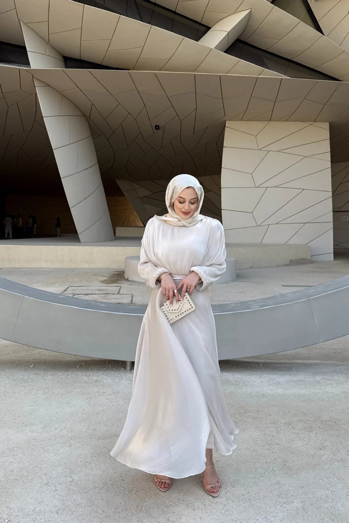 Simli Şifon Elbise Bej