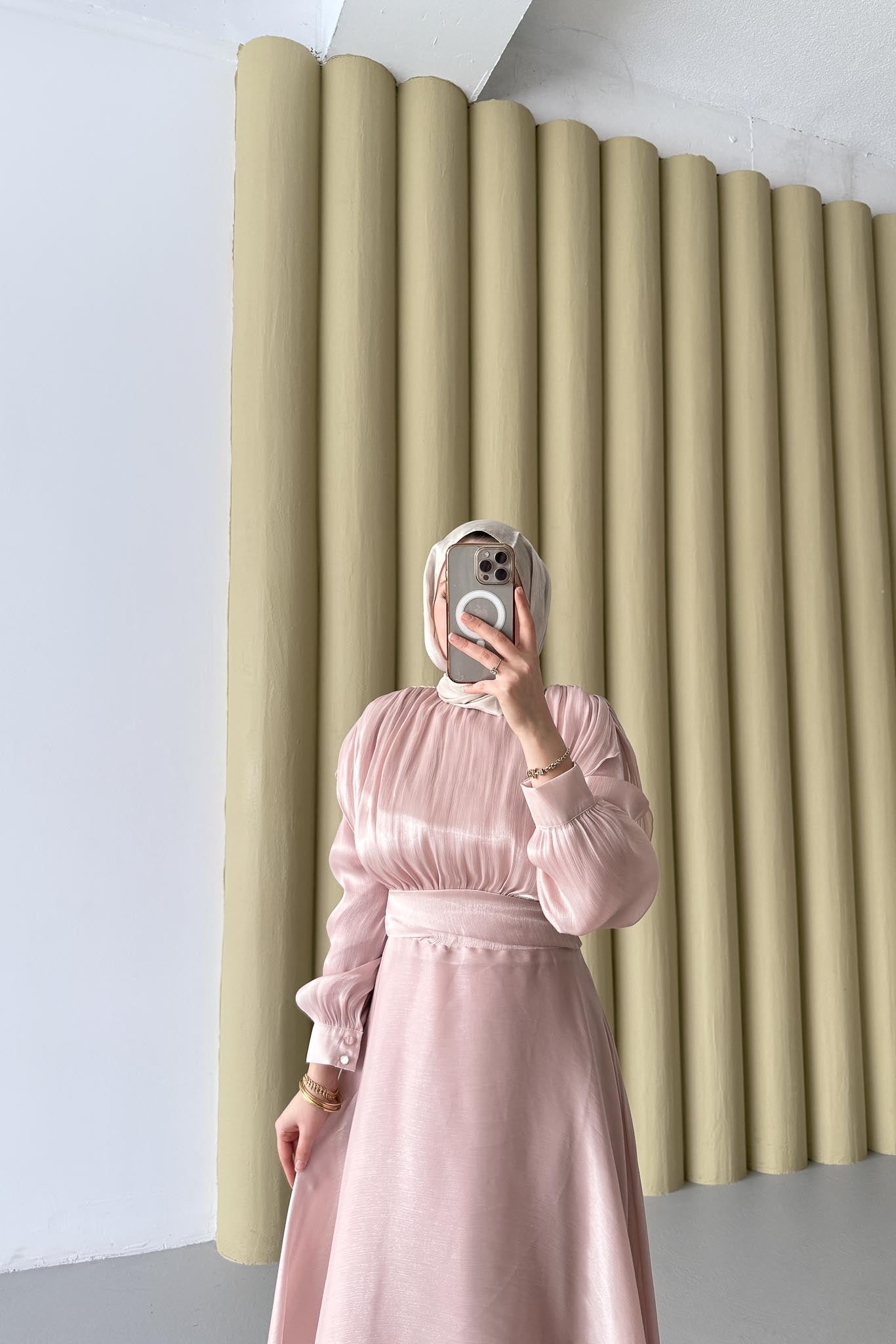 Oldukça rahat şık bir elbisedir, astarlıdır, Omuz ve göğüs pilise tasarımlıdır. terletmez ve ütü gerektirmez.