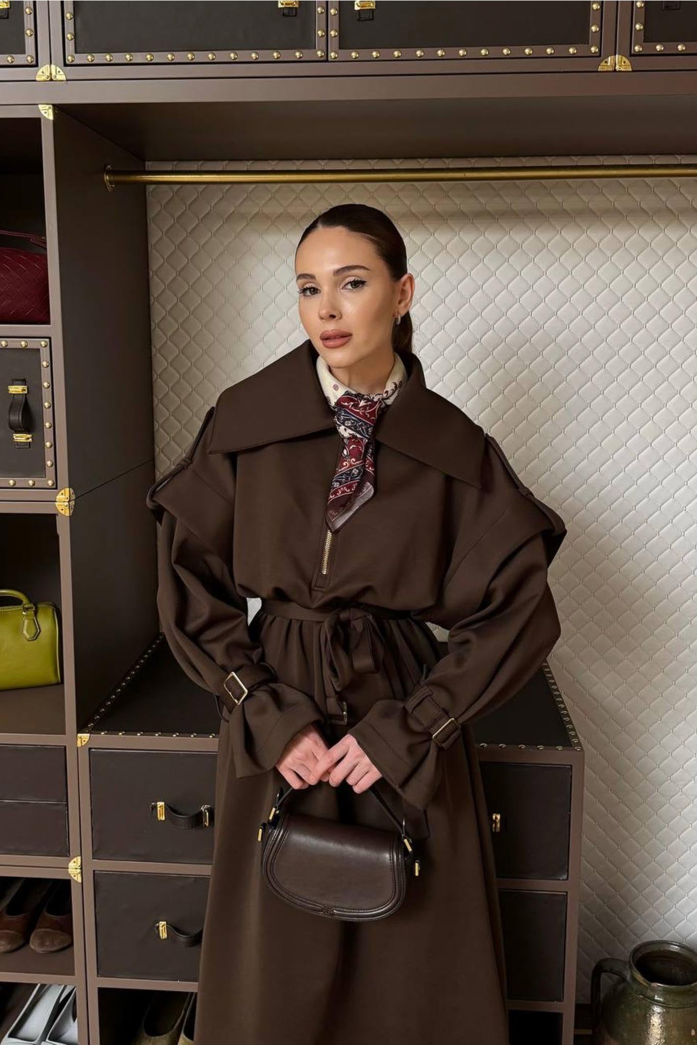 Harika bir duruşu vardır, ortalama 138 cm dir, Seyyar kuşaklıdı, kolu manşetlidir, rahat kalıptır.
